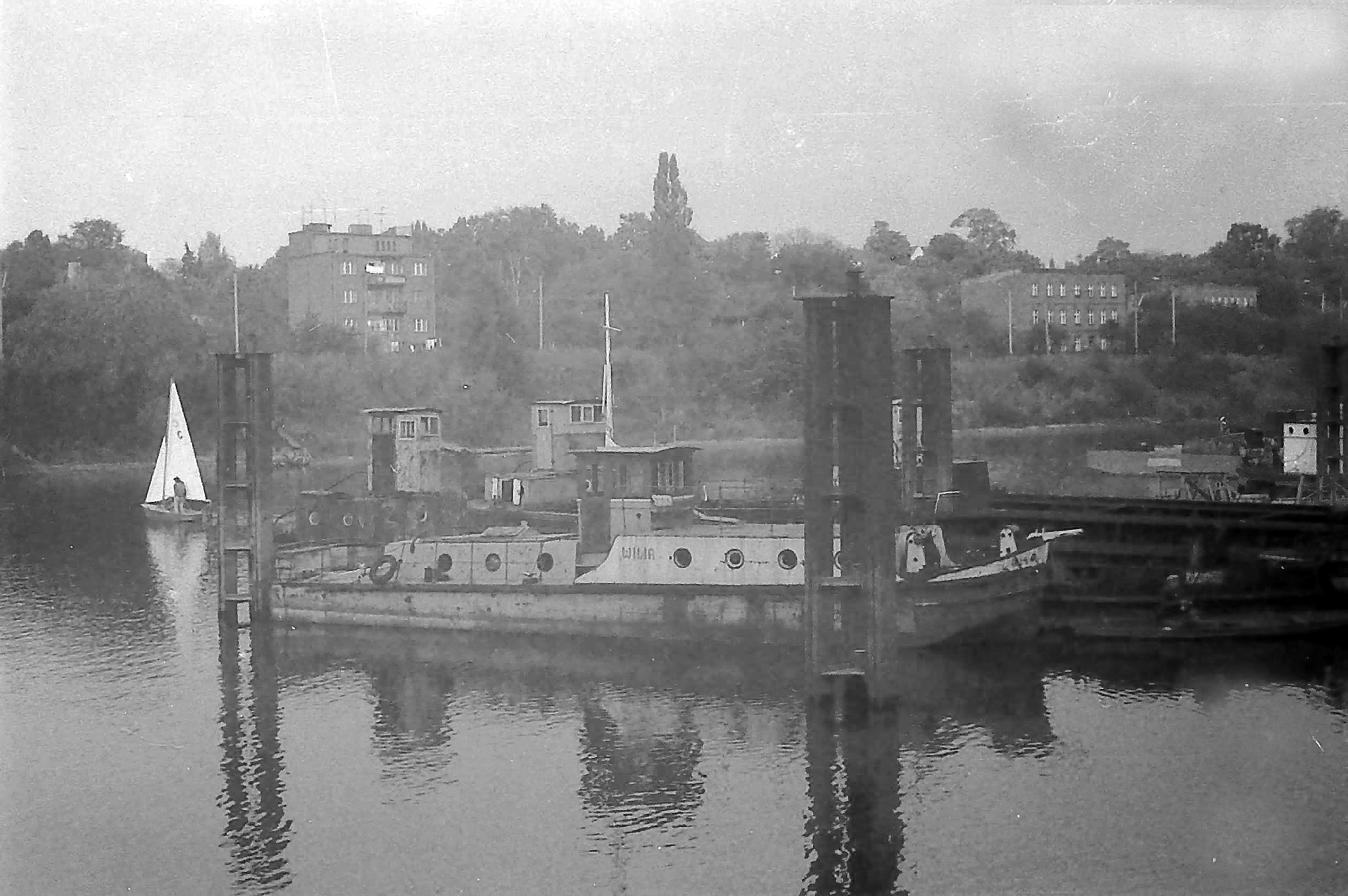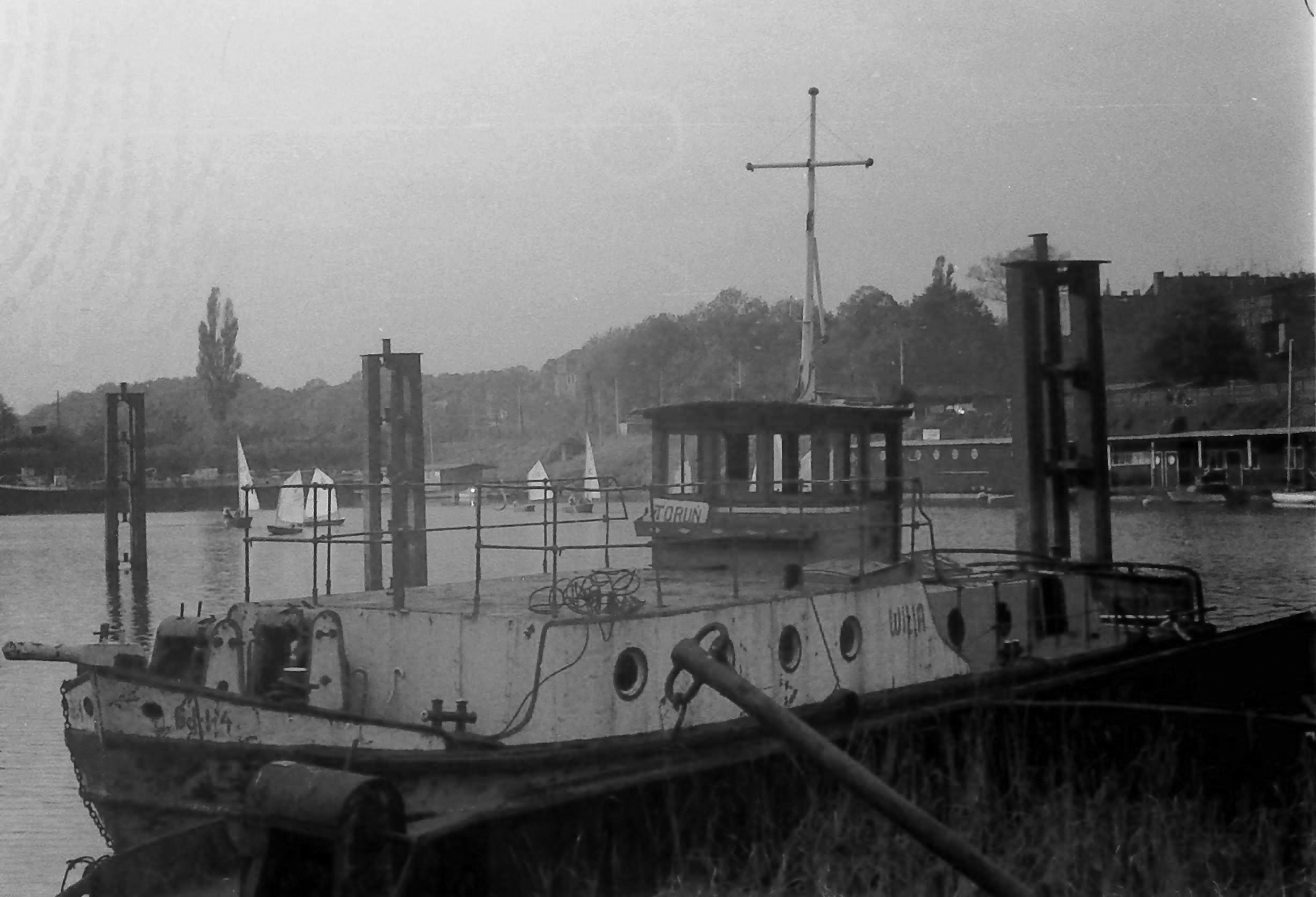 | wycofany holownik WILIA w porcie zimowym w Toruniu; foto: Waldemar Danielewicz, 1980 r. |