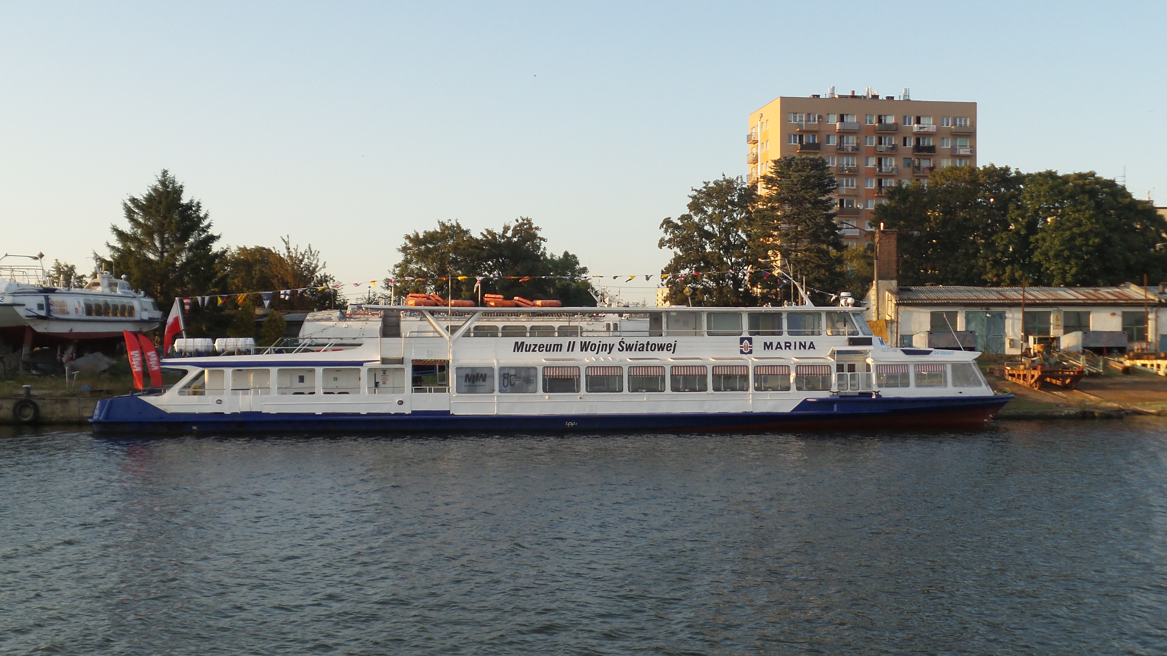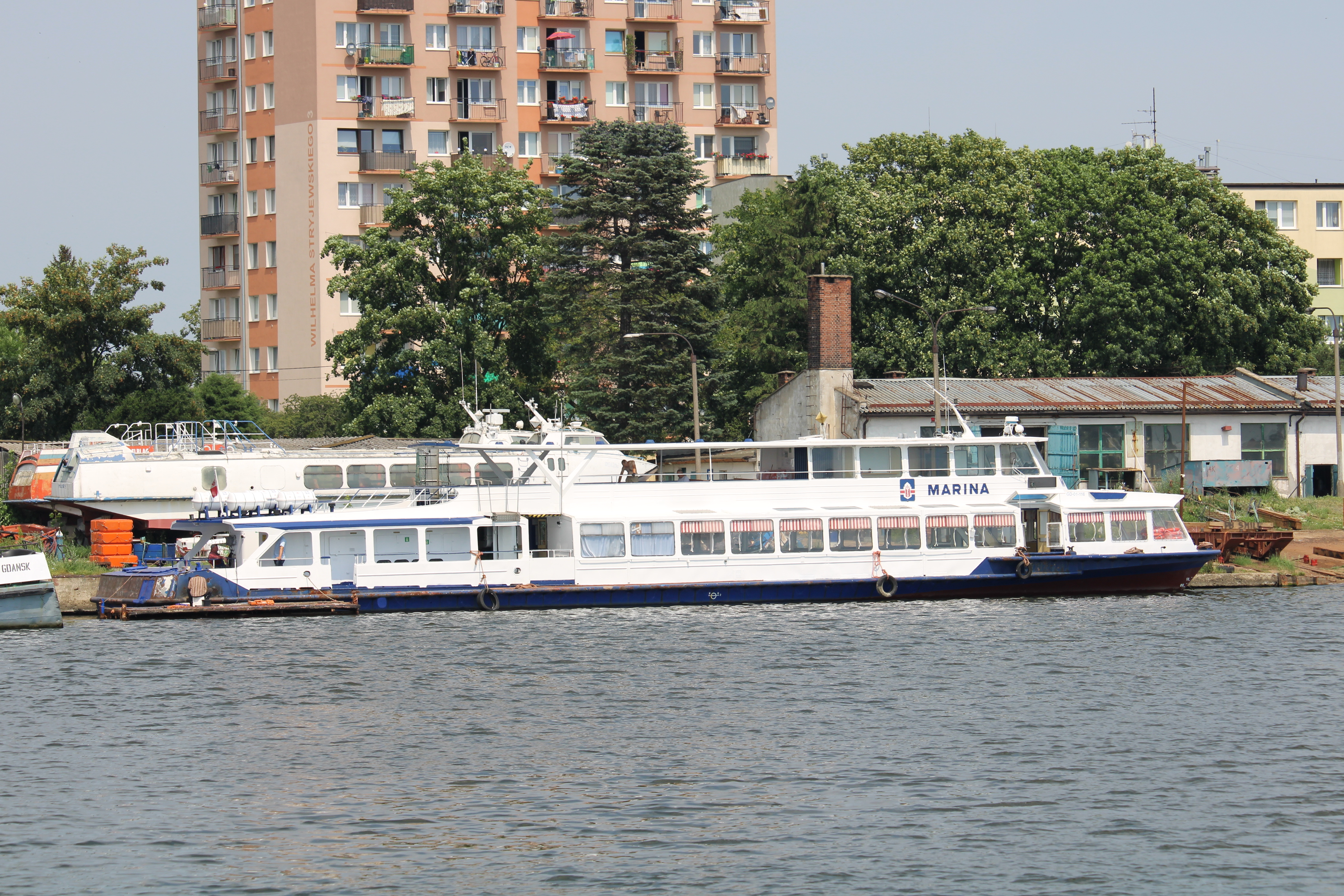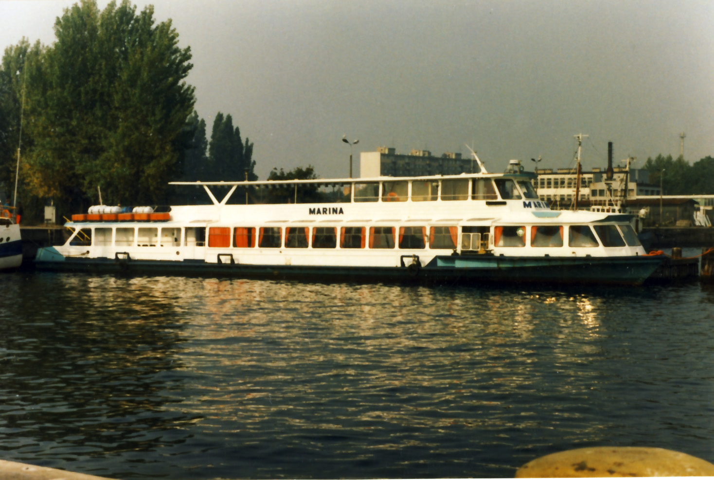 Statek pasażerski projektu R51-E budowany seryjnie w Moskwie dla armatorów własnych i na eksport. Projekt „Moskwy” powstał w 1965 roku w Centralnym Biurze Konstrukcyjnym Taboru Rzecznego w Moskwie. Oznaczono go jako R-51. Statek przeznaczony był głównie na rzeki do obsługi pasażerskich linii podmiejskich, a także połączeń pomiędzy miastami w rejsach nie dłuższych niż 6 godzin. Późniejsze wersje mogły także odbywać podróże na wodach osłoniętych przy ograniczonych warunkach pogodowych. Prototyp, nazwany „Москва-1” zbudowała w 1969 roku moskiewska stocznia Moskovskij Sudostroitelnyj i Sudoremontnyj Zavod. Statek ten eksploatowany jest w stolicy Rosji do dnia dzisiejszego. Opisywany statek zbudowano w 1990 r. pod nazwą „BEREGINJA”, armator – Intergemeres z ówczesnego Leningradu. „BEREGINJĘ” przebudowano tak, aby mogła ona wychodzić na Bałtyk w rejsach do 1,5 Mm od portu schronienia. Statek sprowadziła z St. Petersburga elbląska firma Żegluga Quatro z Elbląga. Nazwana „MARINA” pływała w rejsach do Krynicy Morskiej i Fromborka, a w niektóre dni tygodnia z Elbląga do Kaliningradu. W 1995 roku wzięła ją w dzierżawę firma Halex z Elbląga. Była tam jednak niedługo, już po roku „Marinę” nabyła Żegluga Gdyńska Sp. z o.o. W Gdyni pływała po porcie, wychodząc też czasami w rejsy do Sopotu i Gdańska. W 2003 roku Żegluga Gdyńska została wchłonięta przez Żeglugę Gdańską i „MARINA” stała się jej własnością. W sezonie 2004 skierowano ją do Elbląga, skąd wychodziła w rejsy wolnocłowe do Rosji. Do Gdańska powróciła rok później, aby w 2006 roku znów udać się do Elbląga, gdzie służyła jako magazyn towarów wolnocłowych. W okresie sezonu letniego pływa z Gdyni lub z Gdańska. W 2019 r. była dzierżawiona przez Muzeum II Wojny Światowej pływając z Motławy na Westerplatte jako tramwaj wodny. Nadal w eksploatacji. © Opracował Waldemar Danielewicz – 27.02.2026 |