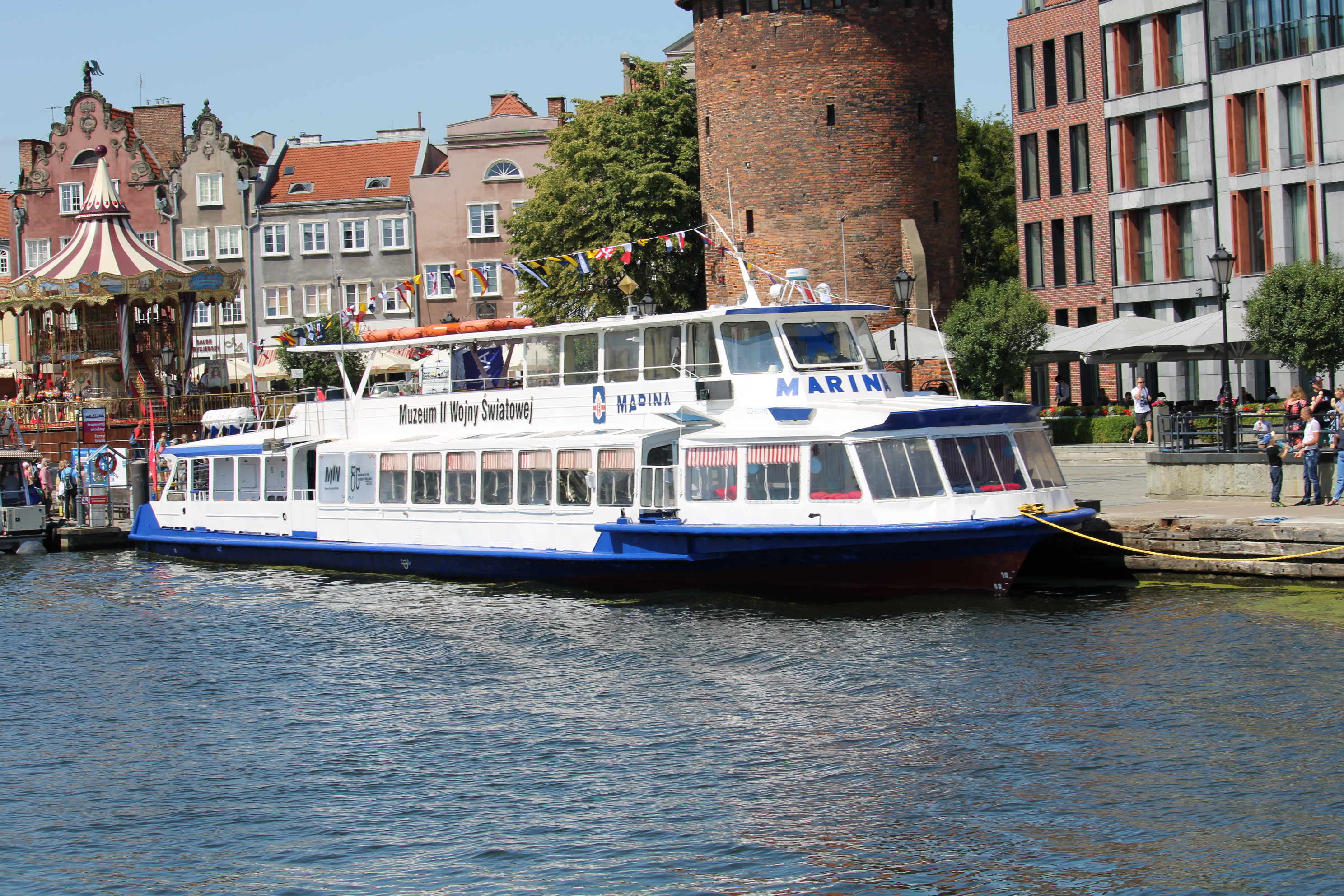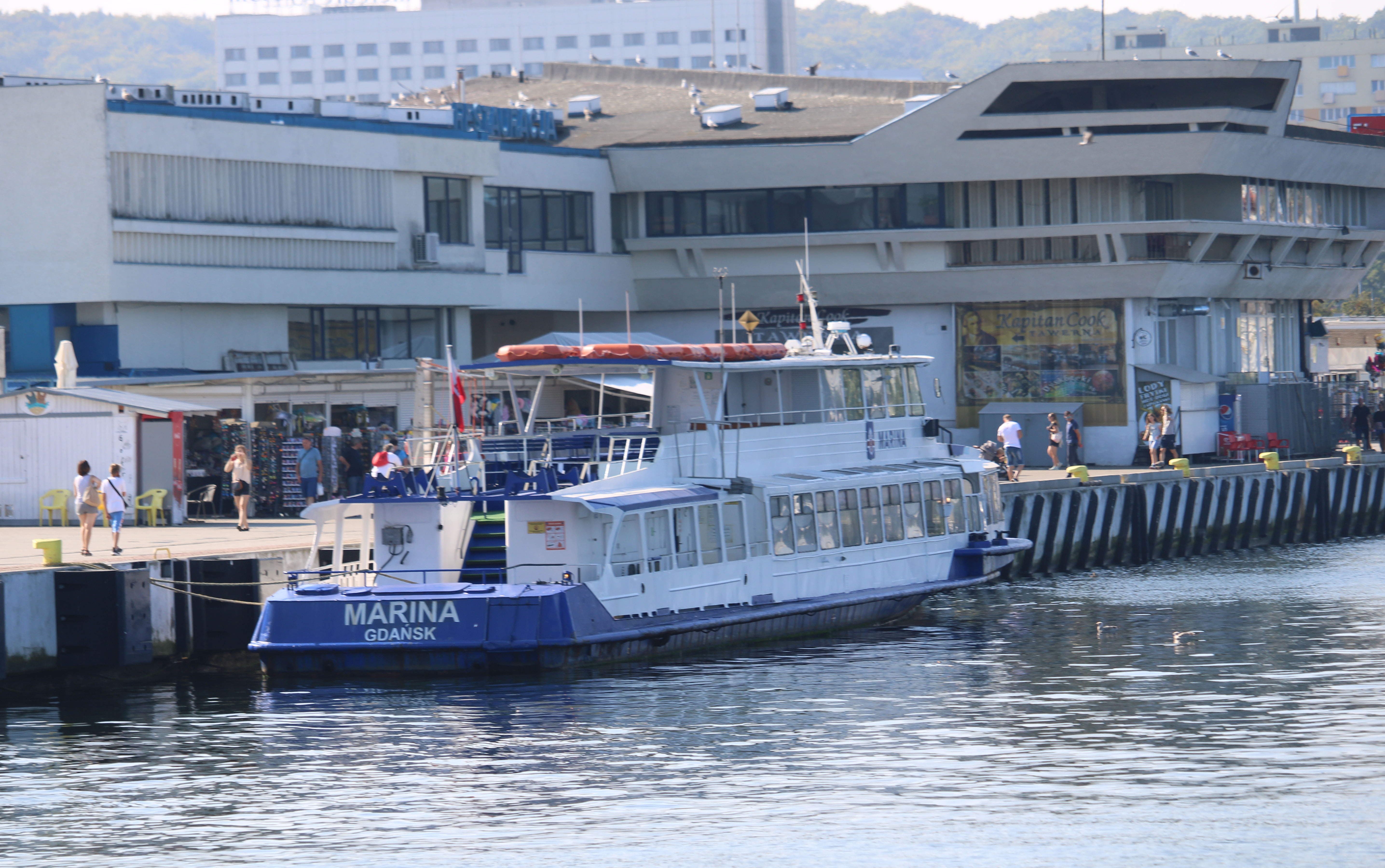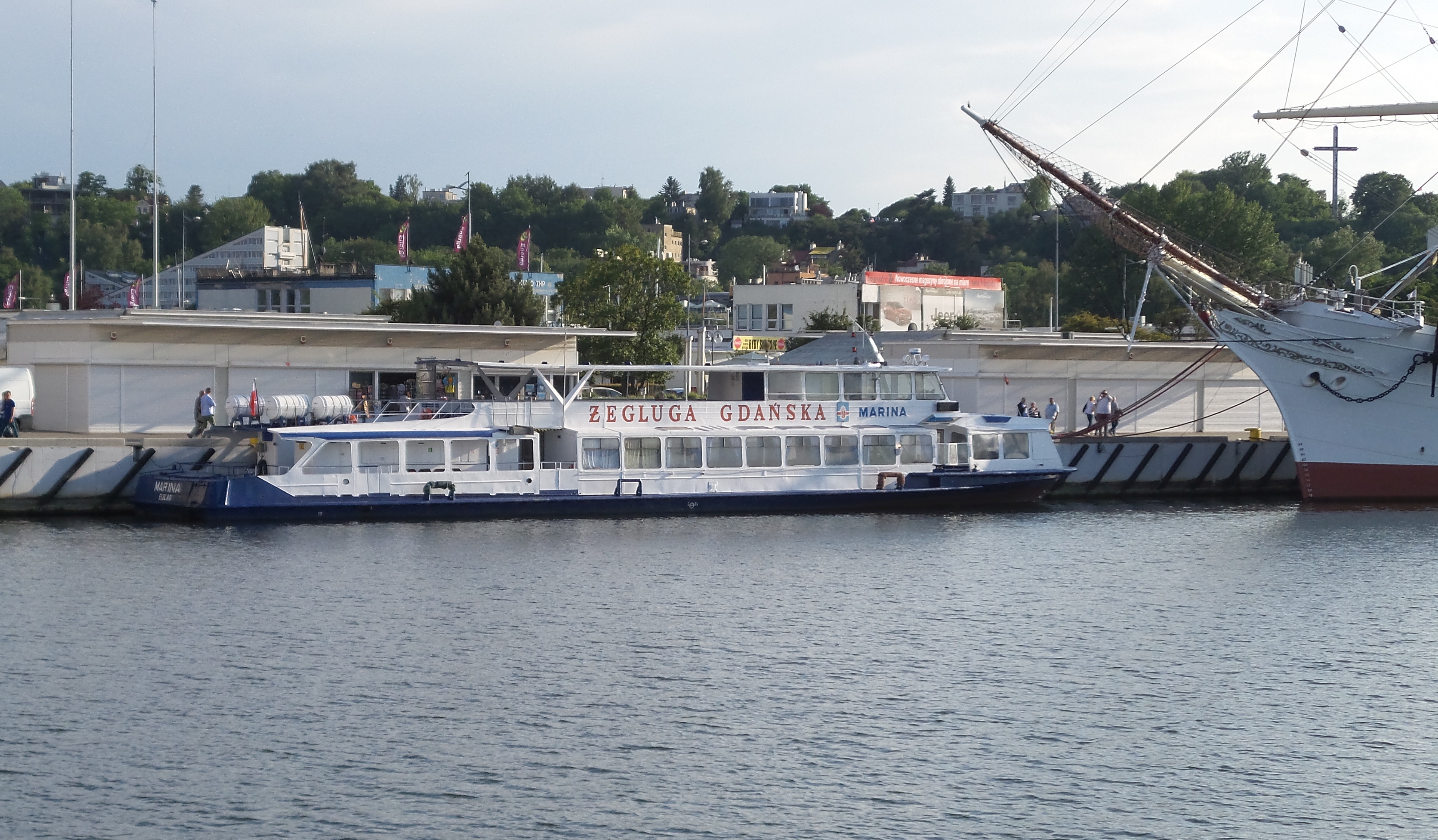 Statek pasażerski projektu R51-E budowany seryjnie w Moskwie dla armatorów własnych i na eksport. Projekt „Moskwy” powstał w 1965 roku w Centralnym Biurze Konstrukcyjnym Taboru Rzecznego w Moskwie. Oznaczono go jako R-51. Statek przeznaczony był głównie na rzeki do obsługi pasażerskich linii podmiejskich, a także połączeń pomiędzy miastami w rejsach nie dłuższych niż 6 godzin. Późniejsze wersje mogły także odbywać podróże na wodach osłoniętych przy ograniczonych warunkach pogodowych. Prototyp, nazwany „Москва-1” zbudowała w 1969 roku moskiewska stocznia Moskovskij Sudostroitelnyj i Sudoremontnyj Zavod. Statek ten eksploatowany jest w stolicy Rosji do dnia dzisiejszego. Opisywany statek zbudowano w 1990 r. pod nazwą „BEREGINJA”, armator – Intergemeres z ówczesnego Leningradu. „BEREGINJĘ” przebudowano tak, aby mogła ona wychodzić na Bałtyk w rejsach do 1,5 Mm od portu schronienia. Statek sprowadziła z St. Petersburga elbląska firma Żegluga Quatro z Elbląga. Nazwana „MARINA” pływała w rejsach do Krynicy Morskiej i Fromborka, a w niektóre dni tygodnia z Elbląga do Kaliningradu. W 1995 roku wzięła ją w dzierżawę firma Halex z Elbląga. Była tam jednak niedługo, już po roku „Marinę” nabyła Żegluga Gdyńska Sp. z o.o. W Gdyni pływała po porcie, wychodząc też czasami w rejsy do Sopotu i Gdańska. W 2003 roku Żegluga Gdyńska została wchłonięta przez Żeglugę Gdańską i „MARINA” stała się jej własnością. W sezonie 2004 skierowano ją do Elbląga, skąd wychodziła w rejsy wolnocłowe do Rosji. Do Gdańska powróciła rok później, aby w 2006 roku znów udać się do Elbląga, gdzie służyła jako magazyn towarów wolnocłowych. W okresie sezonu letniego pływa z Gdyni lub z Gdańska. W 2019 r. była dzierżawiona przez Muzeum II Wojny Światowej pływając z Motławy na Westerplatte jako tramwaj wodny. Nadal w eksploatacji. © Opracował Waldemar Danielewicz – 27.02.2026 |