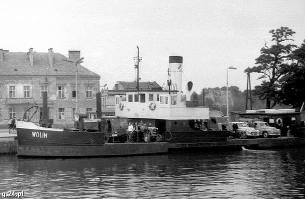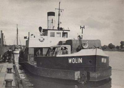 Zbudowany w szczecińskiej stoczni Stettiner Oderwerke A.G. jako prom samochodowo-pasażerski dla Hafenbauamt Swinemünde [Świnoujście]. Nazwany „OSTSWINE” pływał na trasie Swinemünde – Warsow czyli Świnoujście – Warszewo. Prom przetrwał szczęśliwie zawieruchę wojenną i w kwietniu 1945 roku dostał się jako zdobycz wojenna Armii Czerwonej. Nazwany „YKPAИHA” [UKRAINA], podczas przejścia ze Świnoujścia do Talinna na wysokości Dziwnowa na skutek silnego sztormu został zepchnięty na plażę. Wobec niemożności zejścia o własnych siłach został przez Rosjan pozostawiony własnemu losowi. Na skutek dalszych sztormów pozostawiony na łasce losu w latach 1945-1949 został wepchnięty kilkadziesiąt metrów wgłąb lądu. Po oficjalnym zrzeczeniu się praw do wraku przez ZSRR na początku 1949 roku ekipy Wydziału Holowiczo-Ratowniczego Żeglugi Polskiej S.A. pod zarządem GAL-u przystąpiły do operacji ściągnięcia jednostki na wodę. Wrak promu odkopywano łopatami, a piasek odwożono taczkami po deskach ułożonych na plaży. Na skarpie przed dziobem wraka wykonano prowizoryczne urządzenia do spychania promu w kierunku wody za pomocą drewnianego słupa i lewarów. Po podkopaniu statku ręcznie szczeciński holownik „IRBIS” na holu podanym na rufę promu pracował silnikiem cała naprzód wypłukując strumieniem wody kanał o długości kilku lub kilkunastu metrów, po czym skracano hol. Kiedy rufa holownika znalazła się blisko wraka promu rozpoczęto lewarami spychać jednostkę na wodę, co się ostatecznie udało. Ponieważ prom był w dobrym stanie zdecydowano się go odbudować po zaholowaniu do Szczecina. Odbudowa została przeprowadzona w latach 1950-52, po czym statek przekazano armatorowi czyli Przedsiębiorstwu Żegluga Przybrzeżna w Szczecinie, otrzymał nazwę „WOLIN”. Skierowany do obsługi linii promowej w Świnoujściu. W 1953 roku nowym armatorem zostało Przedsiębiorstwo Państwowe Polska Żegluga Przybrzeżna w Gdańsku Oddział w Szczecinie. Kolejna reorganizacja przedsiębiorstw żeglugowych w 1956 roku sprawiła że „WOLIN” podporządkowany został P.P. Żegluga na Odrze we Wrocławiu Oddział w Szczecinie. Ale już w styczniu 1957 roku prom przejęło nowopowstałe P.P. Żegluga Szczecińska w Szczecinie gdzie pływał do końca sezonu 1966 r. Pocięty na złom w kwietniu 1967 r. © Opracował Waldemar Danielewicz – 06.01.2022 |
