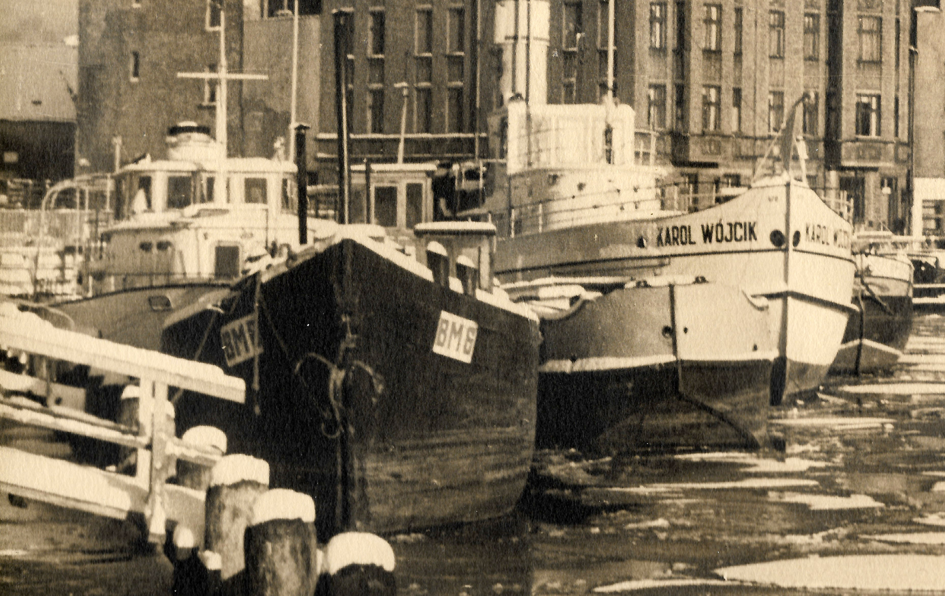 | Jedyne znane zdjęcie barki motorowej BM-6 podczas postoju w Gdańsku; foto: Waldemar Kossmann |