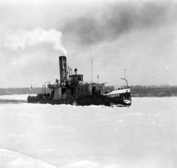 Zbudowany jako lodołamacz czołowy na zamówienie Rady Portu i Dróg Wodnych [niem. der Hafen und die Wasserwege von Danzig], podlegał Maschinenbauamt Danzig-Krakau i stacjonował w Gross Plehnendorf [dz. Gdańsk-Pleniewo]. Nazwany został „BUG”. Z chwilą wybuchu wojny niemiecko-polskiej we wrześniu 1939 r. Rada Portu i Dróg Wodnych przestała istnieć. Lodołamacz „BUG” wraz z innymi lodołamaczami przejęty został przez Der Staatskomissar für den Hafen und Wasserwege von Danzig, a ten z kolei, 23 października 1939 r., przydzielił lodołamacze do Wasserbaumt, Einlage [dz. Gdańsk-Przegalina]. W kwietniu 1941 roku statek zmienił nazwę na „TIGER”. W marcu 1945 roku odpłynął z niemieckimi uciekinierami do Hamburga. Po zakończeniu działań wojennych przejęło go brytyjskie Ministry of War Transport. W 1947 roku przyznany został Polsce jako mienie pogdańskie. Polska Misja Morska sprowadziła go do Gdańska w czerwcu 1947 roku. Przekazany Państwowemu Zarządowi Wodnemu w Tczewie, przeszedł remont w ówczesnej Stoczni Nr 1 w Gdańsku. Do ruchu wszedł w 1948 roku pod nazwą „TYGRYS”. Portem macierzystym statku zostały Łożyska. Podczas zimy w 1950 roku „TYGRYS” wykonywał rynnę w lodzie dla promu w Świbnie, kapitanem w tym czasie był Józef Szymański z Torunia, a sternikiem Jan Wesołek. W 1952 roku armatorem statku został Rejon Dróg Wodnych w Tczewie. W 1961 roku, od 22 maja do 23 grudnia, „TYGRYS” przeszedł remont kapitalny w Gdyńskiej Stoczni Remontowej w Gdyni. Od 1963 roku lodołamacz przydzielony został do Okręgowego Zarządu Wodnego w Tczewie, a bazował w Bazie Lodołamaczy w Przegalinie. W 1970 roku wycofano go z eksploatacji i odstawiono do rezerwy. W 1973 roku przejęty został przez Przedsiębiorstwo Budownictwa Wodnego z Tczewa. Rok później skierowano go do remontu kapitalnego, niestety po jego ukończeniu w 1974 r. wycofano i przeznaczono na złom. Ostatecznie złomowany został w Bazie PBW w Gdańsku Przegalinie w styczniu 1985 r. © Opracował Waldemar Danielewicz – 08.02.2011 |