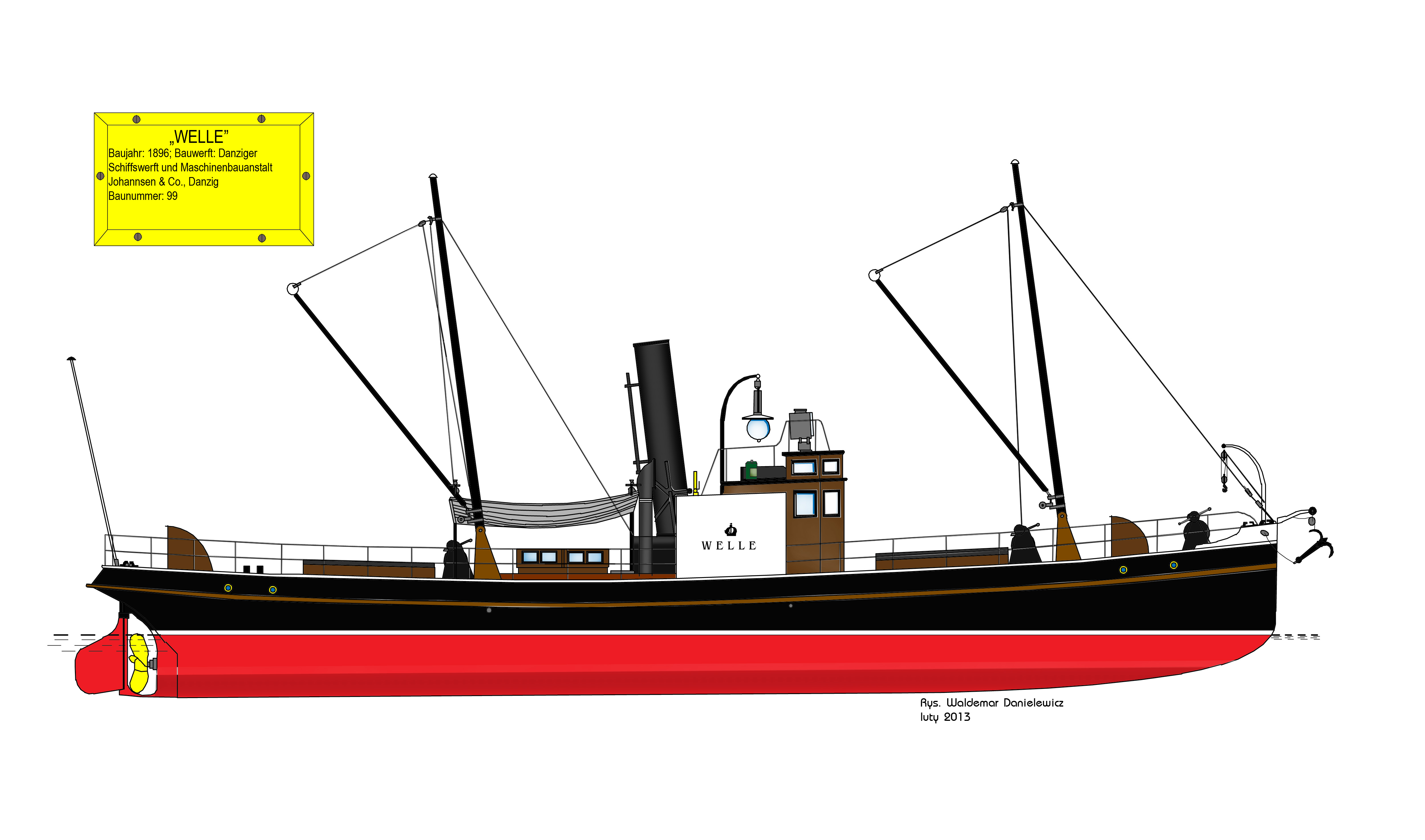 Zbudowany w 1896 r. na zamówienie niemieckiego Königlich-Preuβische Weichsel-Strombauverwaltung, Danzig-Krakau jako lodołamacz pomocniczy, a także bunkierka zaopatrująca lodołamacze w węgiel, otrzymał nazwę „WELLE”. Koszt jego budowy wyniósł 55.500 M. Kadłub zbudowano z blach stalowych o grubości od 6 do 8 mm, a pokład z bali drewnianych o grubości 50 mm. W 1908 roku kapitanem statku był Hermann Peters. Po powstaniu Wolnego Miasta Gdańska w 1920 roku „WELLE”, jak i pozostałe lodołamacze przeszły pod zarząd Rady Portu i Dróg Wodnych [niem. der Hafen und die Wasserwege von Danzig] i podlegały Maschinenbauamt Danzig-Krakau i stacjonowały w Gross Plehnendorf [dz. Gdańsk-Pleniewo] potem w Wasserstraβemaschinenamt, Einlage [dz. Gdańsk-Przegalina] W 1934 roku przeszedł gruntowny remont maszyny parowej i przebudowę na lodołamacz. Wstawiono także nowy kocioł parowy. Rok później wykonano remont kapitalny kadłuba. Poniżej skład załogi w latach 1933/35: kapitan – Hermann Antricht, mechanik – Hermann Kleinschmidt, marynarze – August Stufulus i Anton Weigle, palacze – Karl Dettlaff i Franz Wunderlich. Z chwilą wybuchu wojny niemiecko-polskiej we wrześniu 1939 r. Rada Portu i Dróg Wodnych przestała istnieć, lodołamacz „WELLE” wraz z innymi przejęty został przez Der Staatskomissar für den Hafn und Wasserwege von Danzig, ten z kolei 23 października 1939 r. przydzielił je do Wasserbaumt, Einlage. W kwietniu 1941 roku zmienił nazwę na „HAMSTER”. W marcu 1945 roku zatopiony i celowo uszkodzony pozostał w Einlage [Przegalina]. Podniesiony z dna w sierpniu 1945 r. został odbudowany w Stoczni Nr 11 w Pleniewie. Do ruchu wszedł już w październiku 1945 r. pod nazwą „FALA” w Państwowym Zarządzie Wodnym w Tczewie, a portem macierzystym lodołamacza były Łożyska. W listopadzie 1946 roku podczas akcji ratowania zagrożonego zatorem lodowym drewnianego mostu w Opaleniu lodołamacz został poważnie uszkodzony. Remont odbył w Państwowych Warsztatach i Stoczni w Pleniewie. Do ruchu wszedł w 1948 roku pod nazwą „RYŚ”. 16 maja 1948 roku doszło do uszkodzenia kotła na skutek niedbalstwa załogi. W 1951 roku kapitanem statku został Ksawery Jankowski. W 1952 roku armatorem „RYSIA” został Rejon Dróg Wodnych w Tczewie, a portem macierzystym Przegalina. W 1953 roku podczas akcji lodołamania na statku doszło do przecieków w kadłubie poniżej linii wodnej na skutek przepracowania blach poszycia kadłuba. Remont przeprowadziła Baza Lodołamaczy w Przegalinie. Kolejny kapitalny remont „RYŚ” przeszedł w Stoczni Rzecznej w Elblągu od 15 maja do 18 listopada 1954 r. W 1955 roku portem macierzystym został Tczew. W tym czasie jego kapitanem był B. Leszczyński, a sternikiem Franc Halbe, od 1958 roku kapitanował Ksawery Jankowski, a sternik to K. Palkowski. W 1963 roku nowym armatorem został Okręgowy Zarząd Wodny w Tczewie. Wycofany w 1968 roku i złomowany trzy lata później. © Opracował Waldemar Danielewicz – 08.02.2011 |