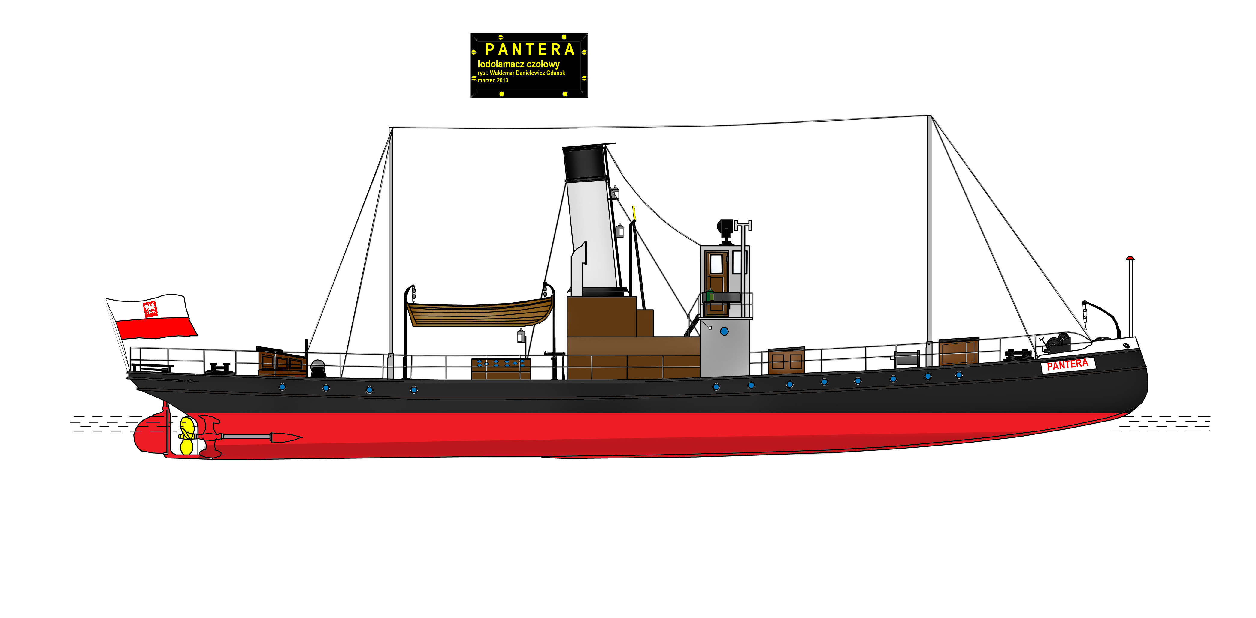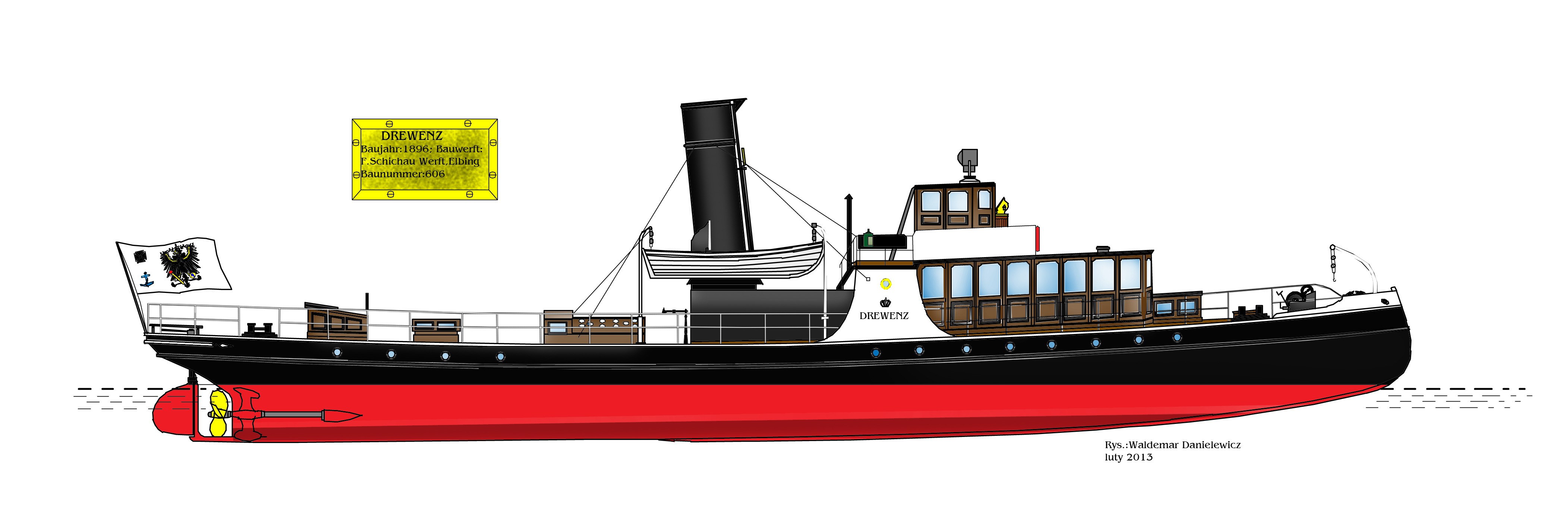 Zbudowany w 1896 r. w elbląskiej stoczni F. Schichau’a, na zamówienie pruskiego Königlischen Preuβische Weichsel-Strombauverwaltung, Danzig-Krakau jako lodołamacz czołowy, otrzymał nazwę „DREWENZ”. Koszt jego budowy wyniósł 122.500 marek. Kadłub zbudowano ze stali Siemensa-Martina o grubości od 14 do 12 mm, a pokład z bali drewnianych o grubości 65 mm. Po powstaniu Wolnego Miasta Gdańska w 1920 roku „DREWENZ”, jak i pozostałe lodołamacze, przeszły pod zarząd Rady Portu i Dróg Wodnych [niem. der Hafen und die Wasserwege von Danzig] i podlegały Maschinenbauamt Danzig-Krakau stacjonując w Gross Plehnendorf [dz. Gdańsk-Pleniewo], a potem w Wasserstraβemaschinenamt, Einlage [dz. Gdańsk-Przegalina]. 19 stycznia 1928 roku o godz. 16:30, podczas akcji lodołamania, doszło do zderzenia lodołamacza „DREWENZ” z drugim lodołamaczem „BRAHE” na 868,5 km rzeki Wisły, tj. koło miejscowości Kurzebrack [dz. Korzeniewo]. Natomiast 15 marca 1931 roku pod Nieszawą, na skutek błędnej interpretacji sygnałów dźwiękowych nadawanych przez lodołamacz „BUG” doszło do dwukrotnego zderzenia lodołamaczy „BUG” i „DREWENZ”. Kapitanem lodołmacza był w tym czasie Fritz Gnoyke. W latach 1937-38 kapitanem statku był Antoni Szprun, a sternikiem Władysław Kalkowski. Z chwilą wybuchu wojny niemiecko-polskiej we wrześniu 1939 r. Rada Portu i Dróg Wodnych przestała istnieć. Lodołamacz wraz z innymi lodołamaczami przejęty został wówczas przez Der Staatskomissar für den Hafen und Wasserwege von Danzig, a ten z kolei 23 października 1939 r. przydzielił je do Wasserbaumt, Einlage [D]. W kwietniu 1941 roku statek zmienił nazwę na „PANTHER”. Pod koniec wojny w marcu 1945 roku lodołamacz został zatopiony na skutek zbombardowania przez samoloty radzieckie. Bomba urwała rufę statku. Wydobyty w 1946 roku, został odholowany na remont do Stoczni Nr 1 w Gdańsku [dawna Danziger Werft]. Nazwany tymczasowo „DRWĘCA”, został wyremontowany i przebudowany, dorobiono także nową rufę. Do eksploatacji wszedł w 1948 roku w Państwowym Zarządzie Wodnym w Tczewie pod nazwą „PANTERA”, a jego kapitanem został Robert Dąbrowski. W dniu 7 września 1948 r. o godz. 17:00 lodołamacz, holując na holu dźwig „GOLIAT”, a za nim koszarkę i obok niej prom budowlany, wpływając do śluzy w Pleniewie, zahaczył koszarką o odbojnicę śluzy powodując jej oderwanie na długości 3 m. Zimą 1950 roku lodołamacz przewoził ludzi w Serowie na trasie Gdańsk – Elbląg, ponieważ zarówno most pontonowy, jak i prom nie były czynne ze względu na duże zalodzenie. W 1952 roku jednostka weszła w skład floty Rejonu Dróg Wodnych w Tczewie, a portem macierzystym została Przegalina. W marcu tego samego roku, w czasie patrolu u ujścia Wisły, statek najechał na nieoznakowaną przeszkodę podwodną i doznał wgniecenia kadłuba poniżej linii wodnej pod kotłem oraz obluzowania nitów. Został wówczas wyslipowany w Przegalinie i po uszczelnieniu kadłuba przeszedł na remont do Stoczni Rzecznej w Tczewie. W 1953 roku kapitanem statku został Antoni Wierzbicki, a sternikami Aleksander Górski i Aleksander Małkowski. W okresie od 1 maja do 15 listopada 1954 roku „PANTERA” przeszła remont kapitalny w Gdańskiej Stoczni Rzecznej w Pleniewie. Od 1955 roku jej portem macierzystym został Tczew. W 1957 roku dowództwo lodołamacza przejął Robert Dąbrowski. W 1963 roku „PANTERĘ” przydzielono do Okręgowego Zarządu Wodnego w Tczewie z portem macierzystym Przegalina. Wycofana sześć lat później, została złomowana w 1971 r. © Opracował Waldemar Danielewicz – 04.03.2026 |