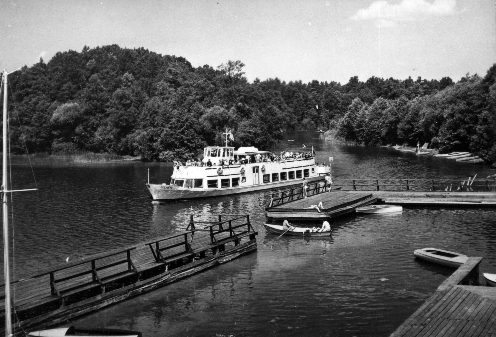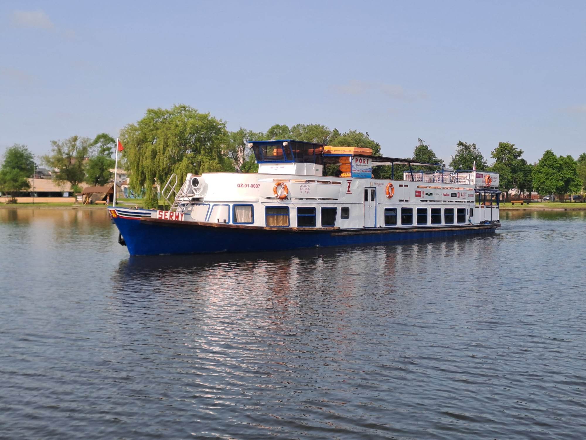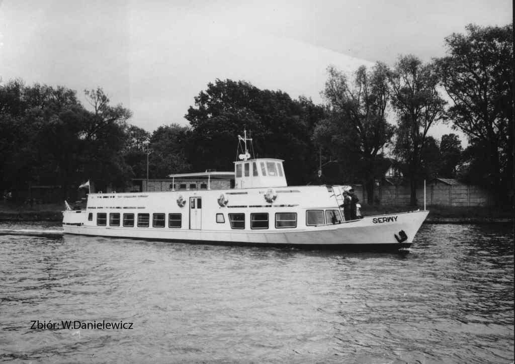 Statek typu SP-150 zaprojektowany został w latach pięćdziesiątych XX w. w ramach modernizacji polskiego taboru śródlądowego. Na podstawie założeń zgłoszonych przez armatorów Biuro Konstrukcyjne Taboru Rzecznego we Wrocławiu opracowało dokumentację techniczną. Projekt oznaczono symbolem P-020A. Głównymi projektantami byli Jerzy Stanisławski i Andrzej Żylicz. Budowę prototypu, jak i pozostałych 19 statków, powierzono Gdańskiej Stoczni Rzecznej w Gdańsku-Stogach. Prototypową jednostkę zwodowano w 1958 r., a ukończono w 1959 r. przekazując P.P. Żegluga na Odrze we Wrocławiu. W 1963 r. P.P. Żegluga Mazurska w Giżycku otrzymała statek, który nazwany został „SERWY”. Pływał w Ekspozyturze w Augustowie na pojezierzu Augustowskim. W 1991 Ekspozytura Żeglugi Mazurskiej w Augustowie stała się samodzielna używając nazwy Przedsiębiorstwo Państwowe Żegluga Augustowska Sp. z o.o. w Augustowie. W 1997 r. „SERWY” stały się własnością Przedsiębiorstwa Żegluga Augustowska Sp. z o.o. W dniu 9 czerwca 1999 r. „SERWY” gościły na swoim pokładzie papieża Jana Pawła II, który odbył rejs z Augustowa przez rz. Netta, jezioro Necko, rz. Klonowica, jez. Białe, śluza w Przewęzi, jez. Studzieniczne wracając do Augustowa. Obecnie szlak ten nazywa się „szlakiem papieskim” i „SERWY” pływają na nim właśnie oraz szlakiem Rospudy z Augustowa rzeką Netta, jez. Necko, jez. Rospuda wracając do Augustowa. Statek przebudowano i wymieniono silnik w 2001 r. Nadal w eksploatacji. © Opracował Waldemar Danielewicz – 15.12.2023 |