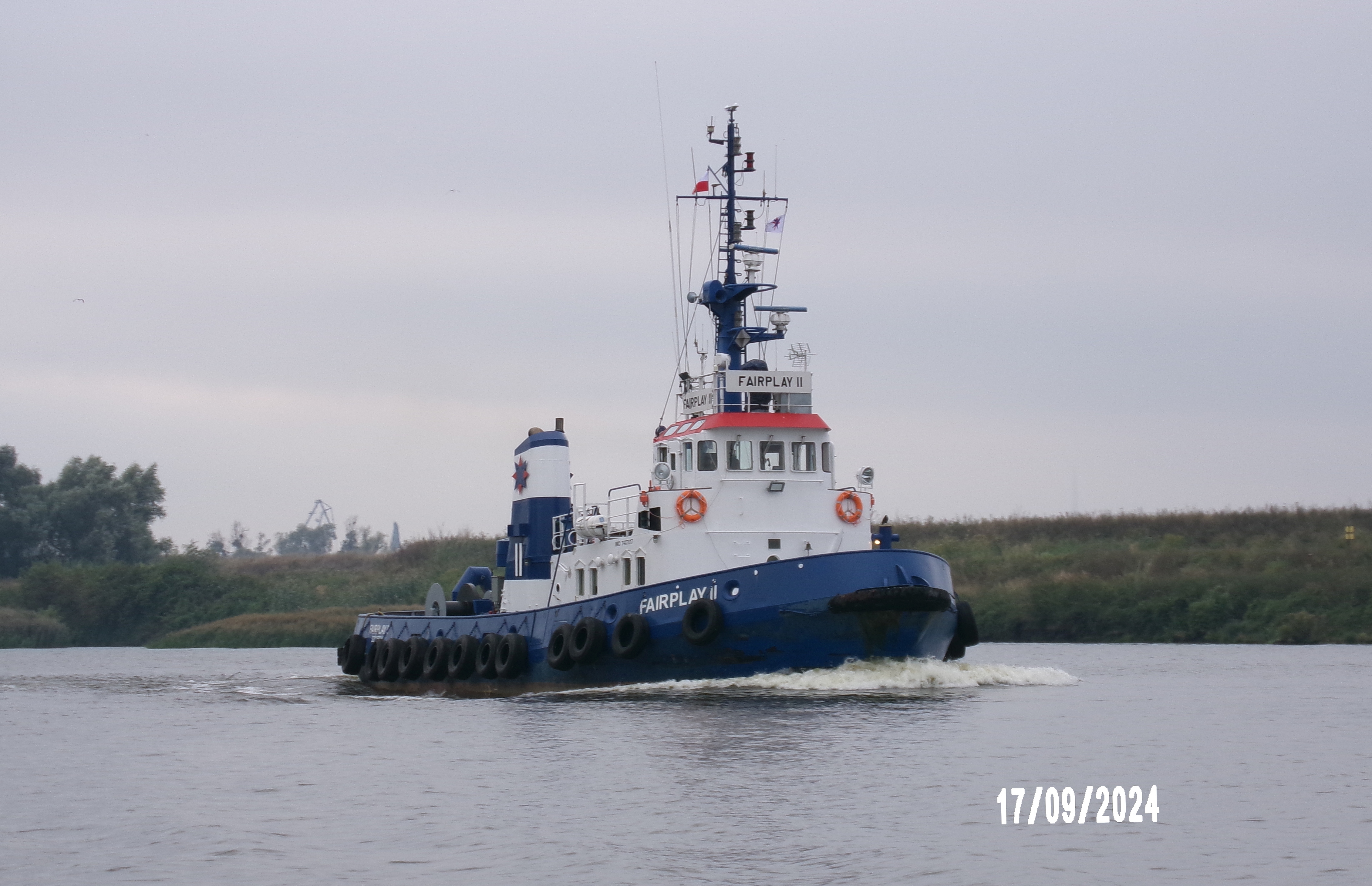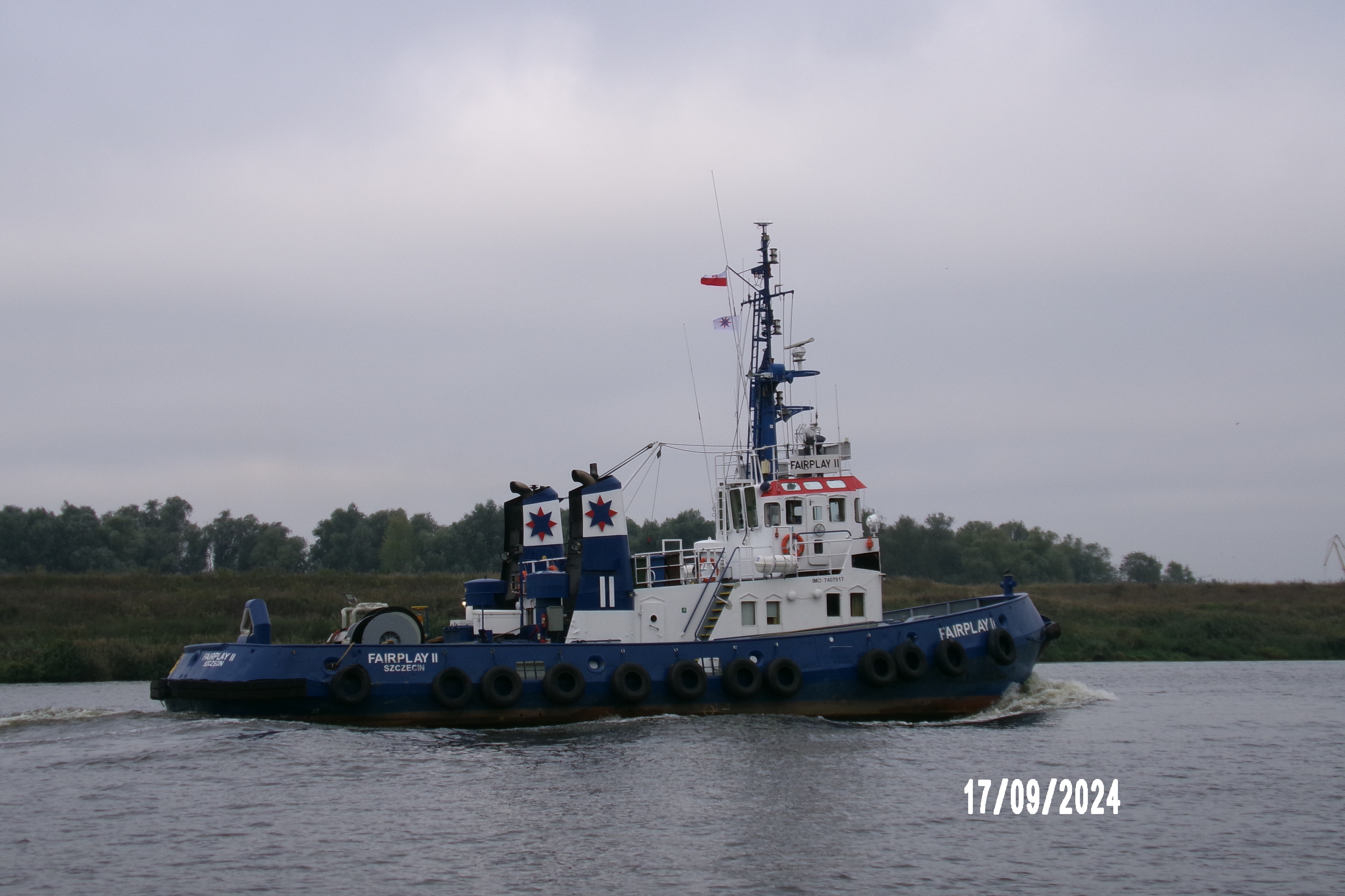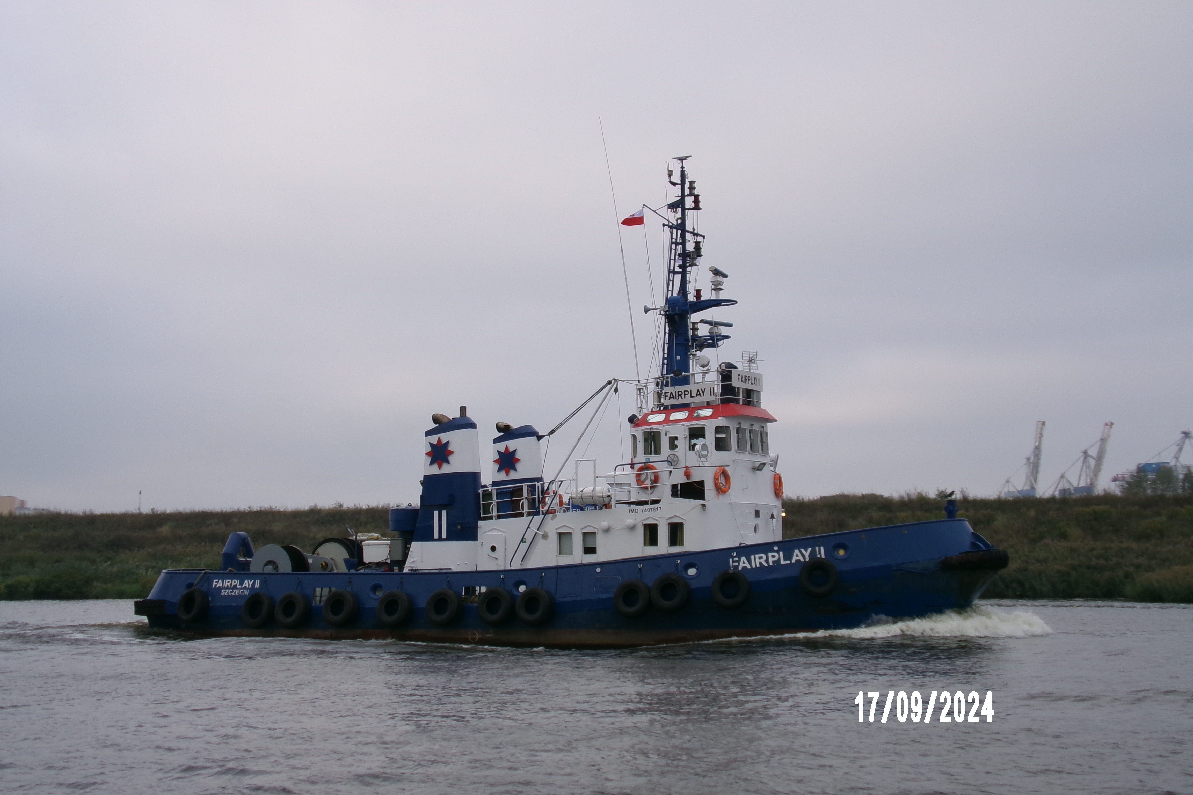 Holownik zbudowany dla firmy Fairplay Schleppdampschiffs-Reederei Richard Borhard GmbH, Hamburg w 1974 r. [wodowany 19.10.1974, ukończony 03.12.1974]. Nazwany „FAIRPLAY II”, port macierzysty Hamburg. Od czerwca 2018 r. w Fairplay Towage Polska sp. z o.o. S. K., Szczecin. Podniósł banderę polską, port macierzysty Szczecin. Przez krótki czas pracował w Gdyni. W eksploatacji. © Opracował Waldemar Danielewicz – 21.09.2025 |