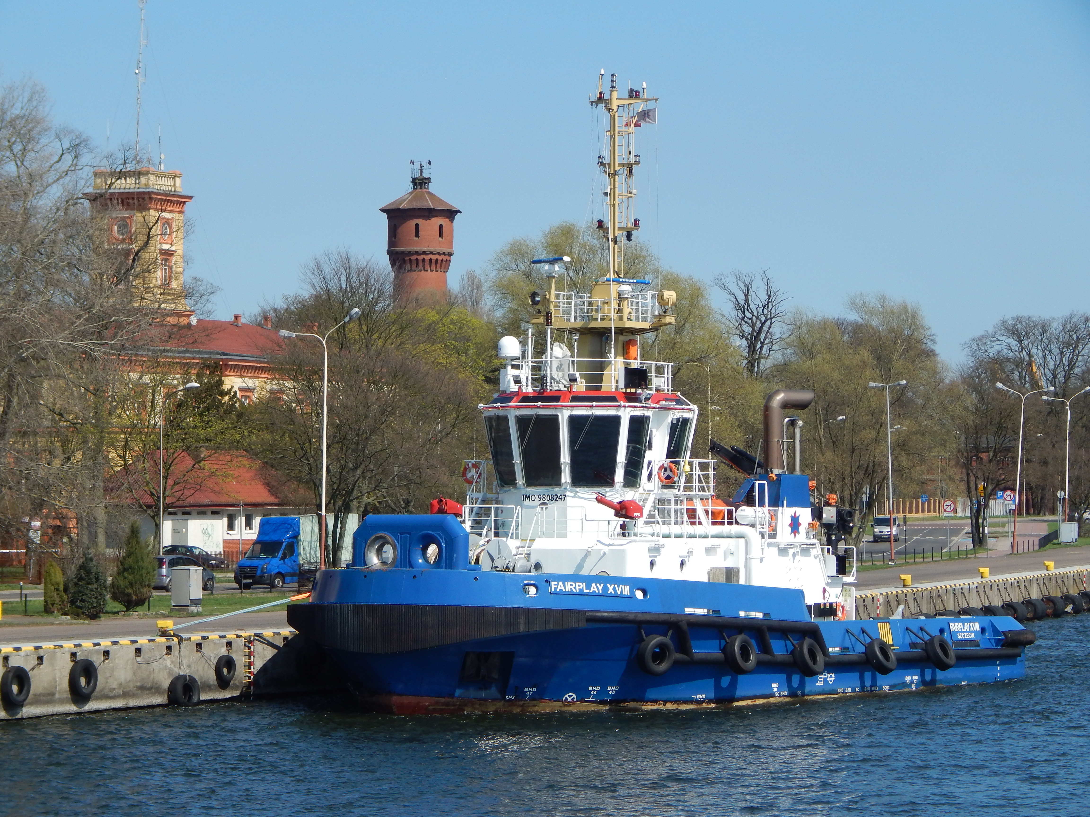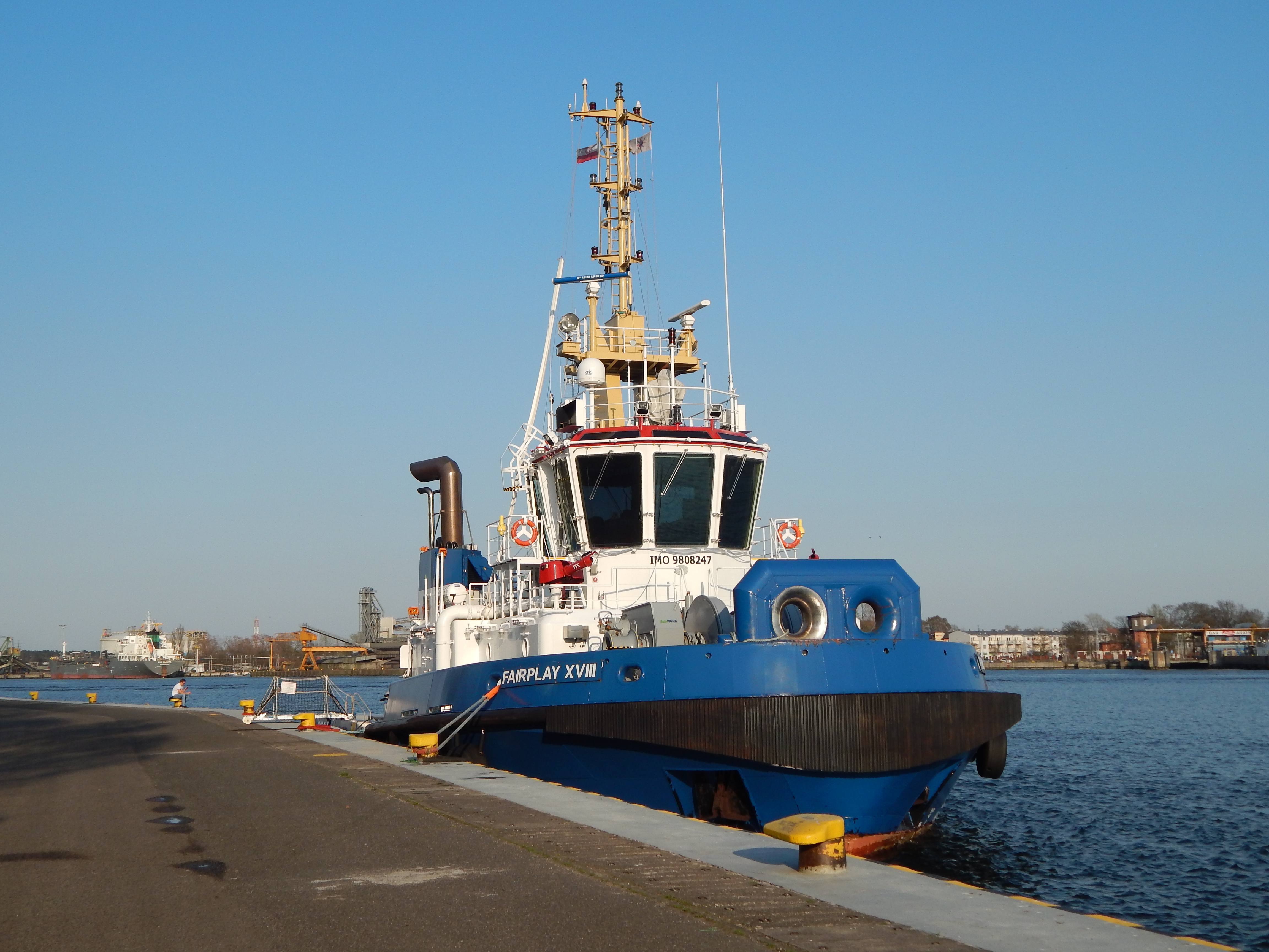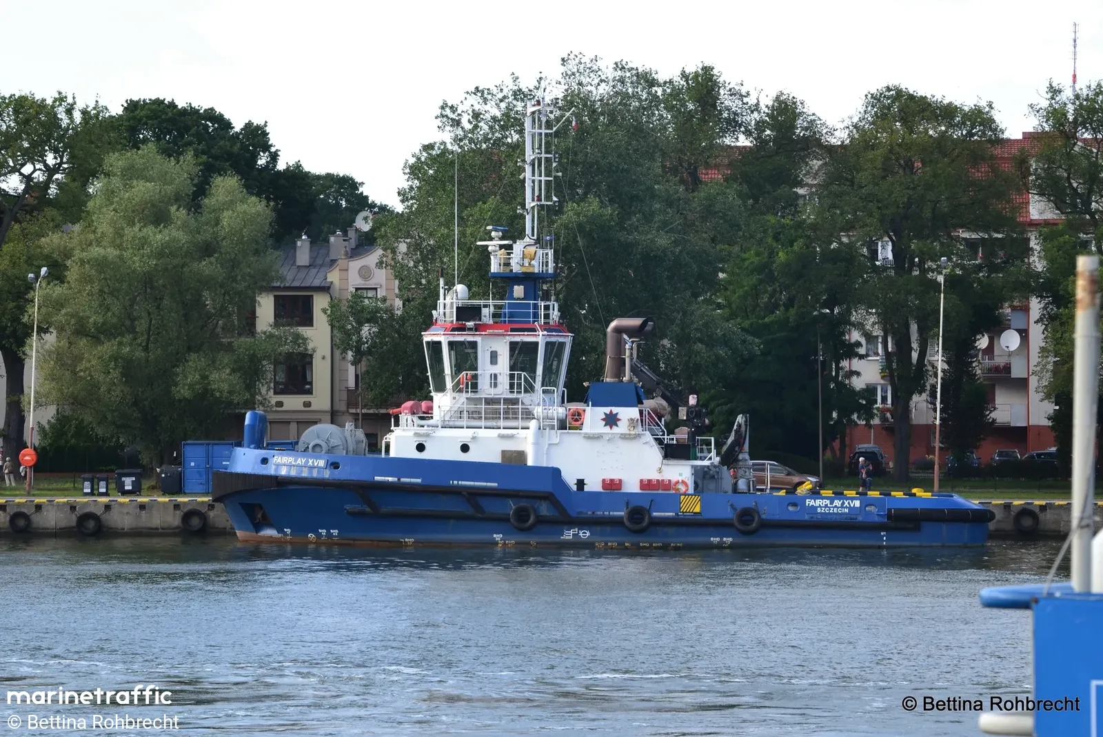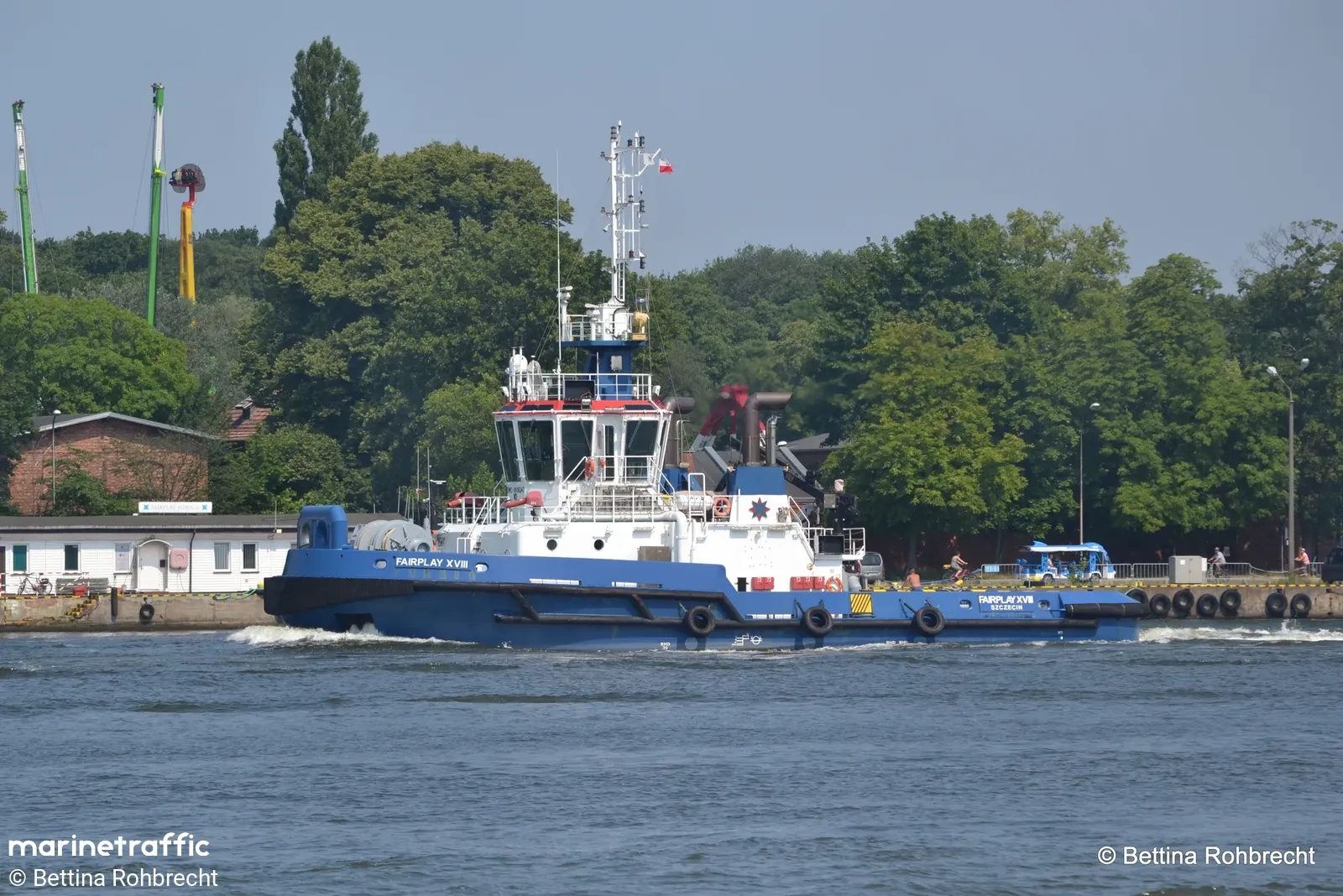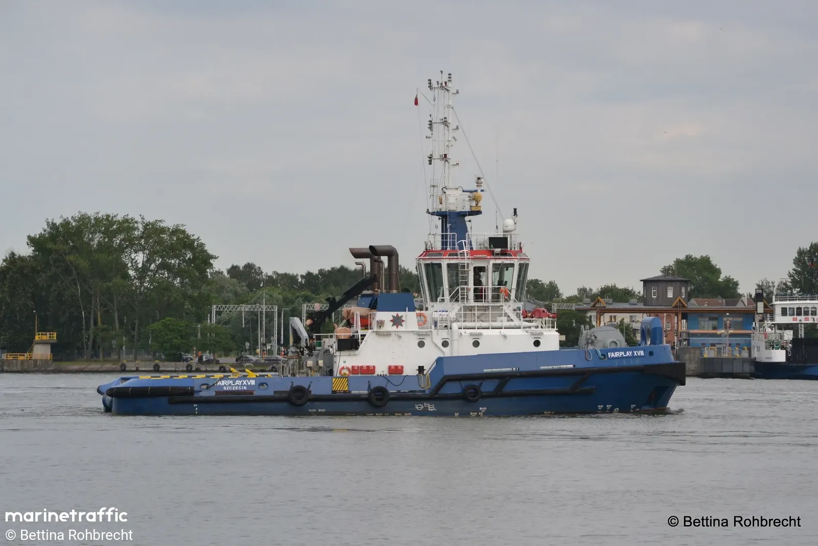 Nowoczesny holownik typu AST zbudowany w 2017 r. dla Bugsier-, Reederei- und Bergungs A.G., Hamburg, nazwany „BUGSIER 12”. Ukończony w lipcu 2017 r. Zatrudniony w hamburskim porcie. Bandera niemiecka, sygnał wywoławczy DJNZ2. W listopadzie 2017 r. wszedł w skład floty Fairplay Schleepdampschiffs-Reederei Richard Borchard GmbH. Natomiast grudniu tego samego roku opratorem została firma Fairplay Towage Polska Sp. z o.o., Świnoujście, port macierzysty Szczecin. Do Szczecina przybył 5 grudnia 2017 r. pod banderą Antigua i Barbuda. W następnym roku przemianowany na „FAIRPLAY XVIII”, podniósł banderę polską. Eksploatowany w porcie świnoujskim do października 2019 r. Ponownie podniósł banderę Antigua i Barbuda i skierowany został do Niemiec. 27 maja 2020 r. powrócił do Świnoujścia podnosząc ponownie polską banderę. W eksploatacji. © Opracował Waldemar Danielewicz – 27.08.2025/08.03.2026 |