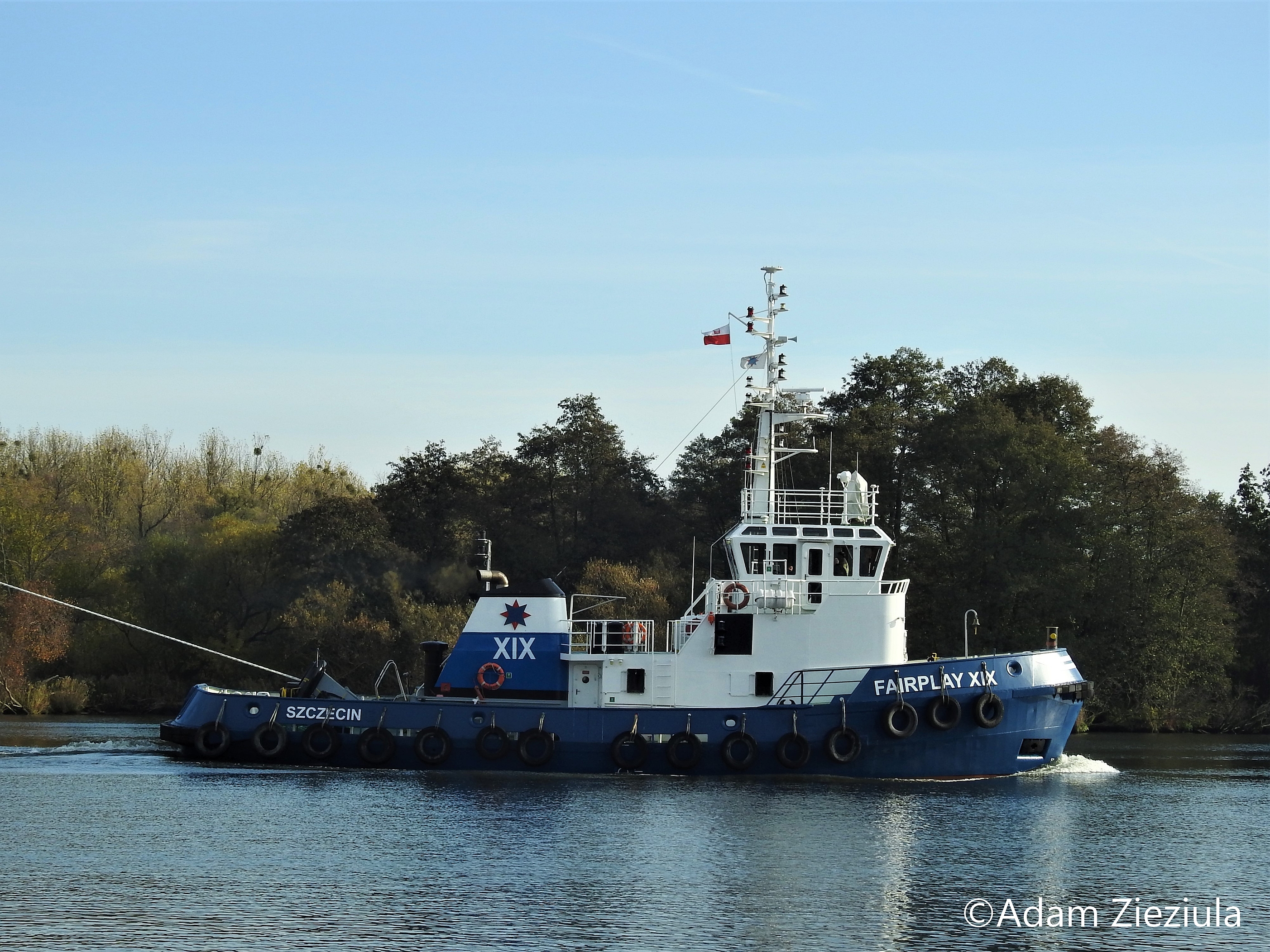 Holownik zbudowany w Cuxhaven w 1980 r. (wodowanie 01.07.1980, oddanie do użytku 11.11.1980). Nazwany „WILHELMINE”, port macierzysty Hamburg. Eksploatowany w porcie hamburskim. Brak informacji o armatorze. W 2021 r. przemianowany na „FAIRPLAY XIX”, armator Fairplay Schleppdampfschiff u. Reederei Richard Borchardt GmbH, Hamburg. W sierpniu 2021 r. trafił do Polski do Fairplay Towage Polska Sp. z o.o., Świnoujście, bandera polska. Sprzedany w sierpniu 2025 r. na Cypr. Nazwany „MMS FAIRPLUS”, bandera Antigua i Barbuda, port macierzysty St. John’s, sygnał wywoławczy V2B2014, MMSI 305014300, armator Renimar Ltd. Limassol. © Opracował Waldemar Danielewicz – 22.01.2026 |