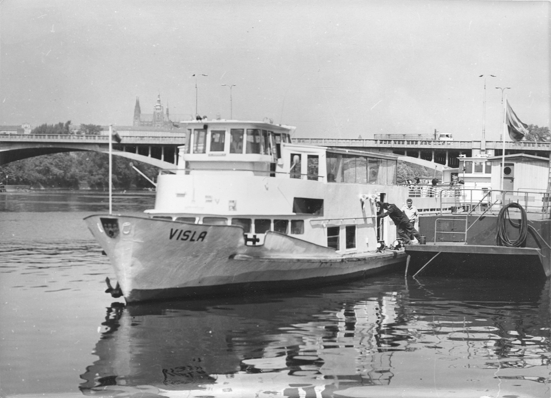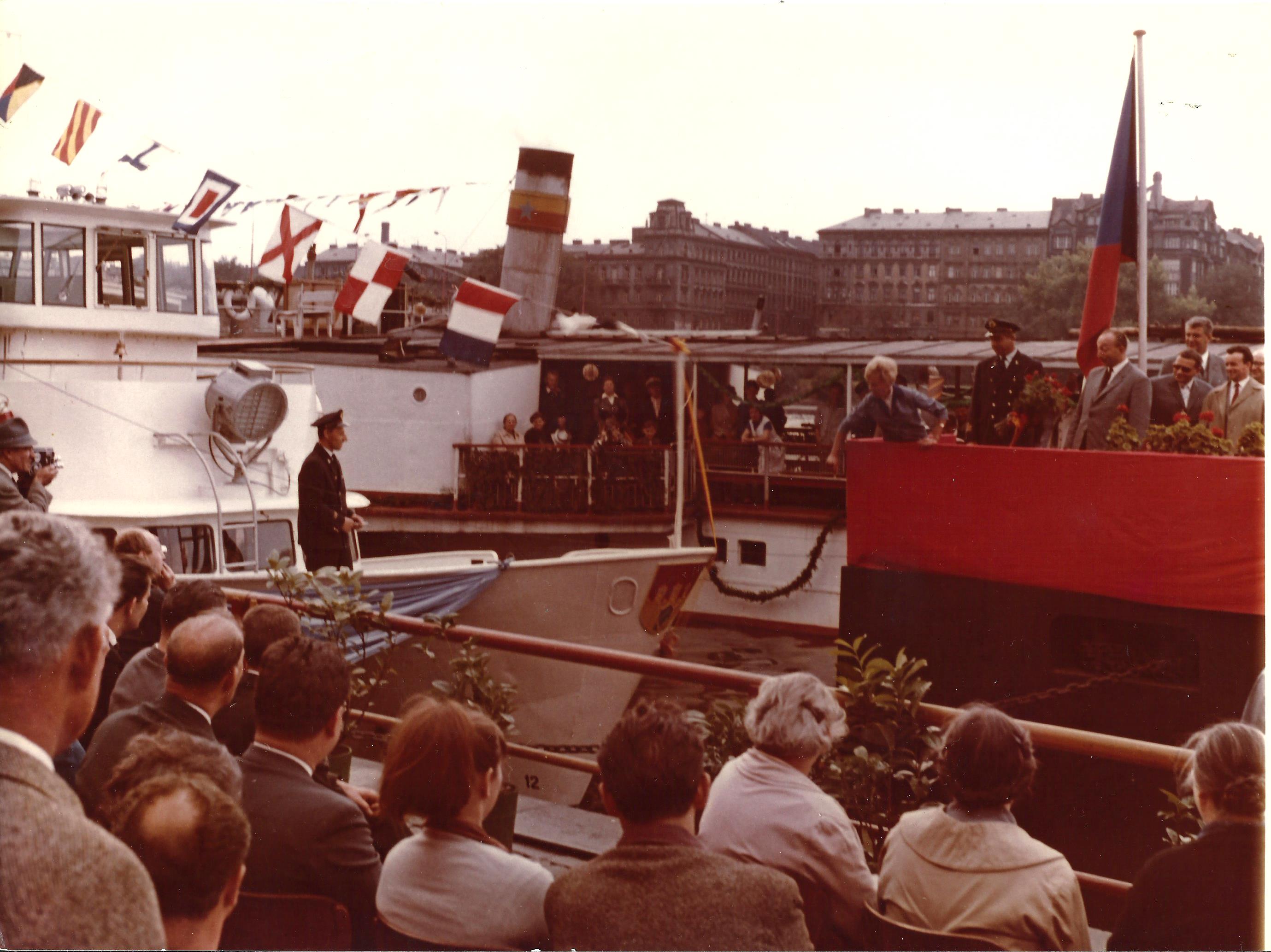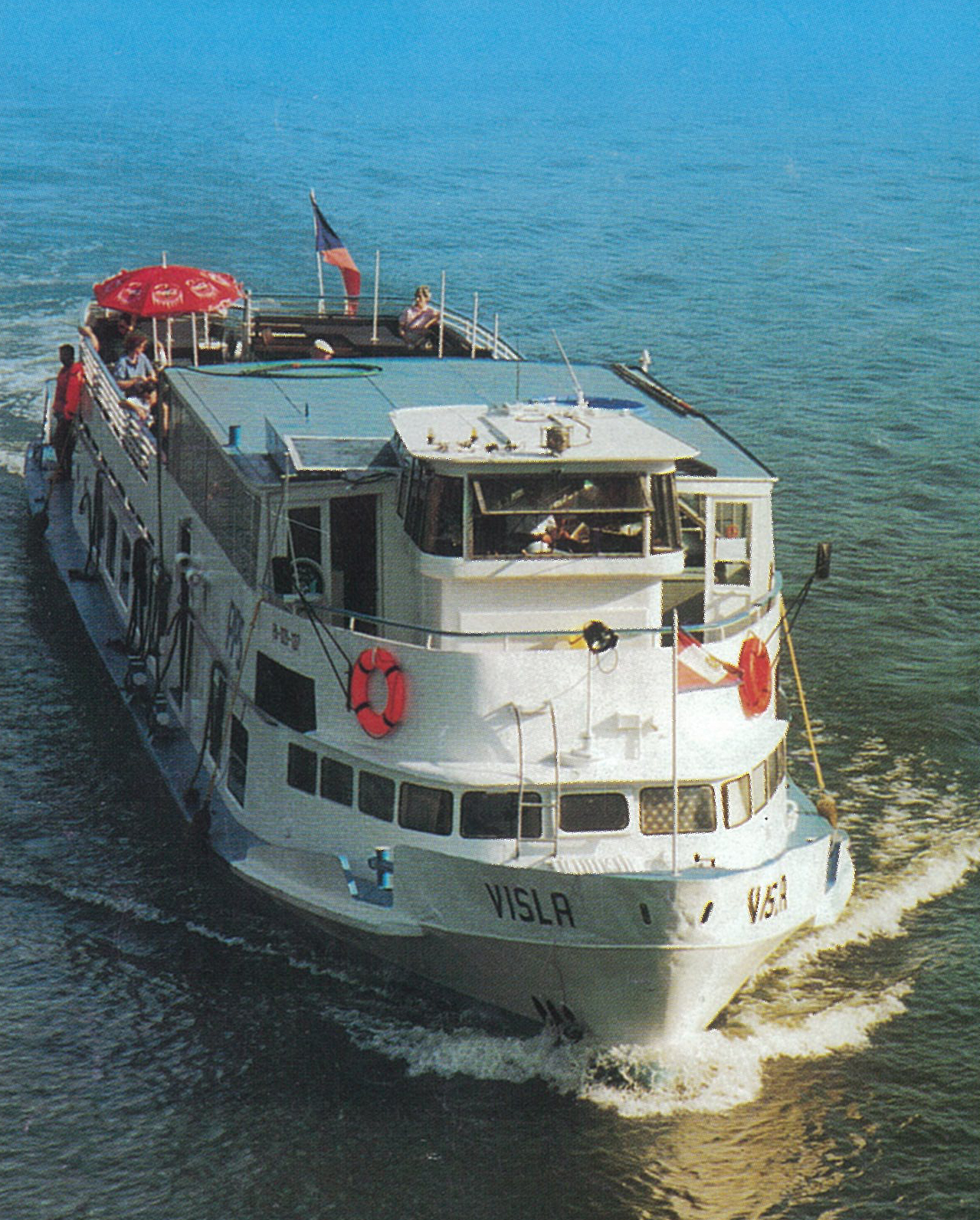 Zbudowany jako trzeci z kolei statek typu SPJD tym razem na zamówienie armatora czechosłowackiego, jakim była Pražská Paroplavební Společnost, nazwany „VISLA”. Do Pragi statek dotarł 26 sierpnia 1965 roku pod dowództwem kapitana Jaroslava Štefana. Eksploatowany był na Wełtawie i Łabie w rejsach wycieczkowych. W czasie jednego z rejsów do Barandowa na statku wybuchł pożar w maszynowni. Udało się go ugasić, ofiar w ludziach nie było. Jednak pożar spowodował zniszczenie siłowni. W latach siedemdziesiątych XX w. „VISLA” eksploatowana była w rejsach z Pragi do miejscowości Slapy. W 1994 roku statek wycofano z eksploatacji i zostawiono bez nadzoru, co poskutkowało znaczną dewastacją jednostki. W 1996 roku dzięki kapitanowi Jaroslavowi Trojanovi statek odbudowano. Od 2006 roku „VISLA” pływała w jednogodzinnych rejsach z Vysehradu do Rasinova. Po 2010 roku jednostka przestała być eksploatowana na długich liniach ze względu na wiek, częste awarie i na niezbyt elegancki wystrój wnętrz, gdyż służyła też jako statek, na którym odbywały się dyskoteki. W drugiej połowie sezonu 2012 statek został wydzierżawiony do miejscowości Brandys nad Łabą na trzy miesiące w ramach kampanii wyborczej Raduana Nwelatiego, który wówczas na próżno kandydował na gubernatorstwo środkowo-czeskie. W 2012 roku „VISLA” powróciła do eksploatacji na jeszcze jeden sezon. Po zakończeniu sezonu statek został odstawiony w Pradze w październiku 2013 roku w celu całkowitej przebudowy. Na przestrzeni lat „VISLA” otrzymała tylko kilka drobnych modyfikacji, takich jak okna oraz malowanie. Wiosną 2014 roku zapadła decyzja o nieremontowaniu jednostki, ze względu na wadę silnika został on odłączony od instalacji paliwowej i chłodzącej oraz sprzęgła. Statek był unieruchomiony przez 1,5 roku. Na szczęście w połowie sezonu letniego 2015 roku statek odżył, ponieważ został wydzierżawiony firmie Porto Aperol, która zaczęła go używać jako stojącej restauracji i baru w Pradze na nabrzeżu Rašínovo, około 200 metrów w górę rzeki od Mostu Palackiego. Ostatecznie „VISLA” doczekała się dnia 26 sierpnia 2015 r. 150-tej rocznicy założenia PPS. Pod koniec sezonu 2016 umowa najmu z Porto Aperol została zakończona, a po kolejnych modyfikacjach „VISLA” działa jako bar w tej samej lokalizacji od 2017 roku. Statek istnieje do dziś. © Opracował Waldemar Danielewicz – 13.03.2026 |