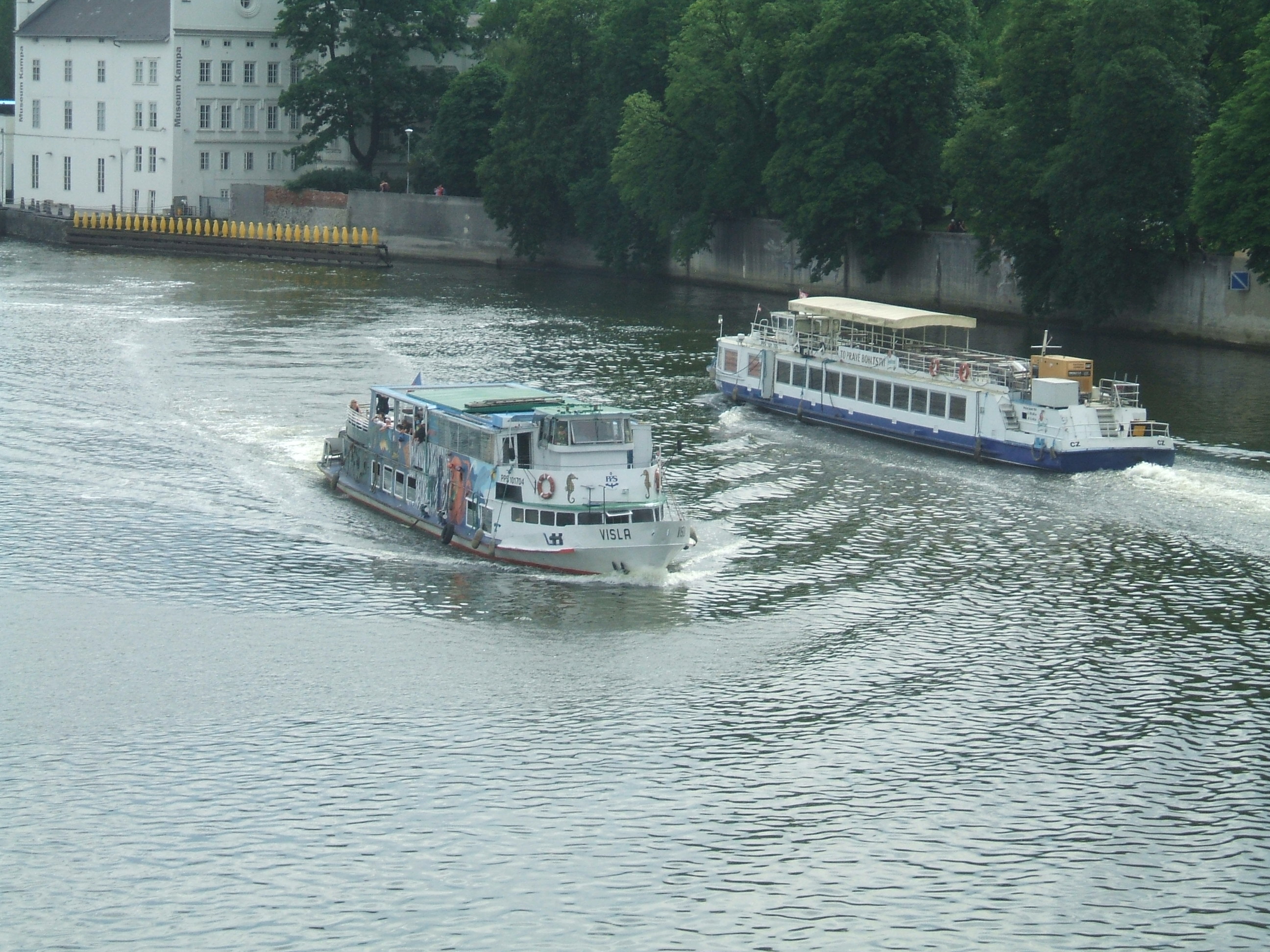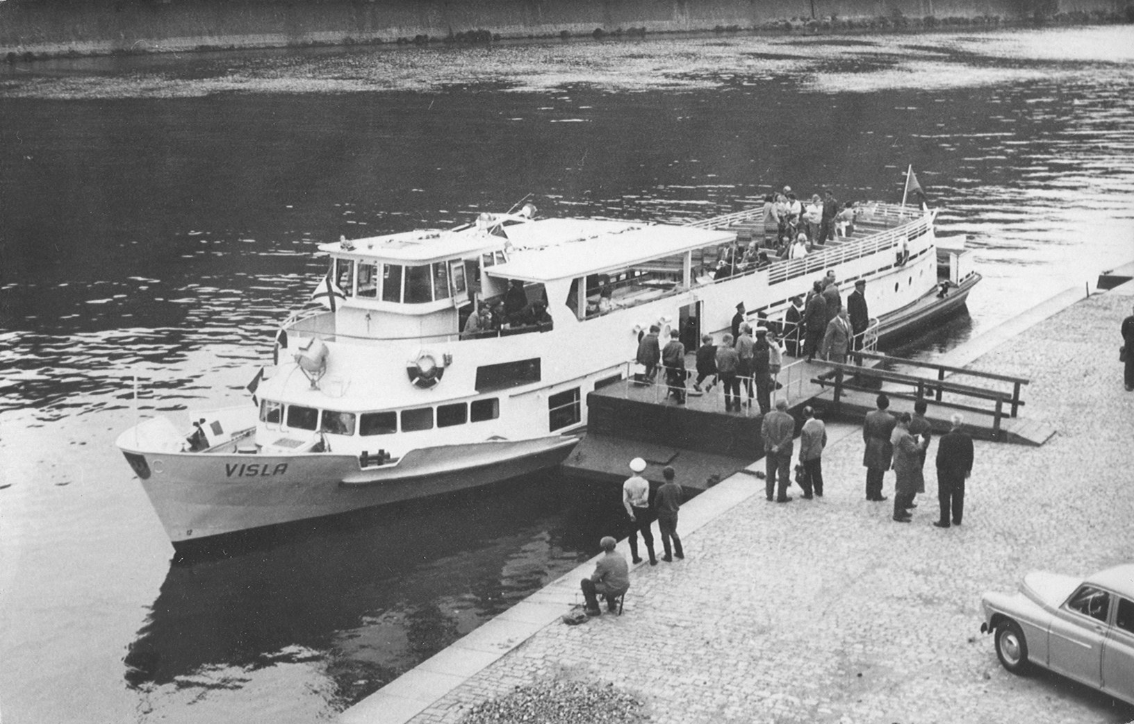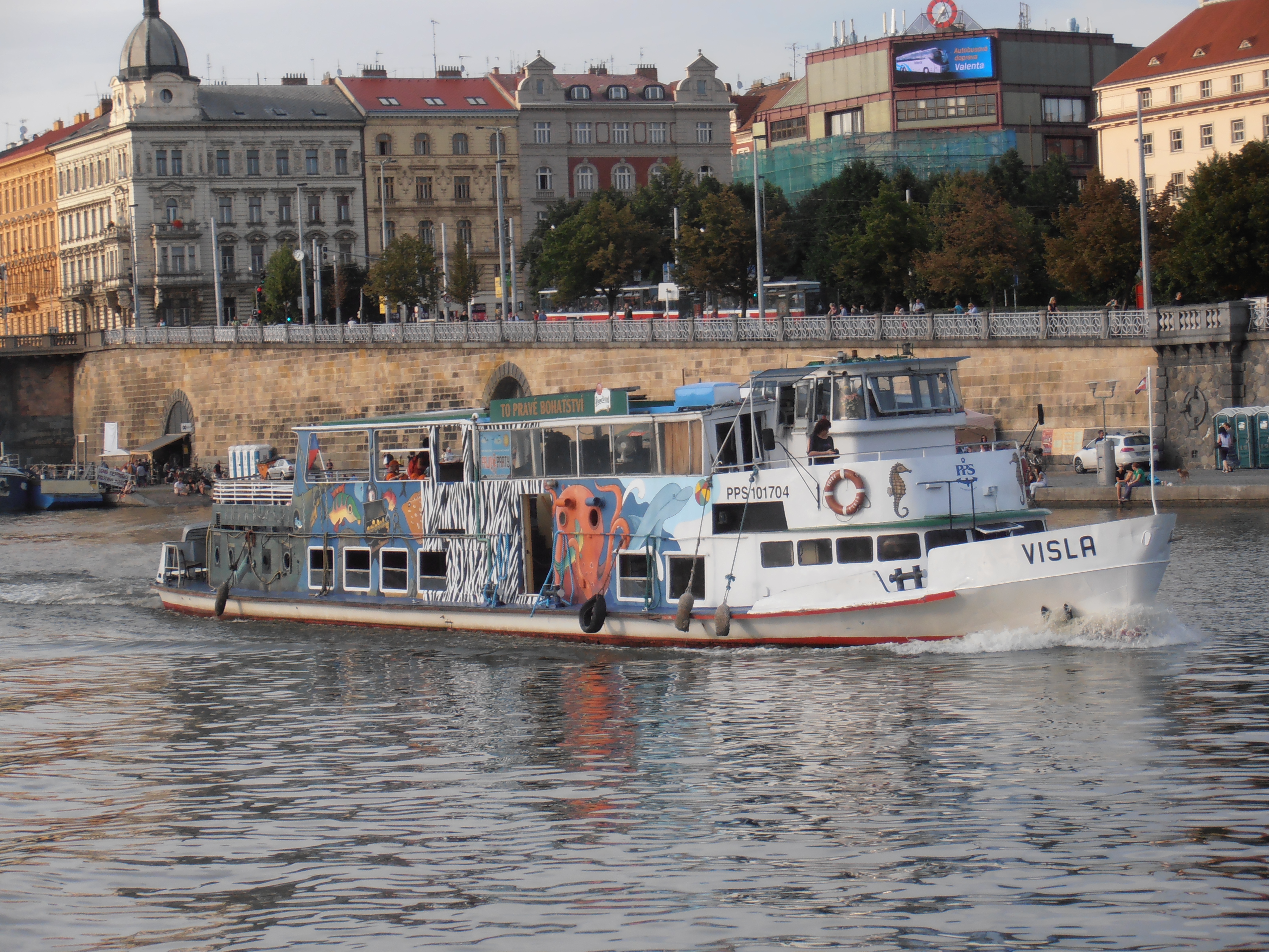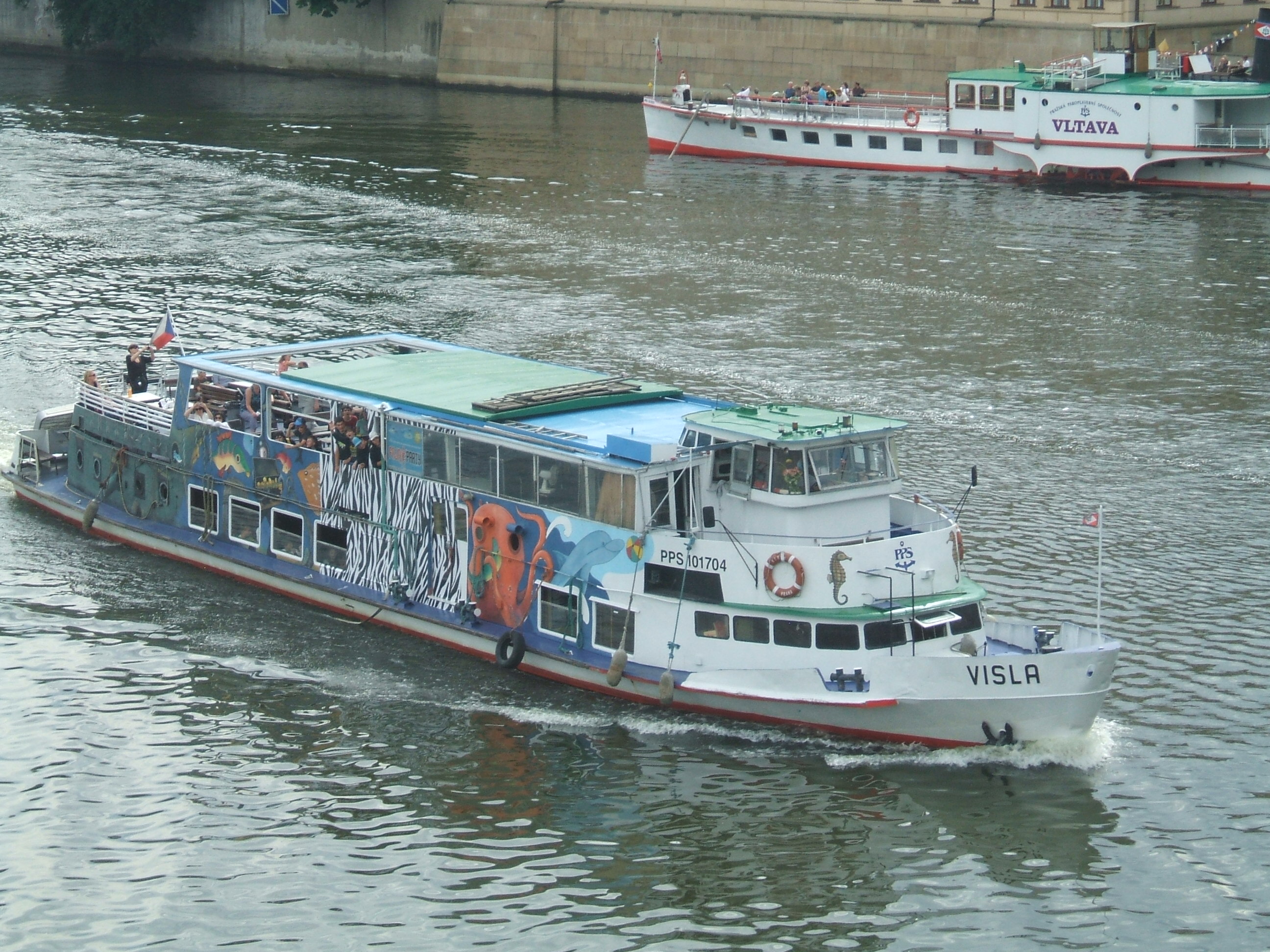 Zbudowany jako trzeci z kolei statek typu SPJD tym razem na zamówienie armatora czechosłowackiego, jakim była Pražská Paroplavební Společnost, nazwany „VISLA”. Do Pragi statek dotarł 26 sierpnia 1965 roku pod dowództwem kapitana Jaroslava Štefana. Eksploatowany był na Wełtawie i Łabie w rejsach wycieczkowych. W czasie jednego z rejsów do Barandowa na statku wybuchł pożar w maszynowni. Udało się go ugasić, ofiar w ludziach nie było. Jednak pożar spowodował zniszczenie siłowni. W latach siedemdziesiątych XX w. „VISLA” eksploatowana była w rejsach z Pragi do miejscowości Slapy. W 1994 roku statek wycofano z eksploatacji i zostawiono bez nadzoru, co poskutkowało znaczną dewastacją jednostki. W 1996 roku dzięki kapitanowi Jaroslavowi Trojanovi statek odbudowano. Od 2006 roku „VISLA” pływała w jednogodzinnych rejsach z Vysehradu do Rasinova. Po 2010 roku jednostka przestała być eksploatowana na długich liniach ze względu na wiek, częste awarie i na niezbyt elegancki wystrój wnętrz, gdyż służyła też jako statek, na którym odbywały się dyskoteki. W drugiej połowie sezonu 2012 statek został wydzierżawiony do miejscowości Brandys nad Łabą na trzy miesiące w ramach kampanii wyborczej Raduana Nwelatiego, który wówczas na próżno kandydował na gubernatorstwo środkowo-czeskie. W 2012 roku „VISLA” powróciła do eksploatacji na jeszcze jeden sezon. Po zakończeniu sezonu statek został odstawiony w Pradze w październiku 2013 roku w celu całkowitej przebudowy. Na przestrzeni lat „VISLA” otrzymała tylko kilka drobnych modyfikacji, takich jak okna oraz malowanie. Wiosną 2014 roku zapadła decyzja o nieremontowaniu jednostki, ze względu na wadę silnika został on odłączony od instalacji paliwowej i chłodzącej oraz sprzęgła. Statek był unieruchomiony przez 1,5 roku. Na szczęście w połowie sezonu letniego 2015 roku statek odżył, ponieważ został wydzierżawiony firmie Porto Aperol, która zaczęła go używać jako stojącej restauracji i baru w Pradze na nabrzeżu Rašínovo, około 200 metrów w górę rzeki od Mostu Palackiego. Ostatecznie „VISLA” doczekała się dnia 26 sierpnia 2015 r. 150-tej rocznicy założenia PPS. Pod koniec sezonu 2016 umowa najmu z Porto Aperol została zakończona, a po kolejnych modyfikacjach „VISLA” działa jako bar w tej samej lokalizacji od 2017 roku. Statek istnieje do dziś. © Opracował Waldemar Danielewicz – 13.03.2026 |