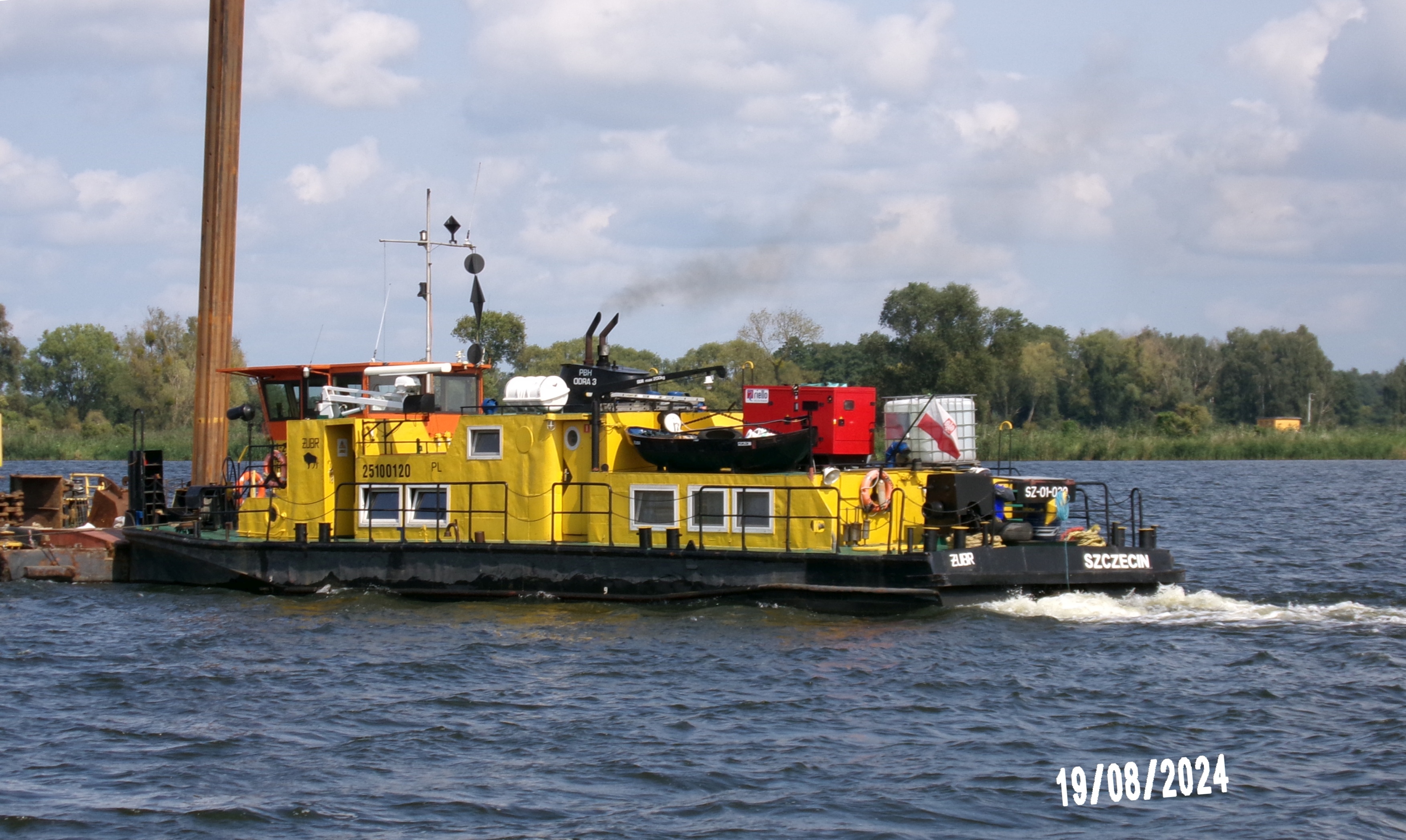 POPRZEDNIE NAZWY: ex ŻUBR-W-03, ex ŻUBR 3. TYP STATKU: pchacz typu Żubr. ROK I MIEJSCE BUDOWY: 1962, Warszawska Stocznia Rzeczna w Warszawie. STOCZNIOWY NUMER BUDOWY: B039/32. WYMIARY: długość całkowita 20,70 m, długość kadłuba 20,54 m, szerokość całkowita 5,97 m, wysokość burt 1,67 m, wysokość nierozbieralna 3,97 m, zanurzenie 0,75 m. SILNIKI GŁÓWNE: 2 silniki wysokoprężne typu B-90W, 2-suwowe, 3-cylindrowe, moc 2 x 90 KM/66 kW, średnica cylindra 195 mm, skok tłoka 260 mm, liczba obrotów silnika/pędnika 425/425 na minutę, rok produkcji 1961, numery fabryczne 103/25 i 103/26, producent: Puckie Zakłady Mechaniczne w Pucku. ↓ 2 silniki wysokoprężne typu 04H6, 6-cylindrowe, moc 2 x 145 KM/107 kW, średnica cylindra 135 mm, skok tłoka 155 mm, liczba obrotów silnika/pędnika 1600/533 na minutę, numery fabryczne 0161 i 1360, producent: Zakłady Mechaniczne im. M. Nowotki w Warszawie. INNE DANE: kadłub stalowy spawany o poprzecznym układzie wiązań, pokład stalowy, pędniki: 2 śruby, prędkość 10 km/h, załoga 3-4 osoby. ARMATOR: Przedsiębiorstwo Budownictwa Hydrotechnicznego „Odra 3” Sp. z o.o. w Szczecinie. PORT MACIERZYSTY: Szczecin. NUMERY REJESTRACYJNE: 350 [RDW Warszawa], Wa-I-48 [IŻŚr Warszawa], SZ-01-030 [UŻŚr Szczecin]. NUMER ENI: 25100120. SYGNAŁ WYWOŁAWCZY: SR2412, MMSI 261182412. NUMER PRS: 23388 → 230388.