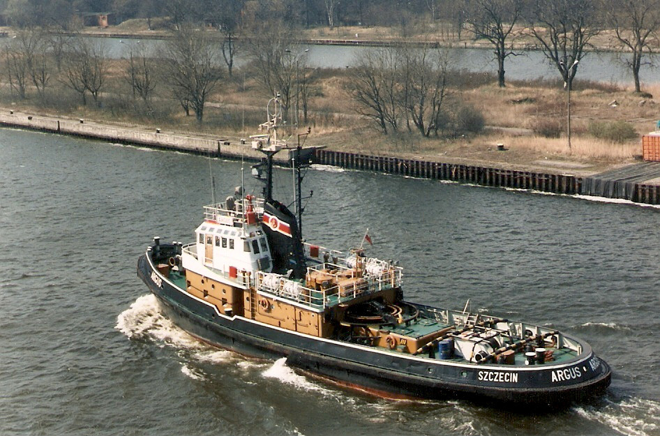 Czwarty z serii holowników typu H-2500 zaprojektowanych przez Biuro Projektowo-Technologiczne Morskich Stoczni Remontowych w Gdańsku. Zbudowany w 1977 r. [wodowanie 20.04.1977, ukończenie i podniesienie bandery 30.09.1977] przez Stocznię Marynarki Wojennej im. Dąbrowszczaków w Gdyni. Nazwany „ARGUS” zasilił w 1977 r. flotę Zarządu Portu Szczecin. Mógł pracować zarówno w portach, na redach oraz w holowaniach w rejonie Bałtyku i Morza Północnego. W dniach 08-11.05.1985 ściągał z mielizny koło Świnoujścia holenderski statek „BLOEMGRACHT”. 07-08.09.1986 pomagał w akcji gaszenia pożaru, a potem holował na redę prom „JAN HEWELIUSZ”. Od 27.02 do 14.03.1988 brał udział wraz z innymi holownikami w ściąganiu z mielizny koło Skagen statku „INOWROCŁAW”. W dniu 07.01.1989 o godz. 18:41 na obrotnicy północnej portu świnoujskiego podczas manewrów wyjściowych na redę, idący pod balastem masowiec „UNIWERSYTET JAGIELOŃSKI” uderzył śrubą napędową w prawoburtowe poszycie holownika powodując jego zatonięcie w ciągu 3 minut. Załogę holownika uratowała pilotówka „PILOT 63”. Podniesiony przez dźwig pływający „MAJA”, lodołamacz „PERKUN”, holowniki „POSEJDON” i „ROSOMAK” i wyremontowany. W 1991 r. właścicielem holownika został Port Handlowy Świnoujście S.A., Świnoujście. Od 1 października 2001 r. w Port-Hol Sp. z o.o. w Świnoujściu. Od 2008 r. w Fairplay Schleppdampschiffs-Reederei Richard Borhard GmbH Oddział w Polsce. W 2011 r. w Fairplay Polska Sp. z o.o. & Co. S.K., a od marca 2015 r. Fairplay Towage Polska Sp. z o.o. S.K. W 2023 r. sprzedany firmie Salamis Shipbuilding & Enginering (Cyprus) Ltd. Limassol, nazwany „ST. NICOLAS NS”, bandera Wysp Palau, sygnał wywoławczy T8A4928, MMSI 511101520, numer rejestru P047534. © Opracował Waldemar Danielewicz – 22.03.2026 |