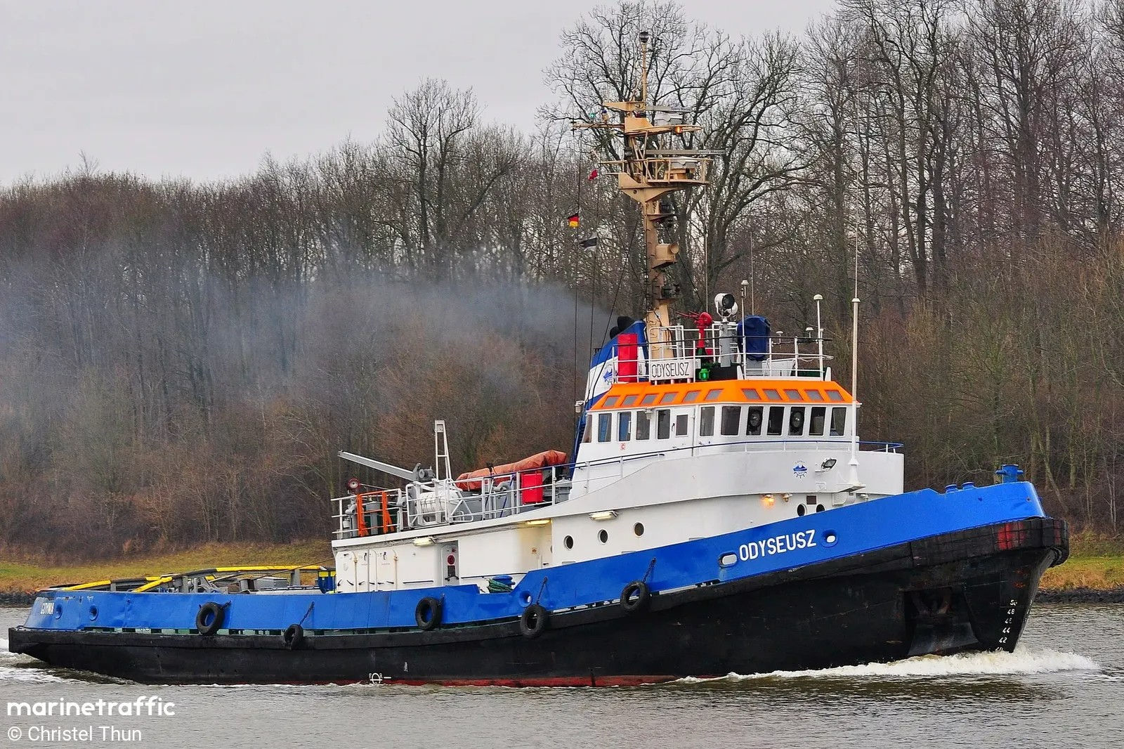 Szósty z serii holowników typu H-2500 zaprojektowanych przez Biuro Projektowo-Technologiczne Morskich Stoczni Remontowych w Gdańsku. Zbudowany przez Stocznię Marynarki Wojennej im. Dąbrowszczaków w Gdyni w lutym 1980 r. (wodowanie 06.08.1979, podniesienie bandery 09.02.1980). Nazwany „ODYSEUSZ” zasilił w 1980 r. flotę jednostek pomocniczych Zarządu Portu Gdynia. Może pracować zarówno w portach, na redach, jak i przy holowaniach w rejonie Bałtyku i Morza Północnego. Od czerwca 1984 r. w Wydziale Usług Żeglugowych Morskiego Portu Handlowego w Gdyni. Od 1 maja 1996 r. armatorem holownika została spółka „WUŻ” Przedsiębiorstwo Usług Żeglugowych i Portowych Sp. z o.o., Gdynia. Natomiast od 1 września 2011 r. gdyński „WUŻ” stał się własnością firmy Fairplay B.V. w Rotterdamie, aby od marca 2015 r. „ODYSEUSZA” przejął Fairplay Towage Polska Sp. z o.o. w Gdyni. W lipcu 2015 r. sprzedany firmie Moreservis Ltd. z Królewca. Nazwany „ODISSEY” [OДИССЭЙ], sygnał wywoławczy UBBO2, MMSI 273380520. Wykazywany jest obecnie w Archangielsku. © Opracował Waldemar Danielewicz – 22.03.2026 |