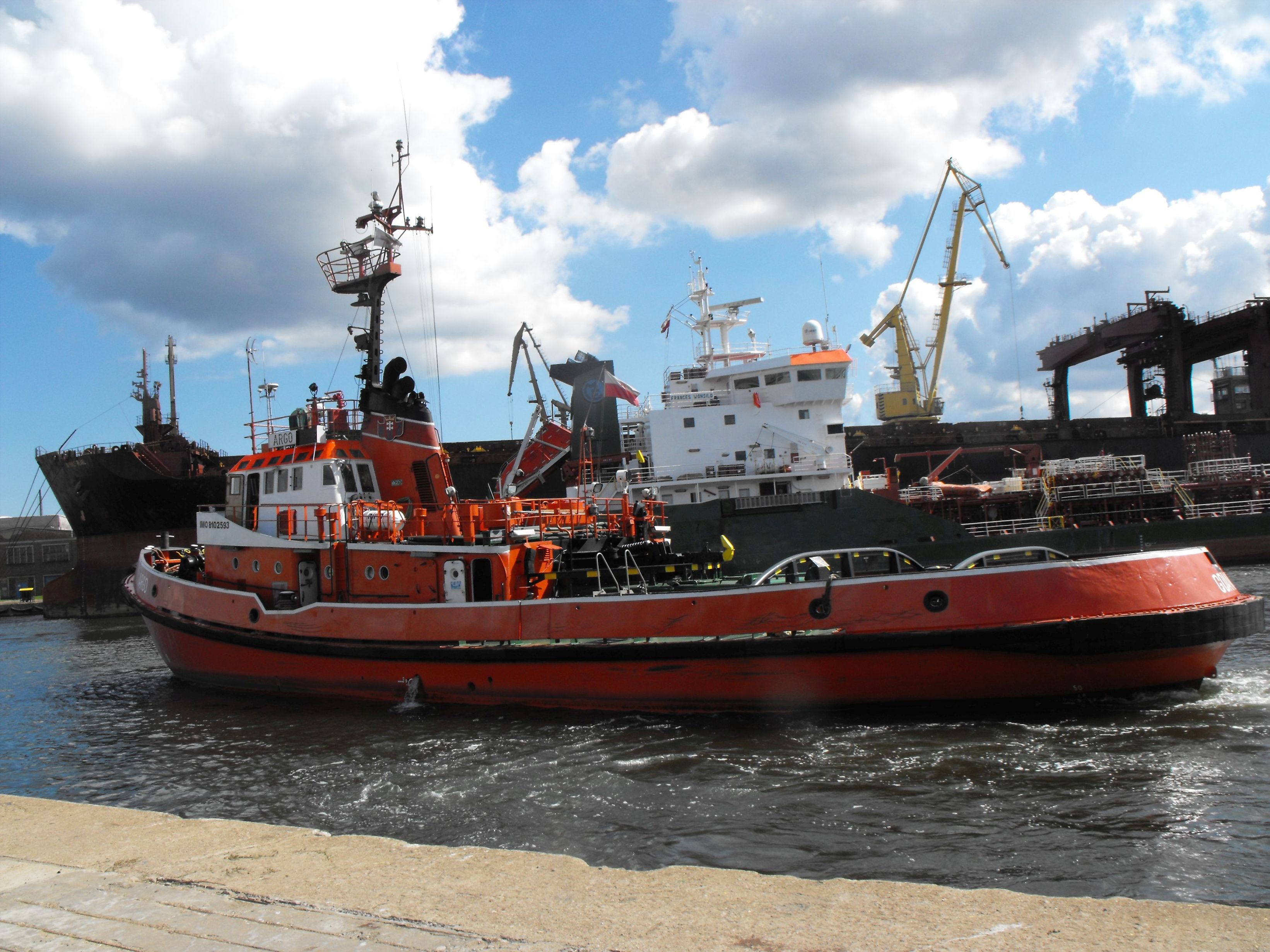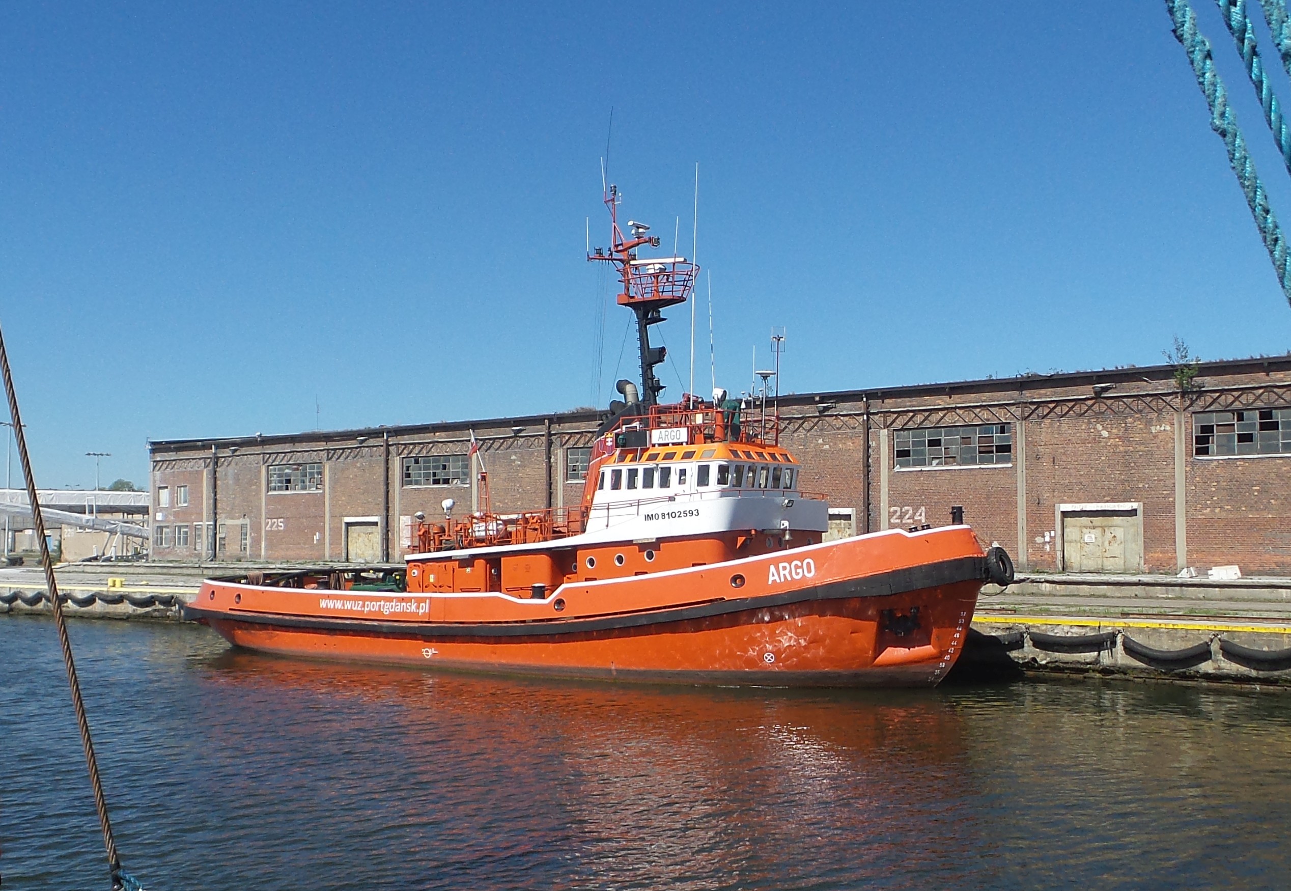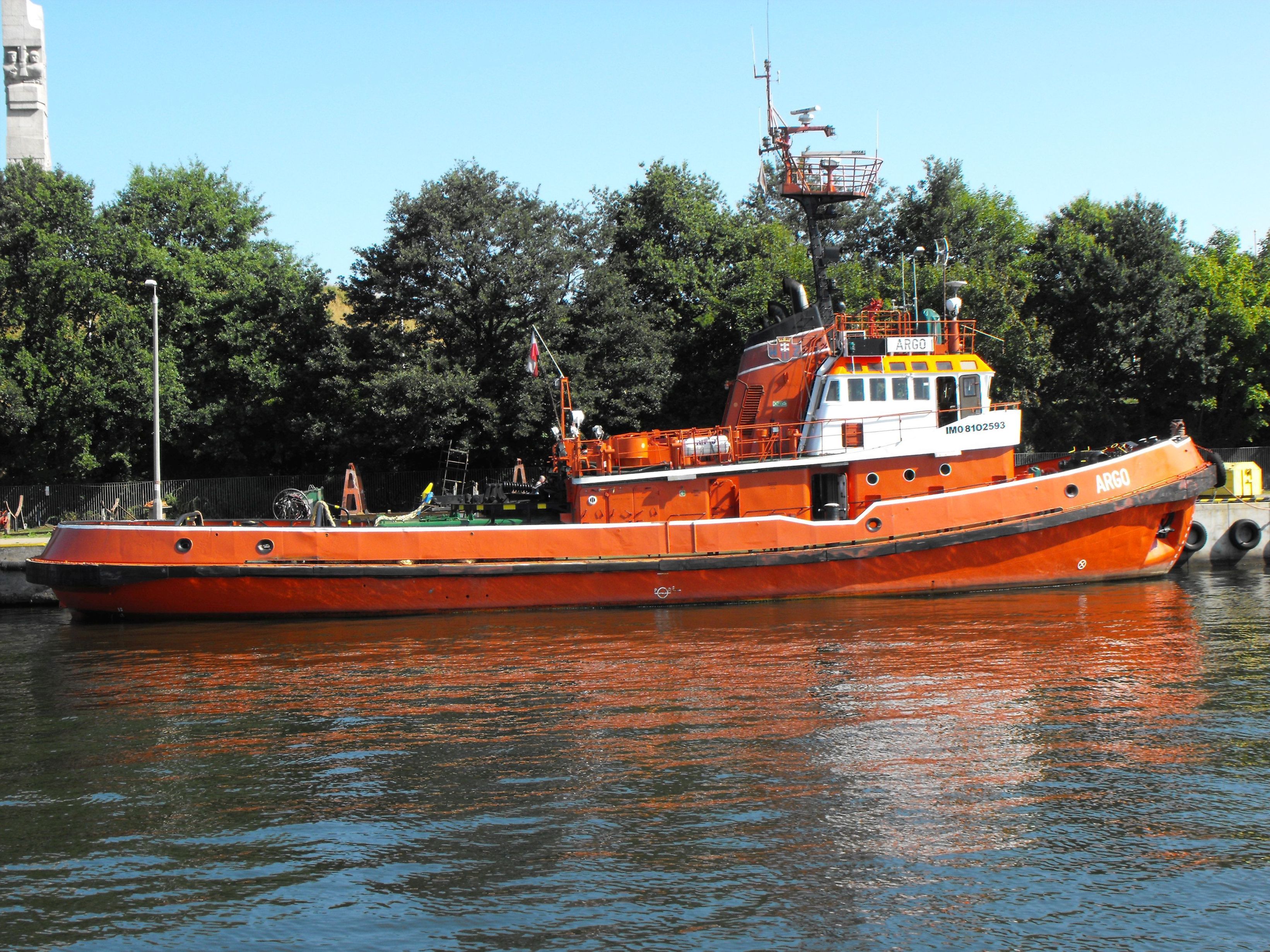 Ósmy z serii holowników typu H-2500 zaprojektowanych przez Biuro Projektowo-Technologiczne Morskich Stoczni Remontowych w Gdańsku. Nazwany „ARGO”, wodowany 07.07.1980, ukończony 31.03.1981, podniesienie bandery 31.03.1981, zasilił w 1981 r. flotę Zarządu Portu Gdańsk. Mógł pracować zarówno w portach, na redach, jak i w holowaniach w rejonie Bałtyku i Morza Północnego. W dniu 11.08.1983 na skutek awarii steru uderzył w keję i stojący przy niej statek pasażerski „MAŁGORZATA”, zerwał go z cum i przesunął kilkanaście metrów dalej pod pomost przeładunkowy, na skutek czego została na „MAŁGORZACIE” poważnie uszkodzona sterówka. Na szczęście obyło się bez ofiar w ludziach. Od czerwca 1984 r. w Wydziale Usług Żeglugowych Morskiego Portu Handlowego w Gdańsku. Od czerwca 1991 r. stanowił własność -Przedsiębiorstwa Usług Portowych i Morskich WUŻ sp. z o.o. Morskiego Portu Handlowego S.A. w Gdańsku. W czerwcu 1994 r. w Przedsiębiorstwie Usług Portowych i Morskich WUŻ sp. z o.o. w Gdańsku, a od 2005 r. w WUŻ Port & Martime Services Ltd. sp. z o.o. w Gdańsku. Sprzedany w lipcu 2021 r., nazwany „VARGO”, port macierzysty Georgetown. Armator nie znany. W dniu 30 października 2021 opuścił port gdański udając się do Rotterdamu pod banderą Gujany. Potem bandera Nigerii, sygnał wywoławczy 5N2050, MMSI 657260900. Obecnie w porcie Lome w Togo. © Opracował Waldemar Danielewicz – 23.03.2026 |