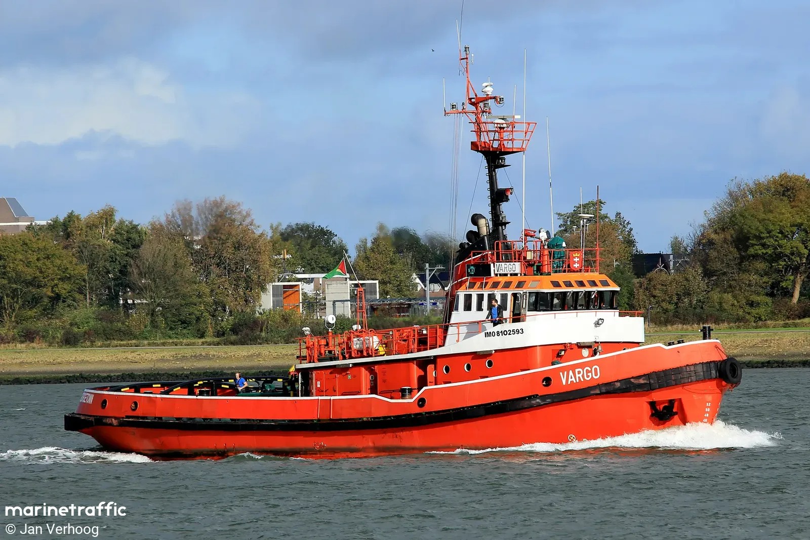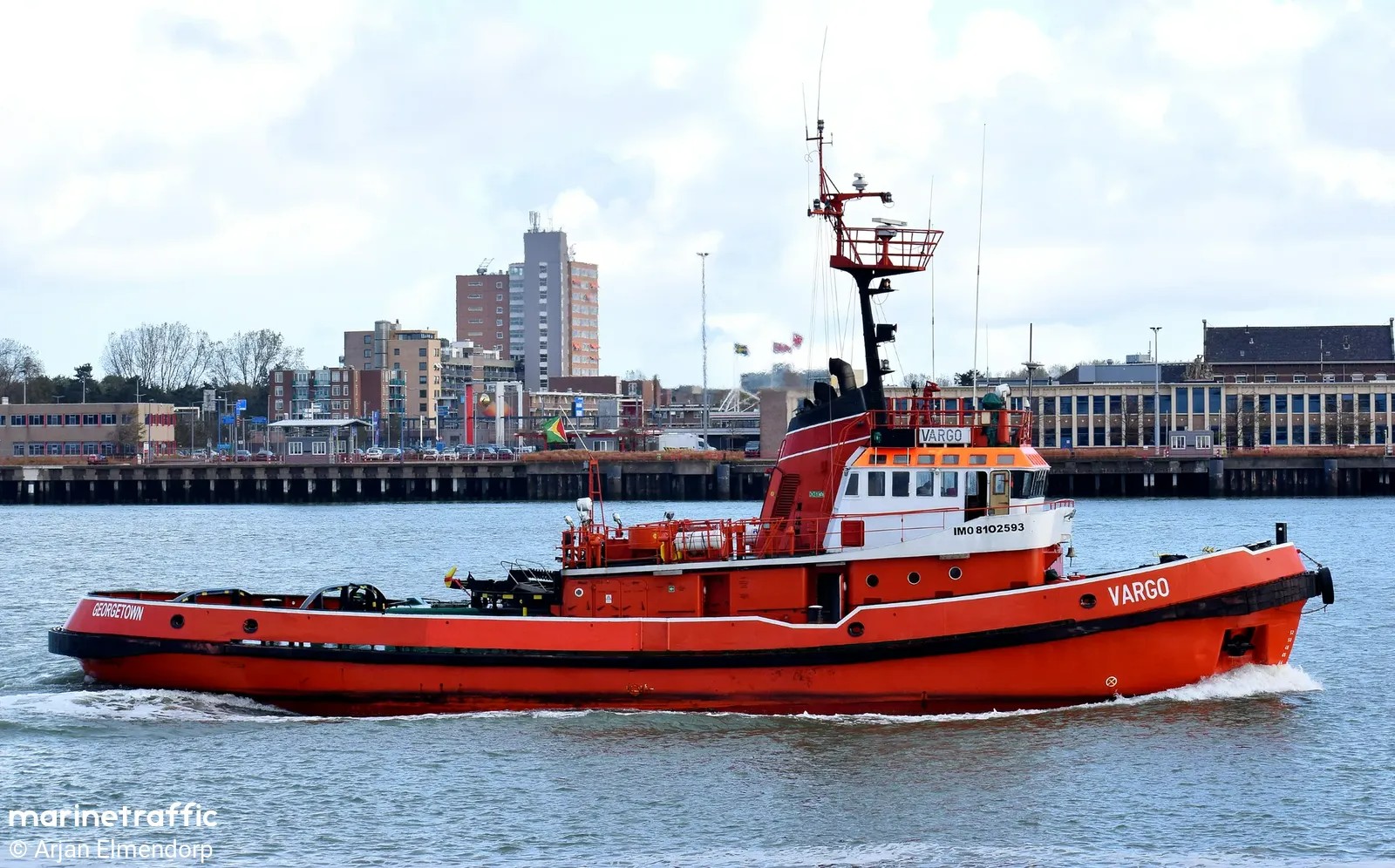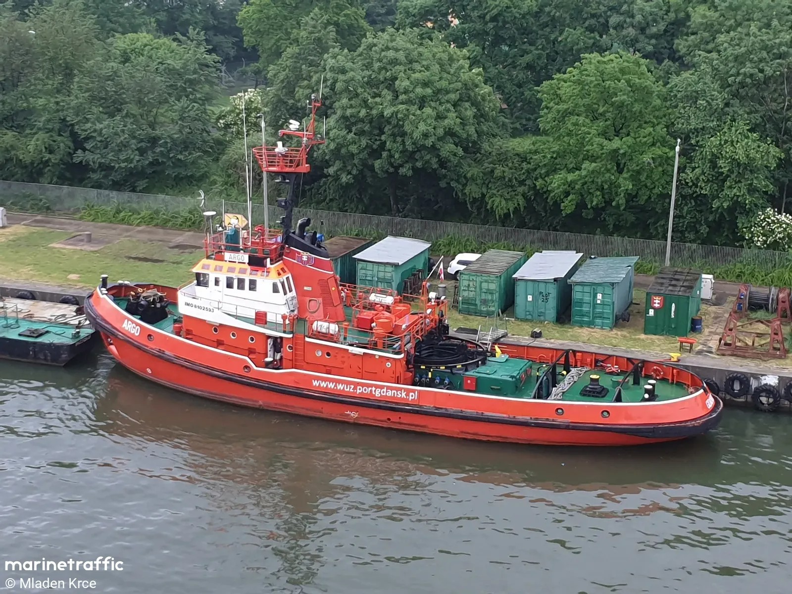 Ósmy z serii holowników typu H-2500 zaprojektowanych przez Biuro Projektowo-Technologiczne Morskich Stoczni Remontowych w Gdańsku. Nazwany „ARGO”, wodowany 07.07.1980, ukończony 31.03.1981, podniesienie bandery 31.03.1981, zasilił w 1981 r. flotę Zarządu Portu Gdańsk. Mógł pracować zarówno w portach, na redach, jak i w holowaniach w rejonie Bałtyku i Morza Północnego. W dniu 11.08.1983 na skutek awarii steru uderzył w keję i stojący przy niej statek pasażerski „MAŁGORZATA”, zerwał go z cum i przesunął kilkanaście metrów dalej pod pomost przeładunkowy, na skutek czego została na „MAŁGORZACIE” poważnie uszkodzona sterówka. Na szczęście obyło się bez ofiar w ludziach. Od czerwca 1984 r. w Wydziale Usług Żeglugowych Morskiego Portu Handlowego w Gdańsku. Od czerwca 1991 r. stanowił własność -Przedsiębiorstwa Usług Portowych i Morskich WUŻ sp. z o.o. Morskiego Portu Handlowego S.A. w Gdańsku. W czerwcu 1994 r. w Przedsiębiorstwie Usług Portowych i Morskich WUŻ sp. z o.o. w Gdańsku, a od 2005 r. w WUŻ Port & Martime Services Ltd. sp. z o.o. w Gdańsku. Sprzedany w lipcu 2021 r., nazwany „VARGO”, port macierzysty Georgetown. Armator nie znany. W dniu 30 października 2021 opuścił port gdański udając się do Rotterdamu pod banderą Gujany. Potem bandera Nigerii, sygnał wywoławczy 5N2050, MMSI 657260900. Obecnie w porcie Lome w Togo. © Opracował Waldemar Danielewicz – 23.03.2026 |