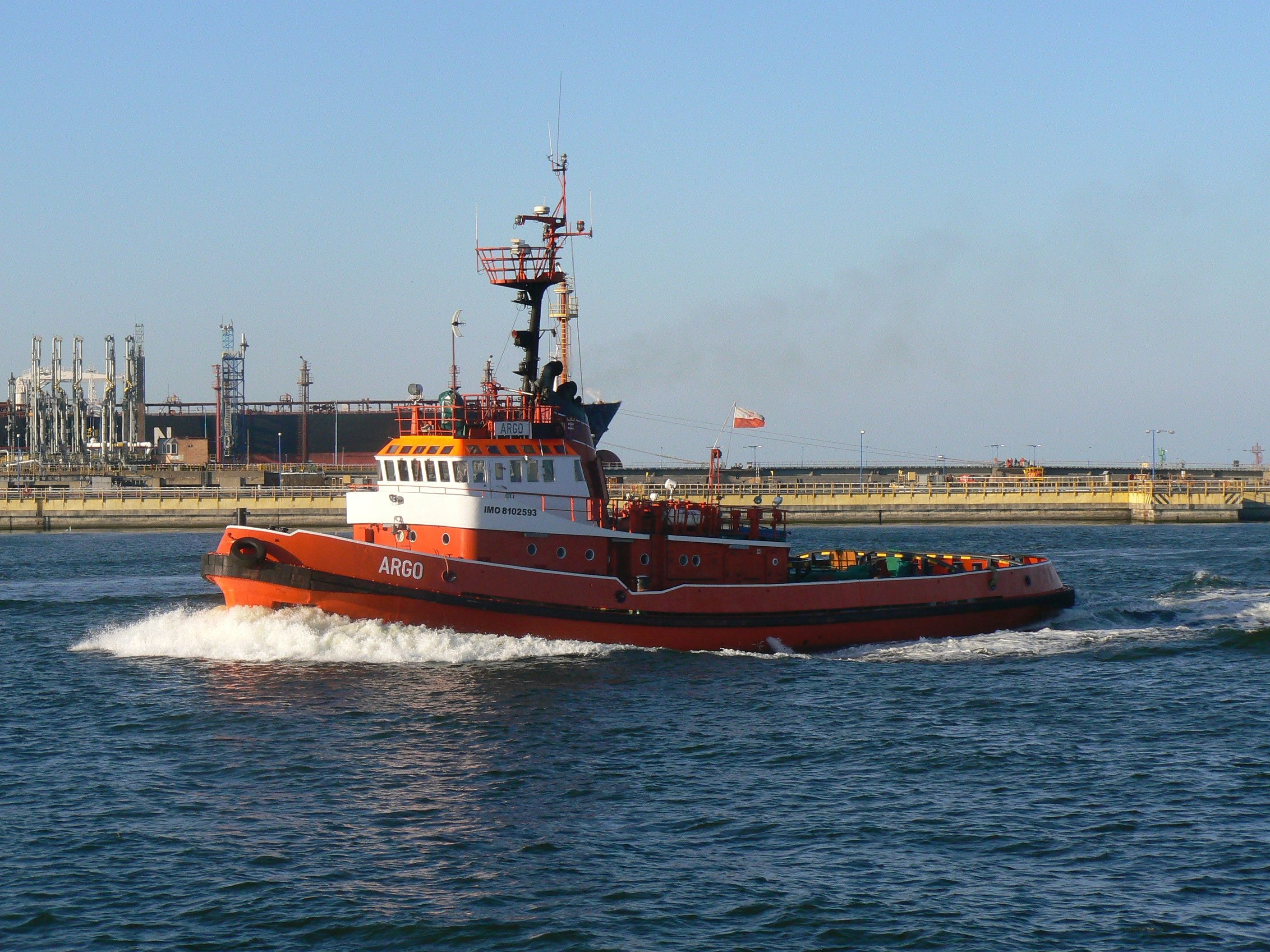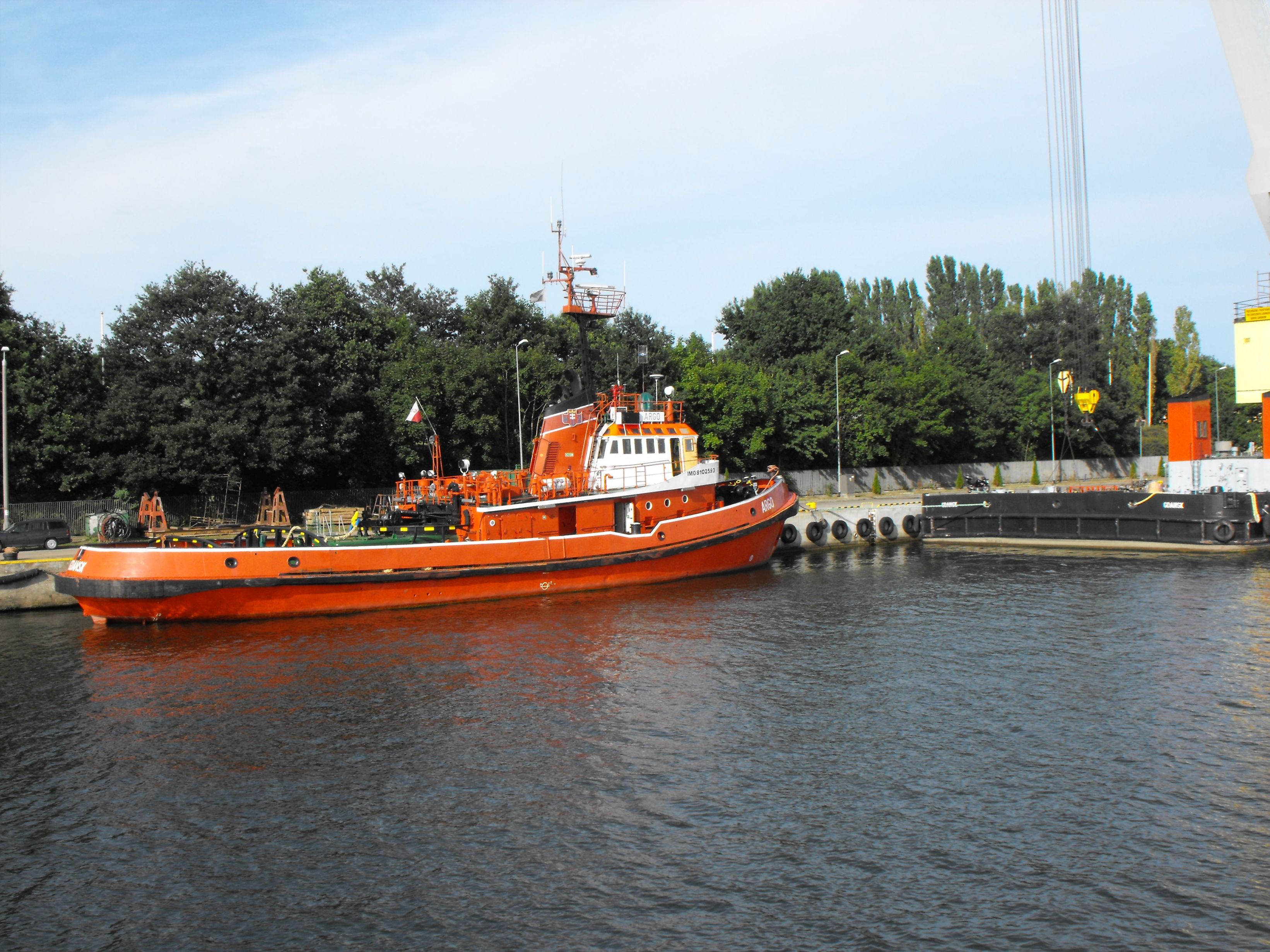 NASTĘPNE NAZWY: VARGO. TYP STATKU: holownik portowo-redowy typu H-2500. ROK I MIEJSCE BUDOWY: 03.1981, Stocznia Marynarki Wojennej im. Dąbrowszczaków w Gdyni. STOCZNIOWY NUMER BUDOWY: H2500/8. WYMIARY: długość całkowita 35,66 m, długość rejestrowa 32,70 m, szerokość 9,35 m, zanurzenie 4,11 m, wysokość boczna 5,05 m, pojemność brutto 331 GT, pojemność netto 99 NT, nośność 175,60 t. SILNIK GŁÓWNY: 1 silnik wysokoprężny typu FIAT B3012SS, 12-cylindrowy, moc 2502 KM/1840 kW, średnica cylindra 300 mm, skok tłoka 450 mm, liczba obrotów silnika 500/min., rok produkcji 1977, numer fabryczny 50, producent: Zakłady Przemysłu Maszynowego „H. Cegielski”, Poznań. INNE DANE: kadłub stalowy spawany o poprzecznym układzie wiązań, pokład stalowy, pędnik: 1 śruba nastawna, prędkość 13 węzłów, załoga 5-7 osób, uciąg na palu 30 T, pompa ratownicza 400 t/h, pompa pożarowa 100 t/h, działko wodno-pianowe, przenośna pompa ratownicza 70 t/h. ARMATOR: W.U.Ż. Port & Martime Services Ltd. sp. z o.o. w Gdańsku. PORT MACIERZYSTY: Gdańsk. NUMER REJESTRU OKRĘTOWEGO: ROG/S/779. NUMER IMO: 8102593. SYGNAŁ WYWOŁAWCZY: SQMC, MMSI 261000220. NUMER PRS: 210120.