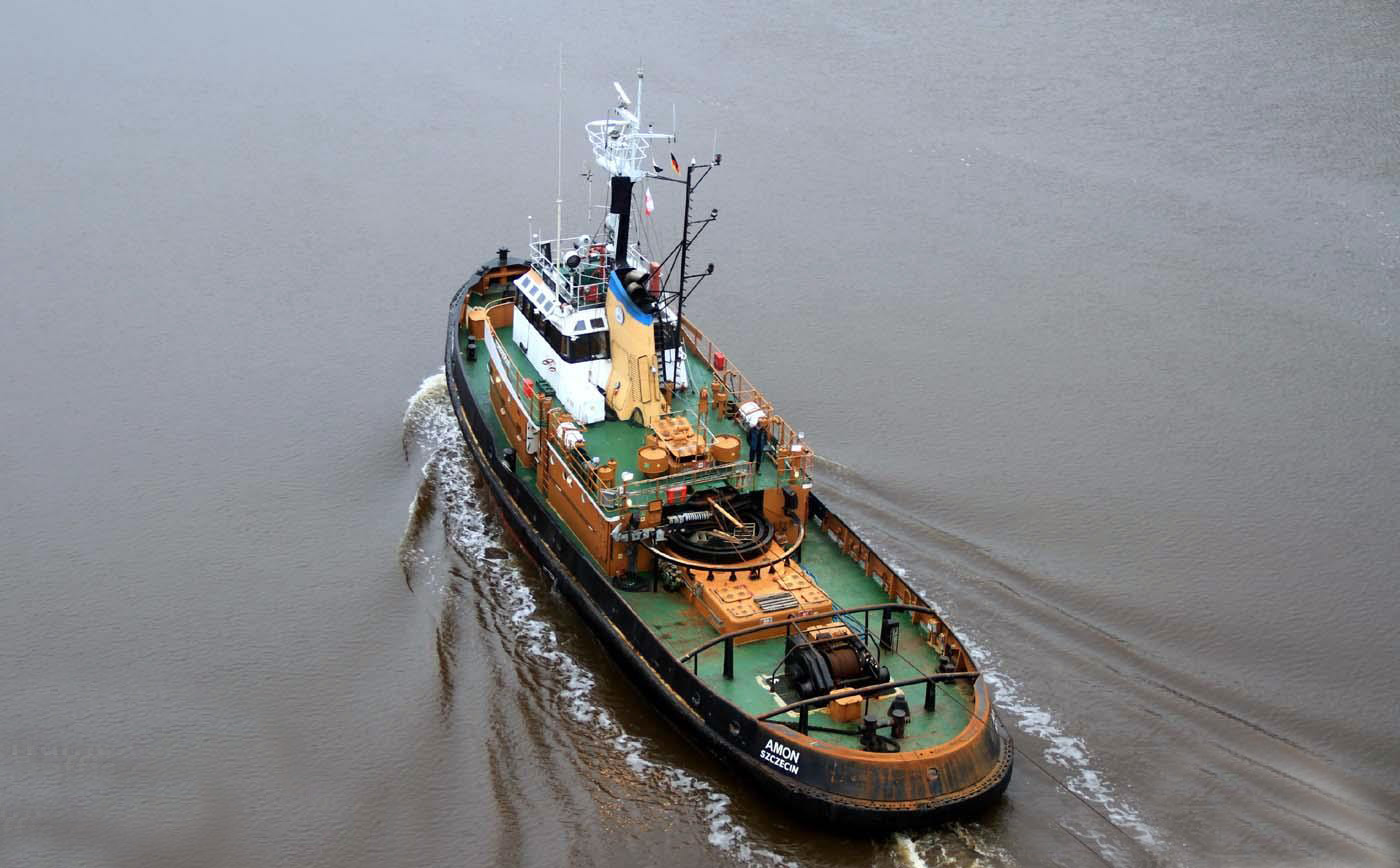 Dziewiąty z serii holowników typu H-2500 zaprojektowanych przez Biuro Projektowo-Technologiczne Morskich Stoczni Remontowych w Gdańsku. Nazwany „AMON”, wodowanie 25.04.1981, ukończenie i podniesienie bandery 31.01.1982, zasilił w 1982 r. flotę Zarządu Portu Szczecin. Mógł pracować zarówno w portach, na redach, jak i do holowań w rejonie Bałtyku i Morza Północnego. Od 1991 r. w Zakładzie Usług Żeglugowych Sp. z o o. w Szczecinie. W styczniu 2012 r. ZUŻ ogłosił upadłość i był w stanie likwidacji. W lipcu 2012 r. wykupiony przez firmę Otto Wulf GmbH, Cuxhaven-Rostock, która była armatorem „AMONA”. W 2020 r. sprzedany armatorowi zagranicznemu, nazwa zachowana, bandera Togo, port macierzysty Lomé, sygnał wywoławczy 5VIE2, MMSI 671296100. Ostanie informacje o nim pochodzą z 20.03.2023. Dalszy los nieznany. © Opracował Waldemar Danielewicz – 10.12.2025 |