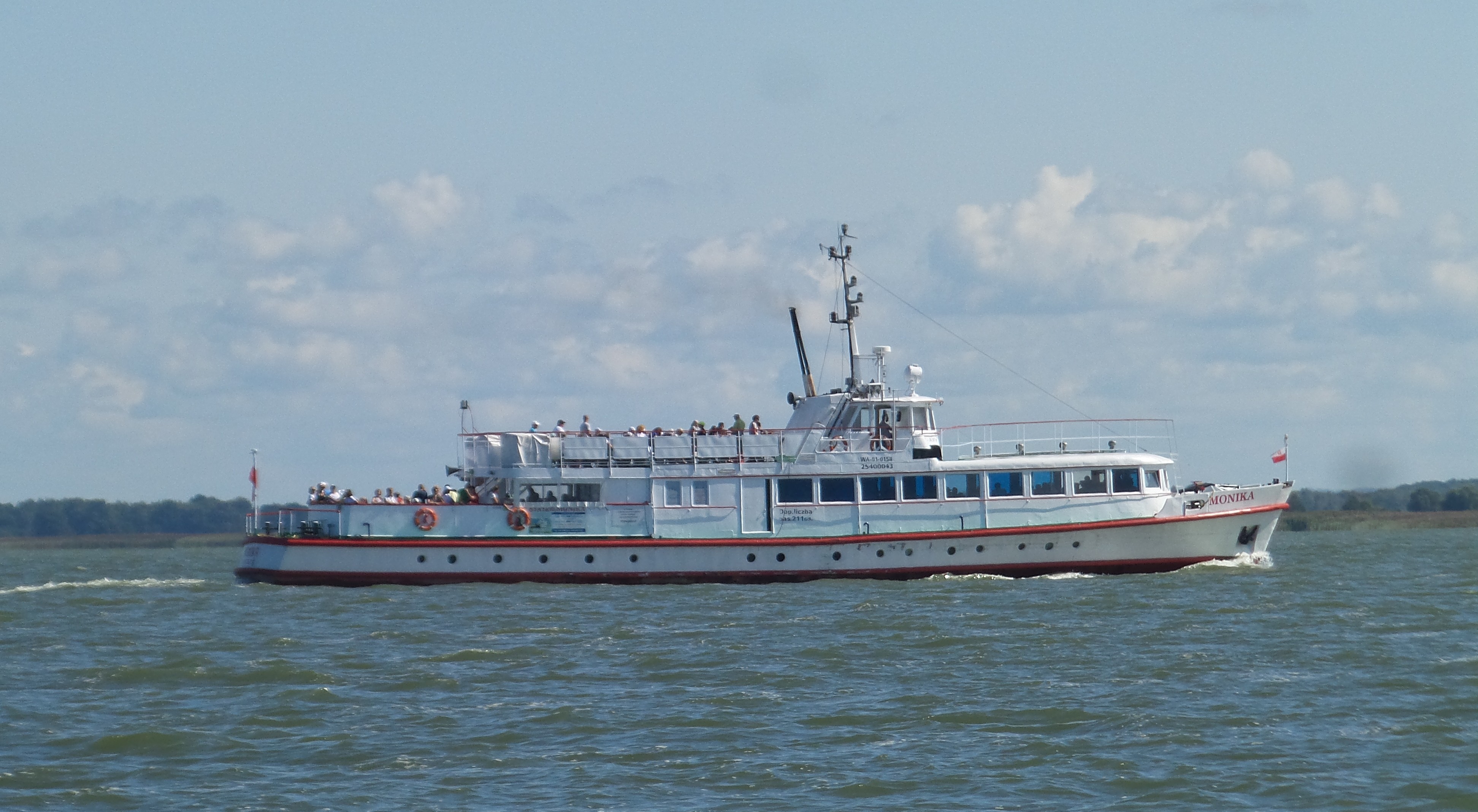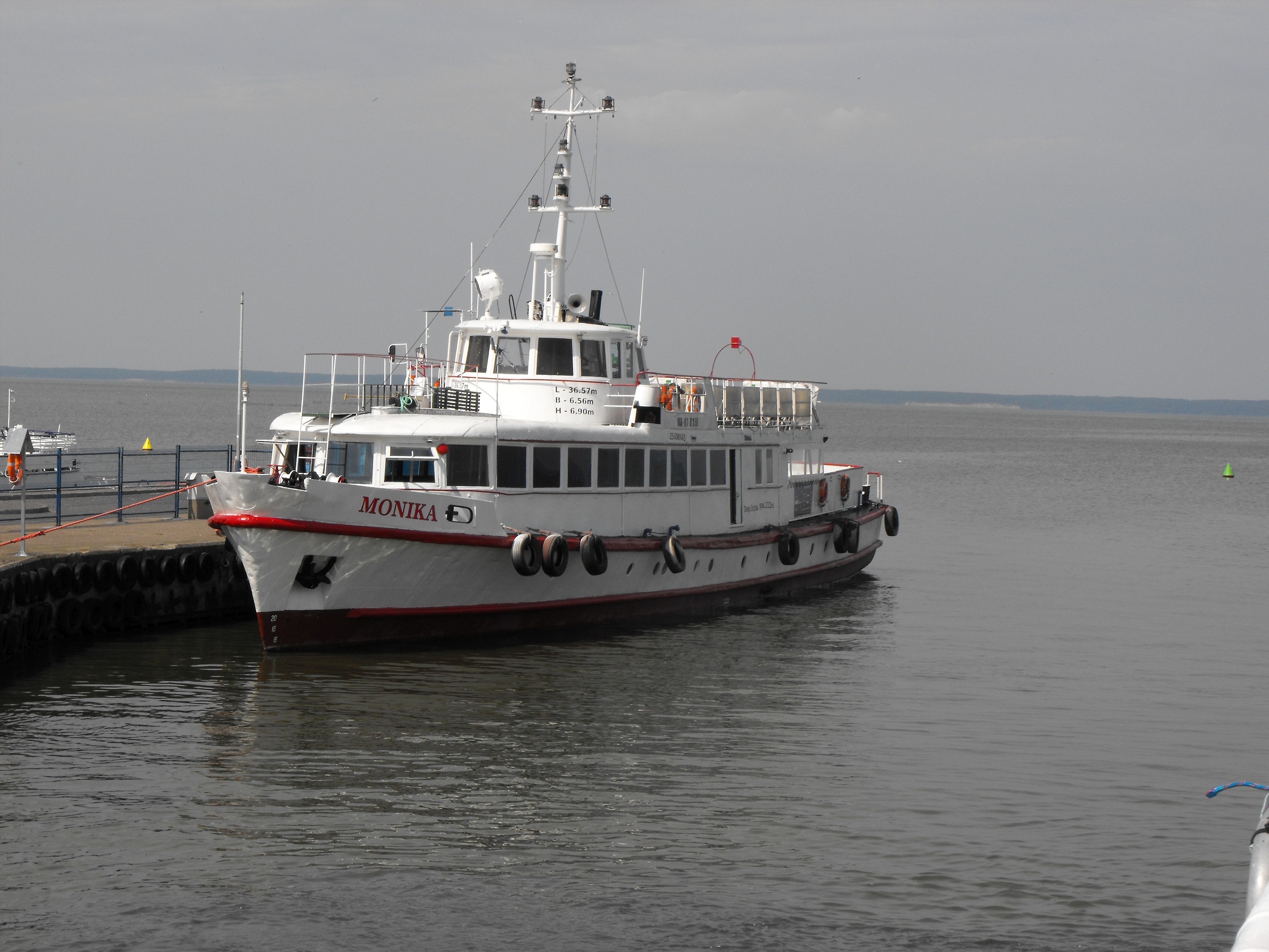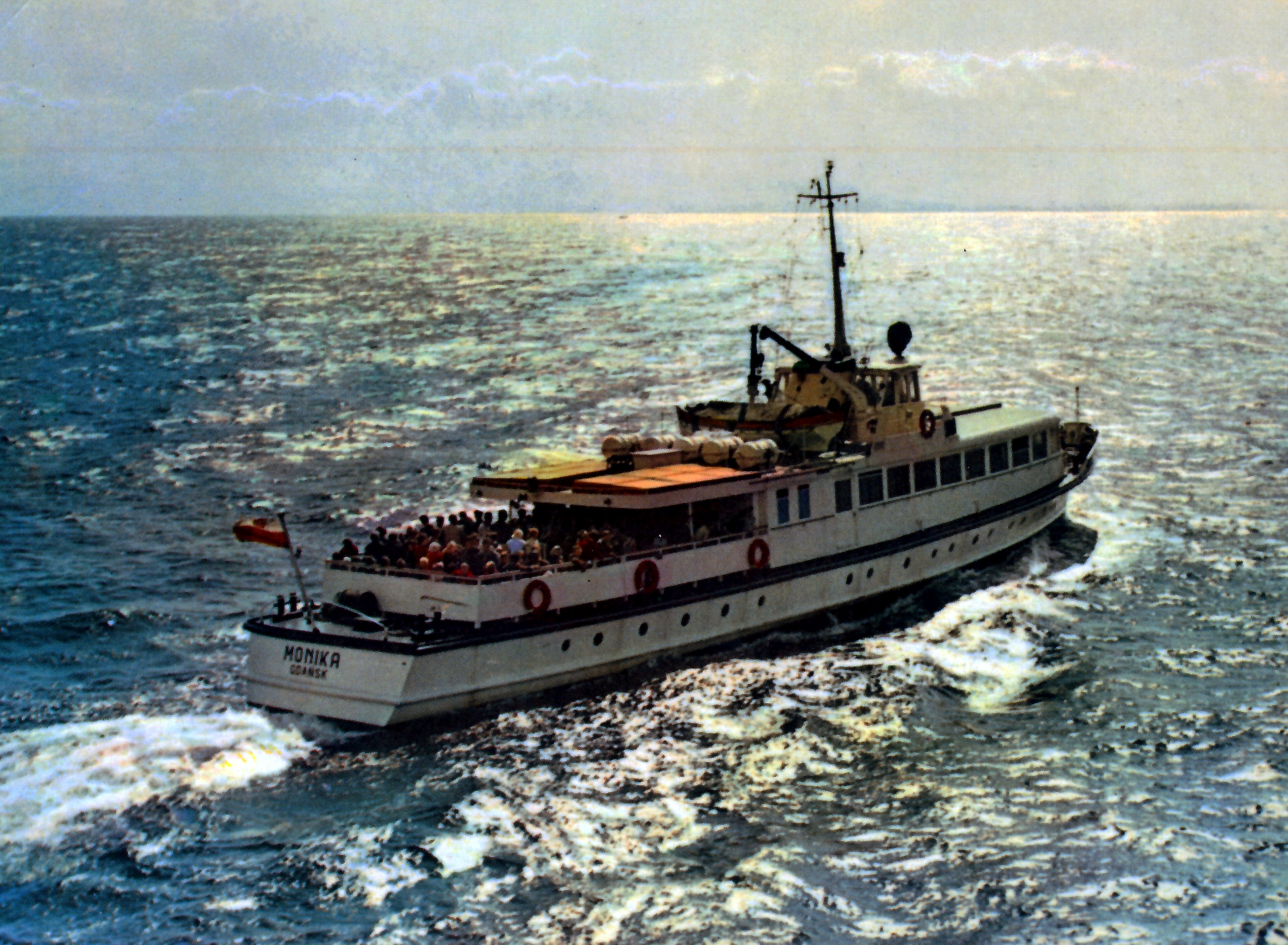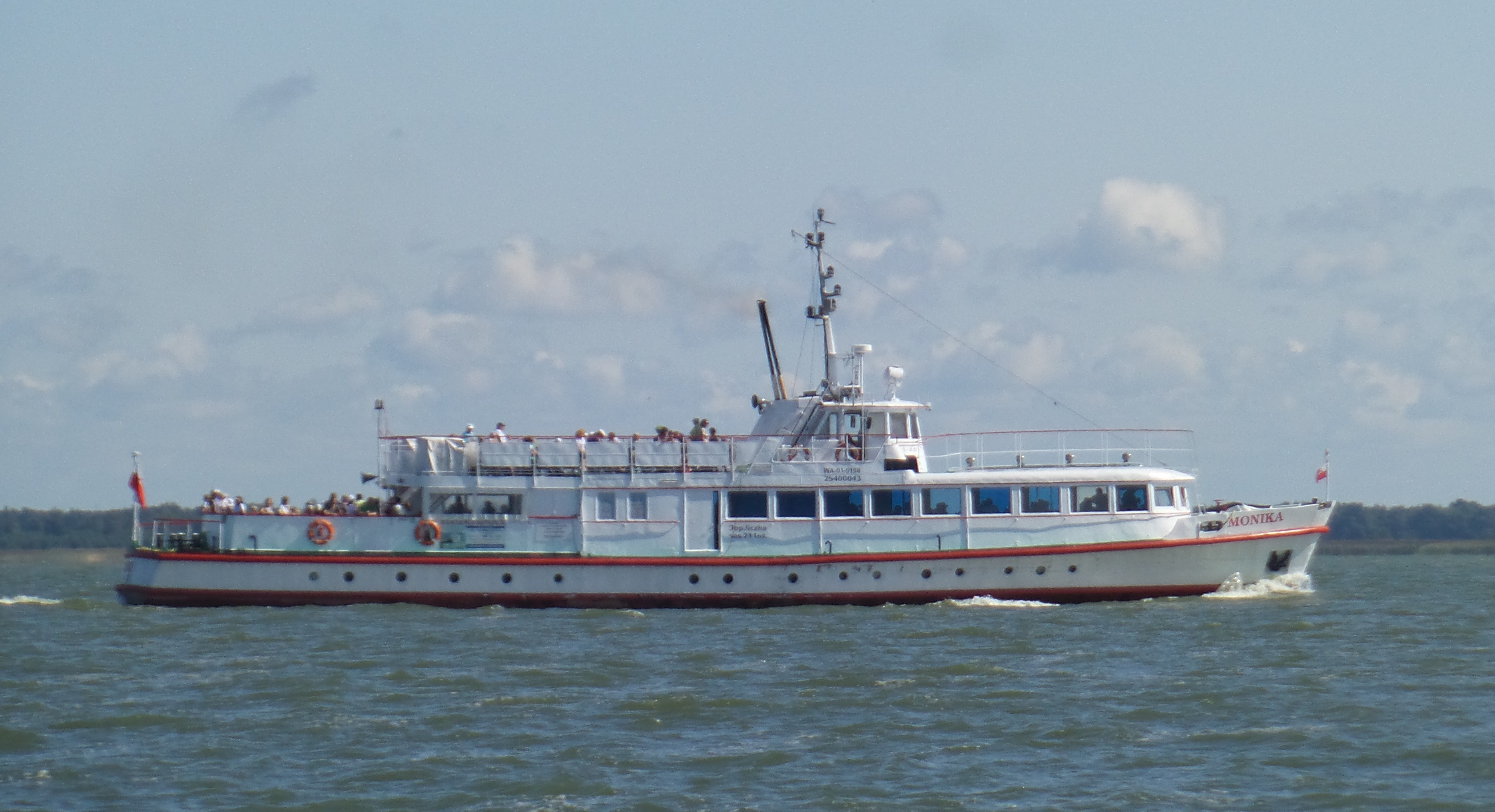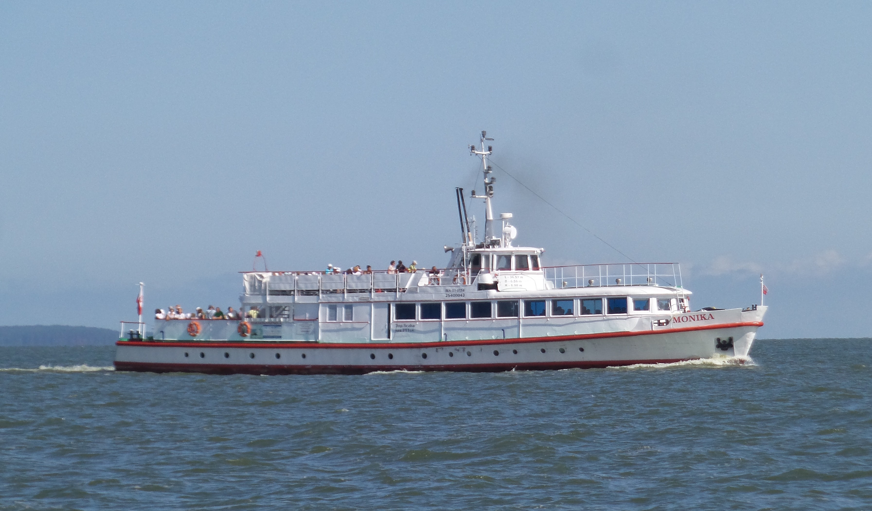 Projekt statku pasażerskiego zalewowego typu SZ-390 powstał w Biurze Projektów Taboru Morskiego w Gdańsku. Od budowanych wcześniej statków typu SZ-600 różni się on tylko mocą silników głównych. Zamontowano tu dwa silniki spalinowe wysokoprężne 4–suwowe typu 6L-160PNS produkcji CZMN Škoda, Praha o mocy 195 KM każdy przy 750 obrotach na minutę. Budowę prototypu i całej serii zlecono Gdańskiej Stoczni Rzecznej w Gdańsku. Statek przeznaczony był dla P.P. Żegluga Gdańska w Gdańsku, nazwany „MONIKA” na cześć Moniki Żeromskiej, córki pisarza Stefana Żeromskiego. Chrzest statku odbył się 15 lipca 1965 r. w Gdańsku, matką chrzestną została właśnie córka pisarza. Na pokład zabierał 243 pasażerów. Jego pojemność wynosiła 201 BRT. Eksploatowany na Zatoce Gdańskiej w oparciu o Gdańsk, Gdynię, Sopot i Hel. W 1993 r. „MONIKA” została wydzierżawiona Spółce Cywilnej „Wodnik” z Gdańska. Eksploatowana w oparciu o port gdyński. Rok później statek jest dzierżawiony przez Przedsiębiorstwo Usług Morskich Żegluga Ltd Sp. z o.o. w Gdańsku. Statek pływał na linii Gdańsk – Hel – Gdańsk. W lipcu 1996 r. wyżej wspomniana firma zostaje właścicielem statku. Natomiast od października 1996 r. właścicielem zostaje Przedsiębiorstwo Usług Morskich Żegluga Gdańska Ltd. Sp. z o.o. w Gdańsku. To tylko zabieg kosmetyczny ponieważ była to tylko zmiana nazwy armatora. W grudniu 1999 r. „MONIKA” zostaje sprzedana firmie Żegluga Pomorska Sp. z o.o. ze Szczecina. Portem macierzystym zostaje Nowe Warpno. Kadłub pomalowano na niebiesko, a sam statek po niewielkich adaptacjach był eksploatowany w rejsach wolnocłowych na trasie Altwarp – Nowe Warpno. W 2003 r. „MONIKA” zostaje sprzedana firmie P.P.H.U Orbita II Sławomir Głębocki i Sylwia Głębocka, Kołobrzeg. W 2004 r. rejsy wolnocłowe zostały zlikwidowane po wejściu Polski do Unii Europejskiej. Dwa lata później jednostkę skierowano na Zalew Wiślany w rejsach pasażerskich. Od 2009 r. właścicielem statku został firma P.H.U. Orbita z Siedlec, która rok później sprzedała „MONIKĘ” firmie Edukacja-Fracht-Budowa Partner Jerzy Kruczyński z Siedlec. Jednostka przeszła remont kapitalny, wymieniono sporą część poszycia kadłuba, utworzono drugi pokład słoneczny dla pasażerów umiejscowiony za sterówką. Pod pokładem głównym urządzono salon mogący służyć również jako sala konferencyjna dla 60 osób. Zmieniono także standard wyposażenia wnętrz. Przywrócono dawne malowanie kadłuba czyli biały zamiast niebieskiego. W 2013 r. „MONIKA” odbyła rejs czarterowy na linii Frombork – Svietłyj – Frombork. W 2017 r. kolejny remont kapitalny wynikły z odnowienia klasy PRS. Nadal w eksploatacji, stacjonuje we Fromborku. © Opracował Waldemar Danielewicz – 25.04.2025 |