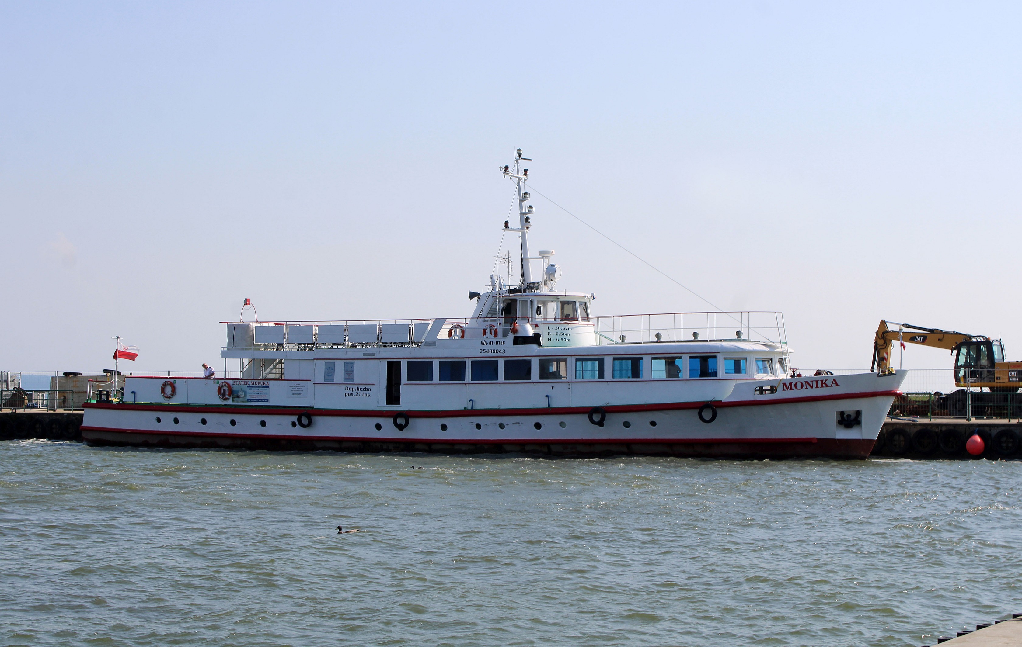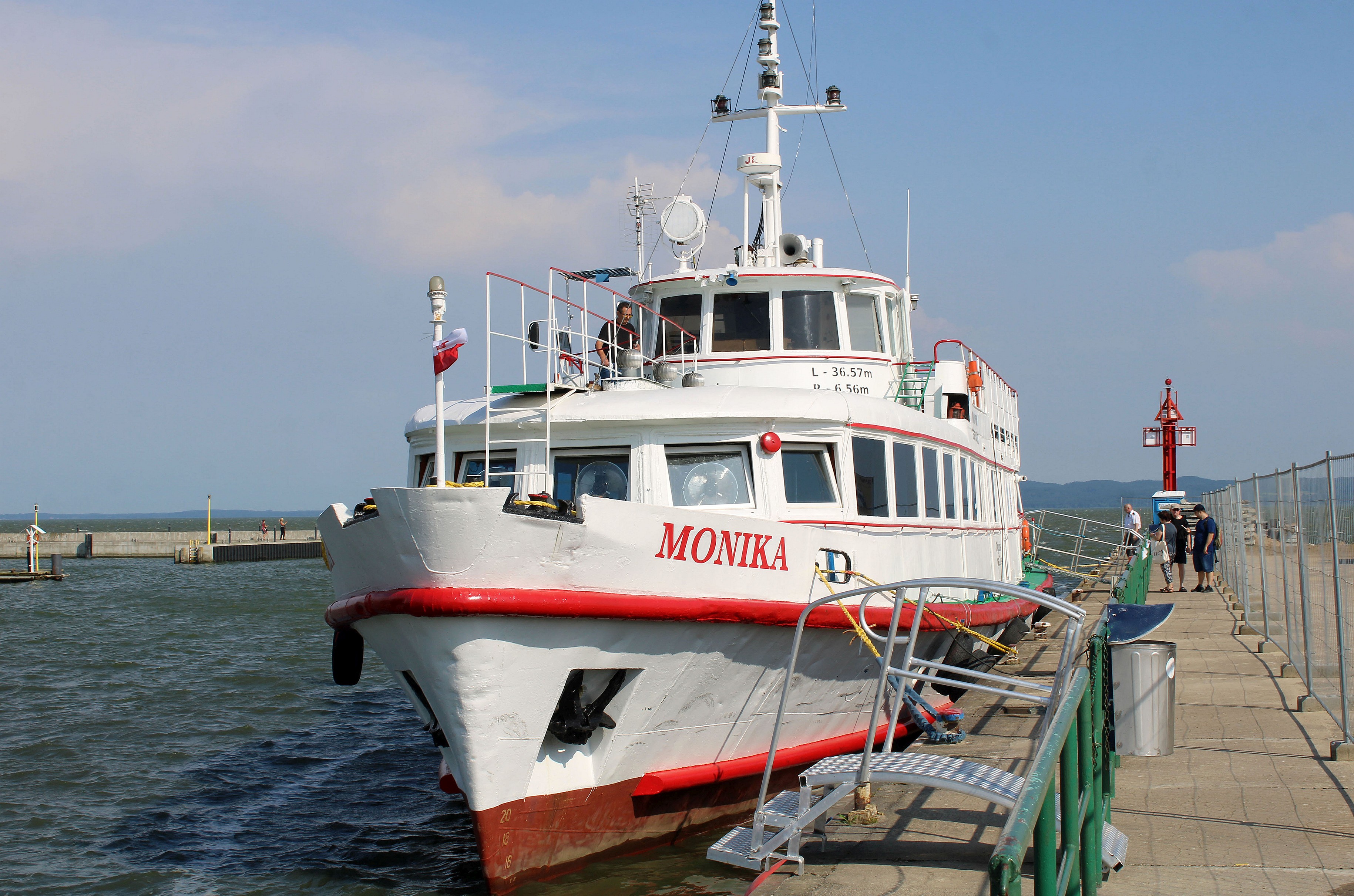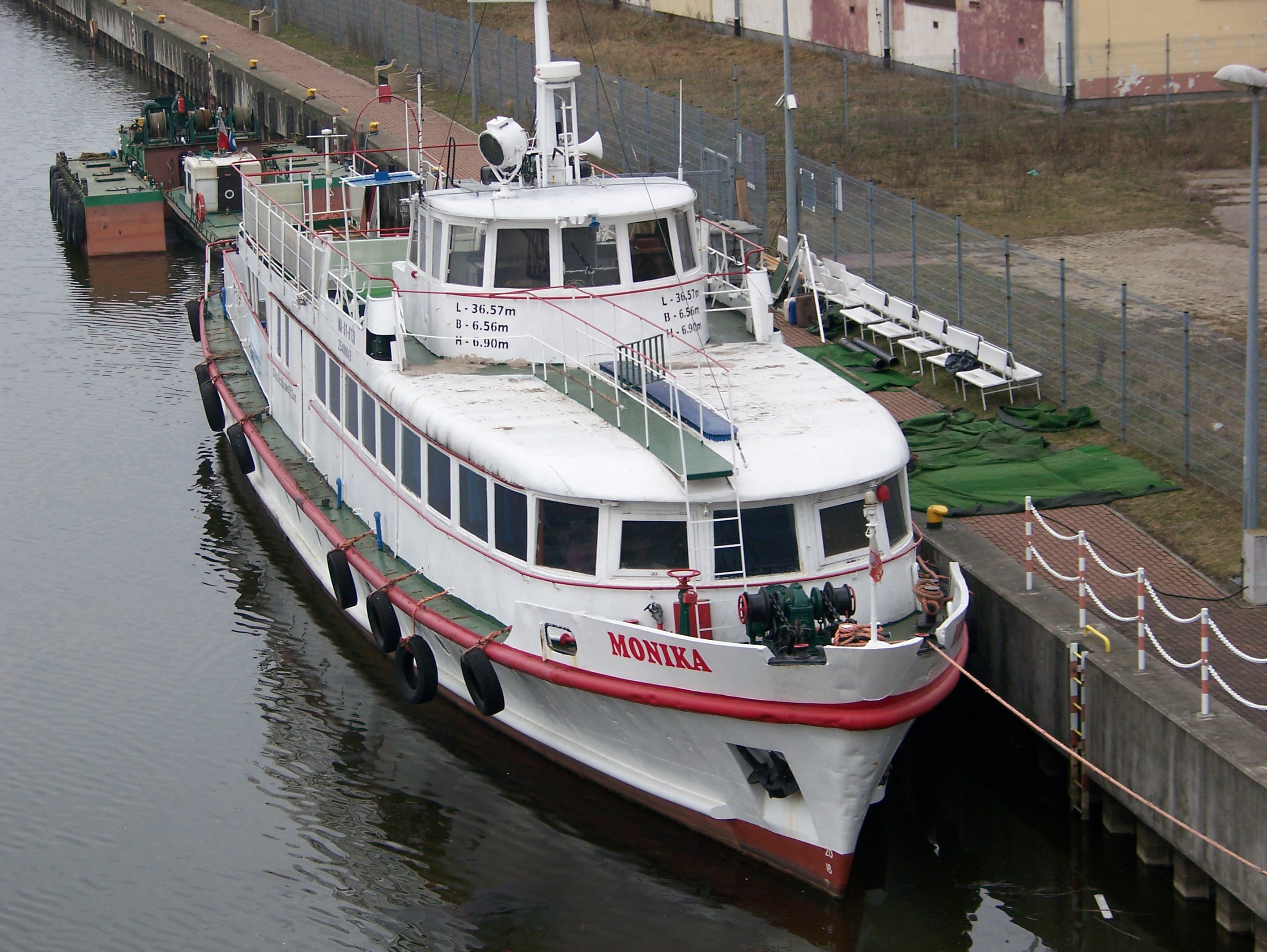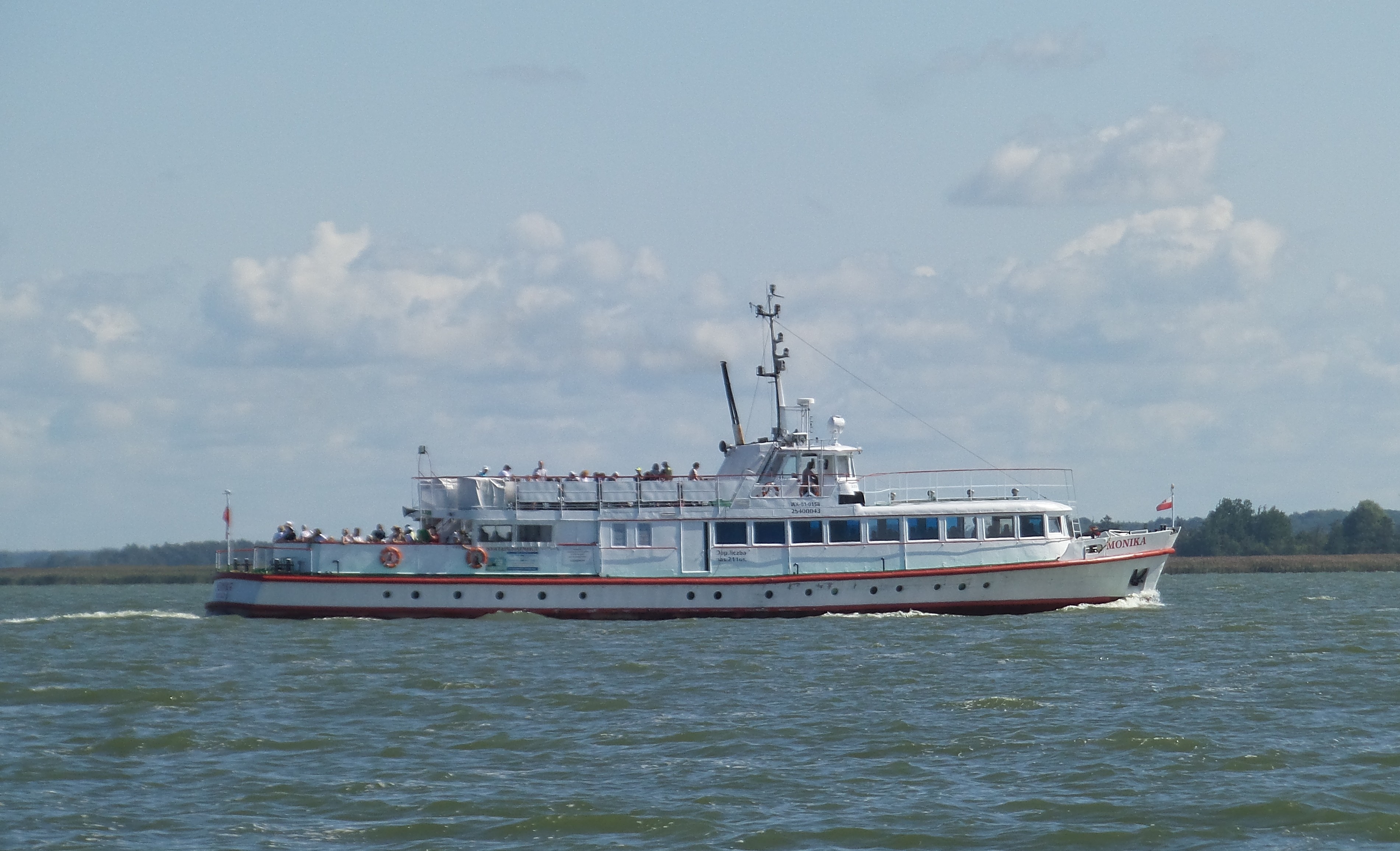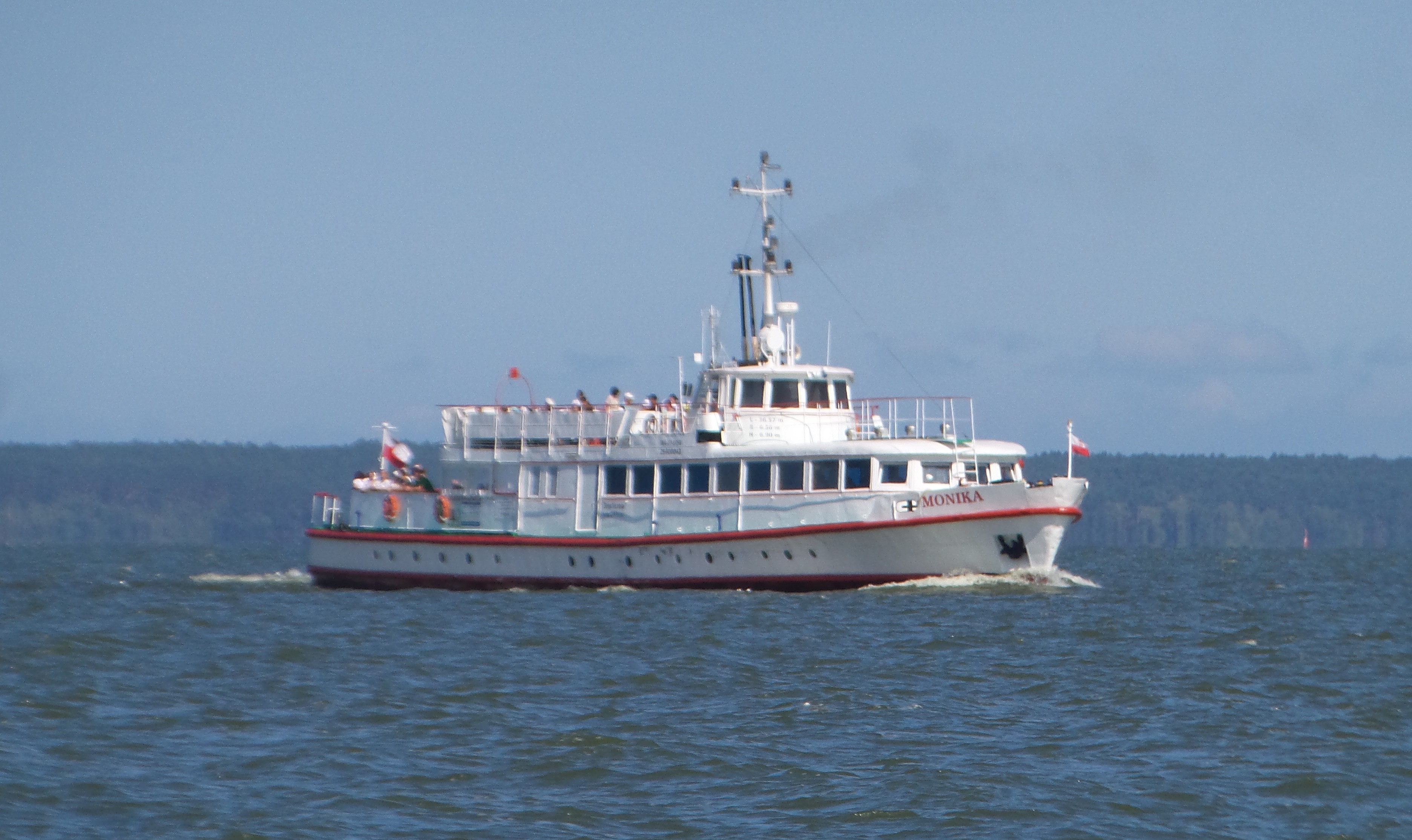 Projekt statku pasażerskiego zalewowego typu SZ-390 powstał w Biurze Projektów Taboru Morskiego w Gdańsku. Od budowanych wcześniej statków typu SZ-600 różni się on tylko mocą silników głównych. Zamontowano tu dwa silniki spalinowe wysokoprężne 4–suwowe typu 6L-160PNS produkcji CZMN Škoda, Praha o mocy 195 KM każdy przy 750 obrotach na minutę. Budowę prototypu i całej serii zlecono Gdańskiej Stoczni Rzecznej w Gdańsku. Statek przeznaczony był dla P.P. Żegluga Gdańska w Gdańsku, nazwany „MONIKA” na cześć Moniki Żeromskiej, córki pisarza Stefana Żeromskiego. Chrzest statku odbył się 15 lipca 1965 r. w Gdańsku, matką chrzestną została właśnie córka pisarza. Na pokład zabierał 243 pasażerów. Jego pojemność wynosiła 201 BRT. Eksploatowany na Zatoce Gdańskiej w oparciu o Gdańsk, Gdynię, Sopot i Hel. W 1993 r. „MONIKA” została wydzierżawiona Spółce Cywilnej „Wodnik” z Gdańska. Eksploatowana w oparciu o port gdyński. Rok później statek jest dzierżawiony przez Przedsiębiorstwo Usług Morskich Żegluga Ltd Sp. z o.o. w Gdańsku. Statek pływał na linii Gdańsk – Hel – Gdańsk. W lipcu 1996 r. wyżej wspomniana firma zostaje właścicielem statku. Natomiast od października 1996 r. właścicielem zostaje Przedsiębiorstwo Usług Morskich Żegluga Gdańska Ltd. Sp. z o.o. w Gdańsku. To tylko zabieg kosmetyczny ponieważ była to tylko zmiana nazwy armatora. W grudniu 1999 r. „MONIKA” zostaje sprzedana firmie Żegluga Pomorska Sp. z o.o. ze Szczecina. Portem macierzystym zostaje Nowe Warpno. Kadłub pomalowano na niebiesko, a sam statek po niewielkich adaptacjach był eksploatowany w rejsach wolnocłowych na trasie Altwarp – Nowe Warpno. W 2003 r. „MONIKA” zostaje sprzedana firmie P.P.H.U Orbita II Sławomir Głębocki i Sylwia Głębocka, Kołobrzeg. W 2004 r. rejsy wolnocłowe zostały zlikwidowane po wejściu Polski do Unii Europejskiej. Dwa lata później jednostkę skierowano na Zalew Wiślany w rejsach pasażerskich. Od 2009 r. właścicielem statku został firma P.H.U. Orbita z Siedlec, która rok później sprzedała „MONIKĘ” firmie Edukacja-Fracht-Budowa Partner Jerzy Kruczyński z Siedlec. Jednostka przeszła remont kapitalny, wymieniono sporą część poszycia kadłuba, utworzono drugi pokład słoneczny dla pasażerów umiejscowiony za sterówką. Pod pokładem głównym urządzono salon mogący służyć również jako sala konferencyjna dla 60 osób. Zmieniono także standard wyposażenia wnętrz. Przywrócono dawne malowanie kadłuba czyli biały zamiast niebieskiego. W 2013 r. „MONIKA” odbyła rejs czarterowy na linii Frombork – Svietłyj – Frombork. W 2017 r. kolejny remont kapitalny wynikły z odnowienia klasy PRS. Nadal w eksploatacji, stacjonuje we Fromborku. © Opracował Waldemar Danielewicz – 25.04.2025 |