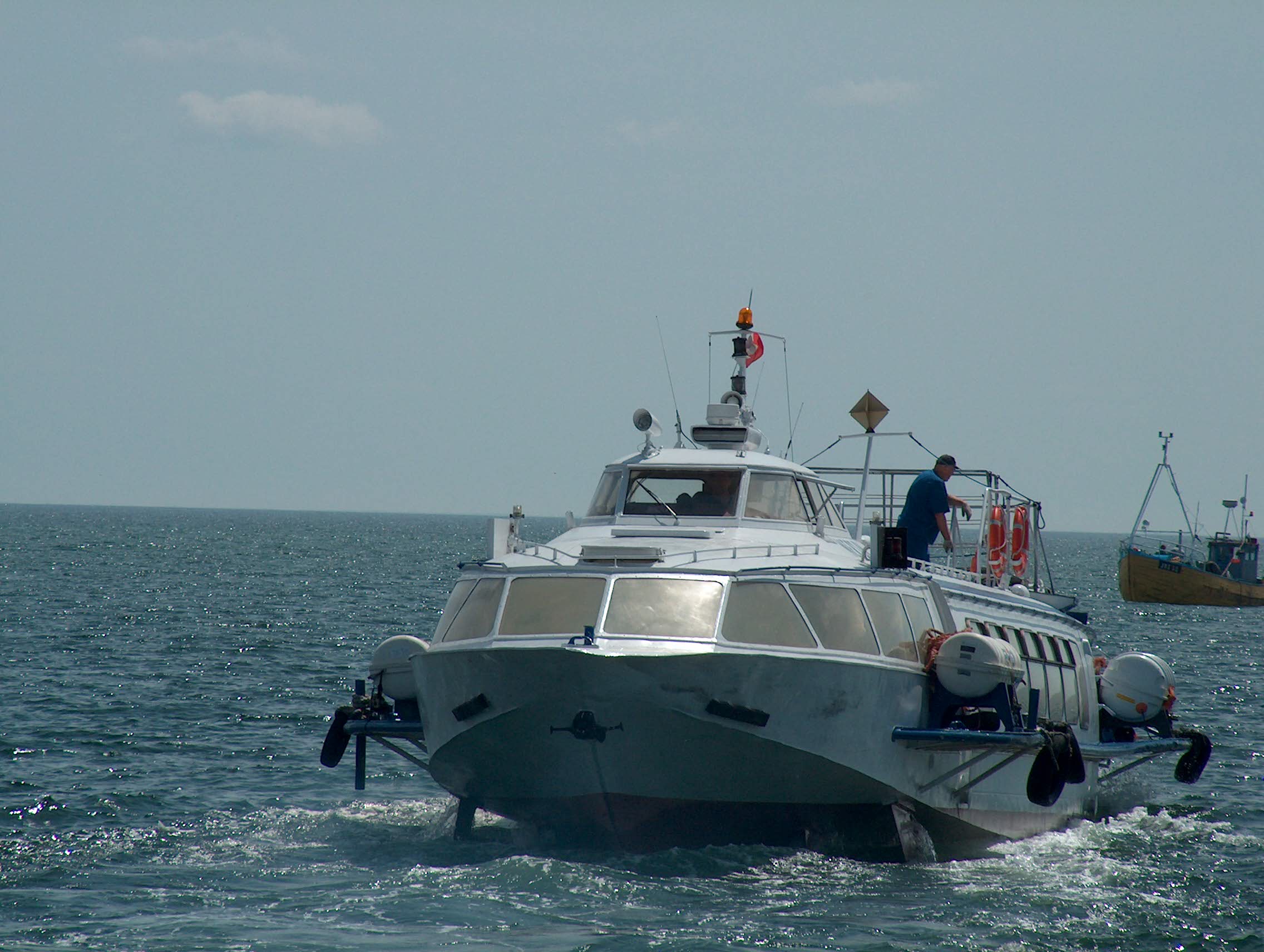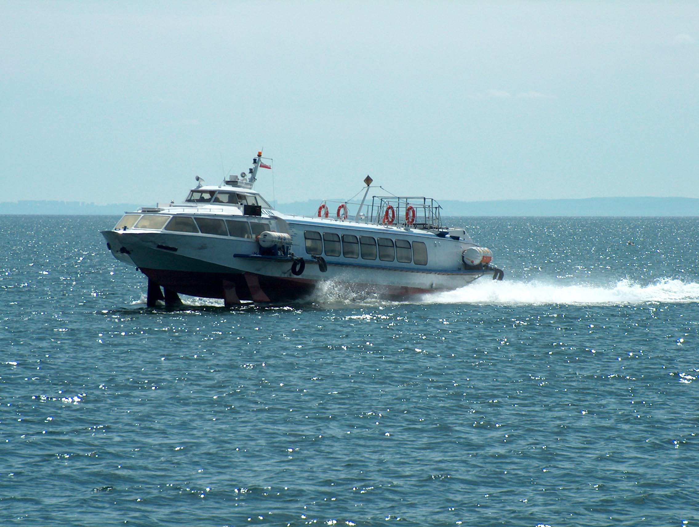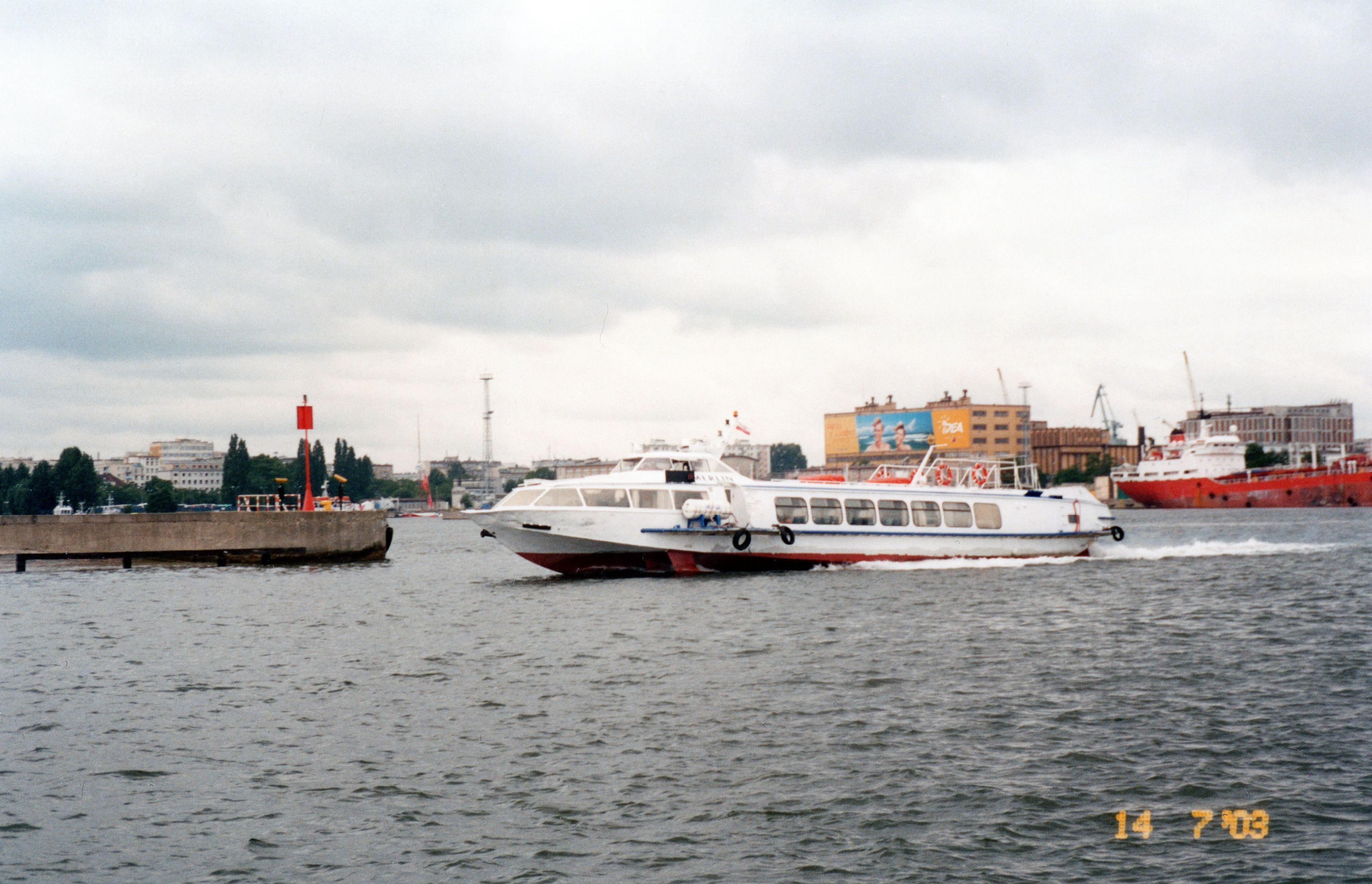 Wodolot pasażerski zaprojektowany w ówczesnym Związku Radzieckim, projekt 352. Określany jako typ Woschod. Zbudowany w 1990 r. jako „WOSCHOD-70” dla Zapadnoye Parochodstwo, Sowietsk. W 1998 r. trafił do Polski za sprawą firmy Polsteam Żegluga Szczecińska w Szczecinie, nazwany „BRYZA-I”. Rok później zakupiony przez Żeglugę Gdyńską Q-Wings Sp. z o.o. w Gdyni, nazwany „MERLIN”. Port macierzysty Gdynia, w 2002 r. zmieniony na Sopot. W 2005 r. sprzedany Żegludze Gdańskiej Sp. z o.o. w Gdańsku. Eksploatowany bez zmiany nazwy. Wycofany około 2011 r. Kadłub nadal na lądzie w Bazie Remontowej Żeglugi Gdańskiej w Gdańsku-Stogach. © Opracował Waldemar Danielewicz – 24.10.2025/28.03.2026 |