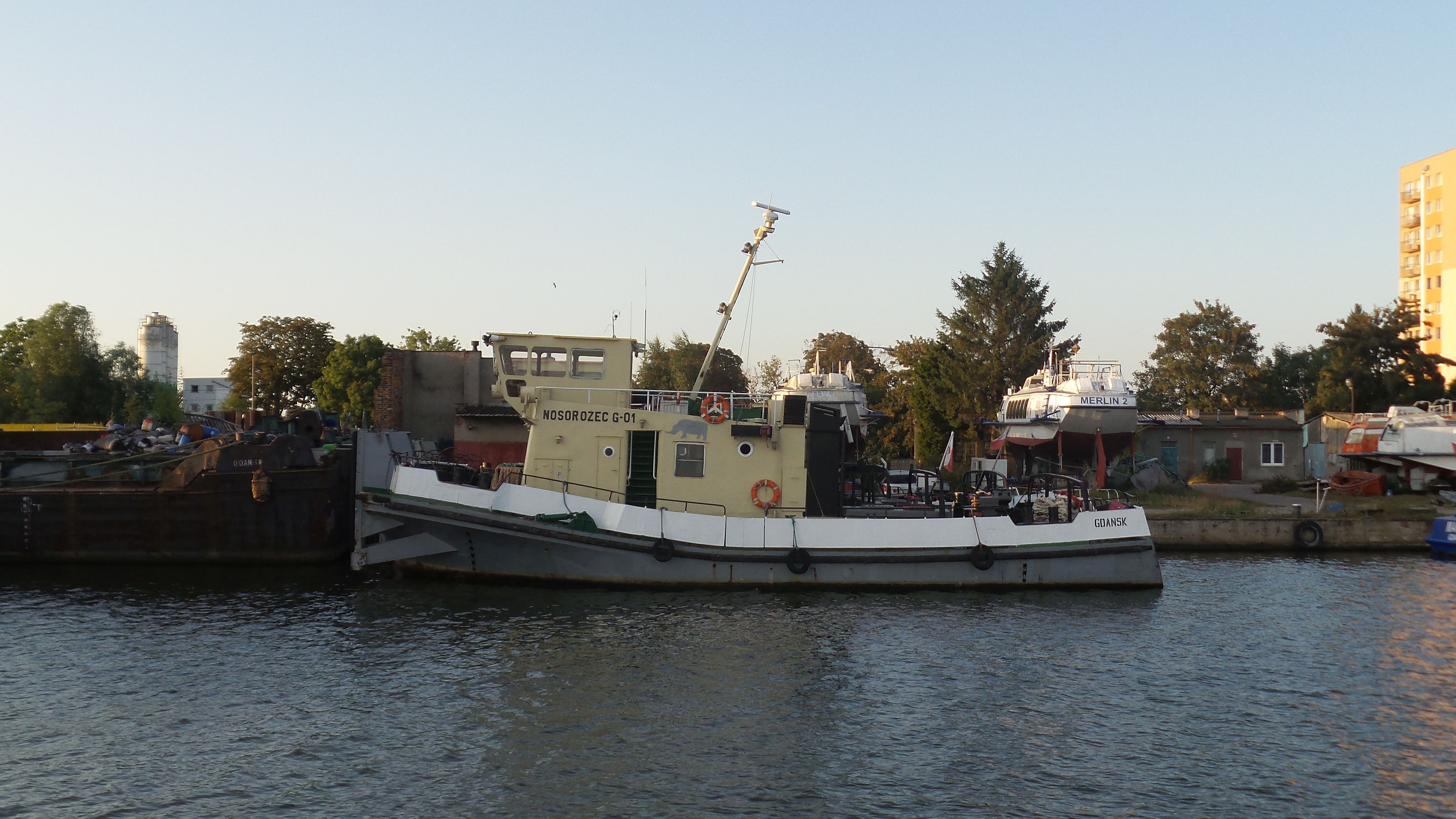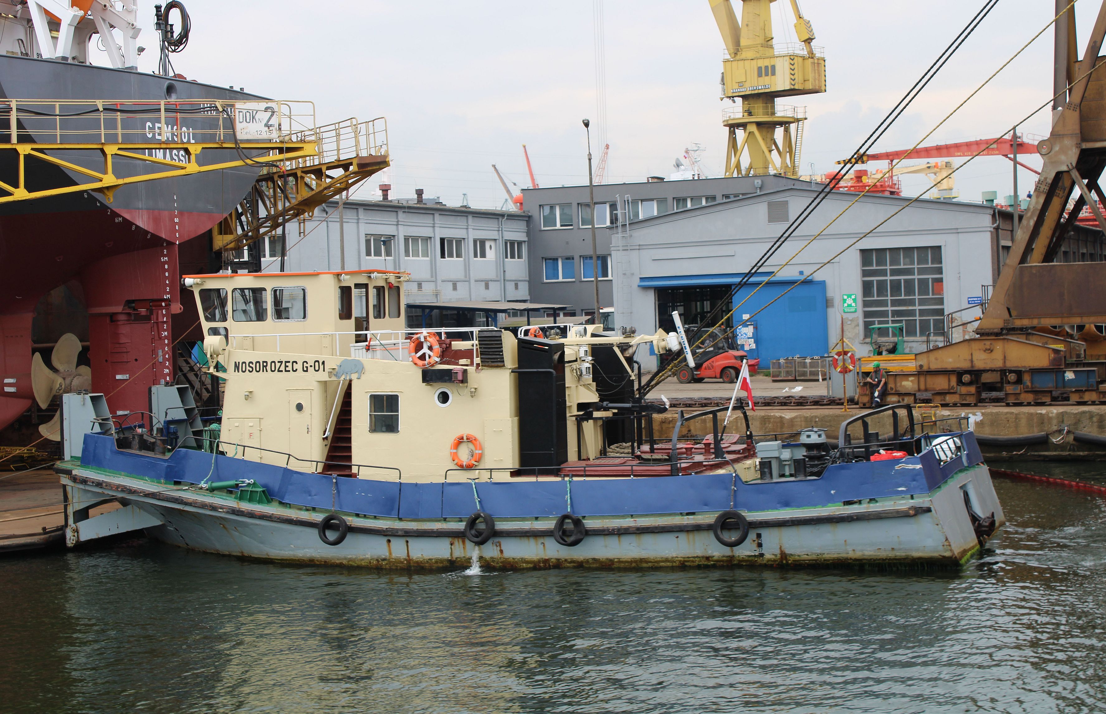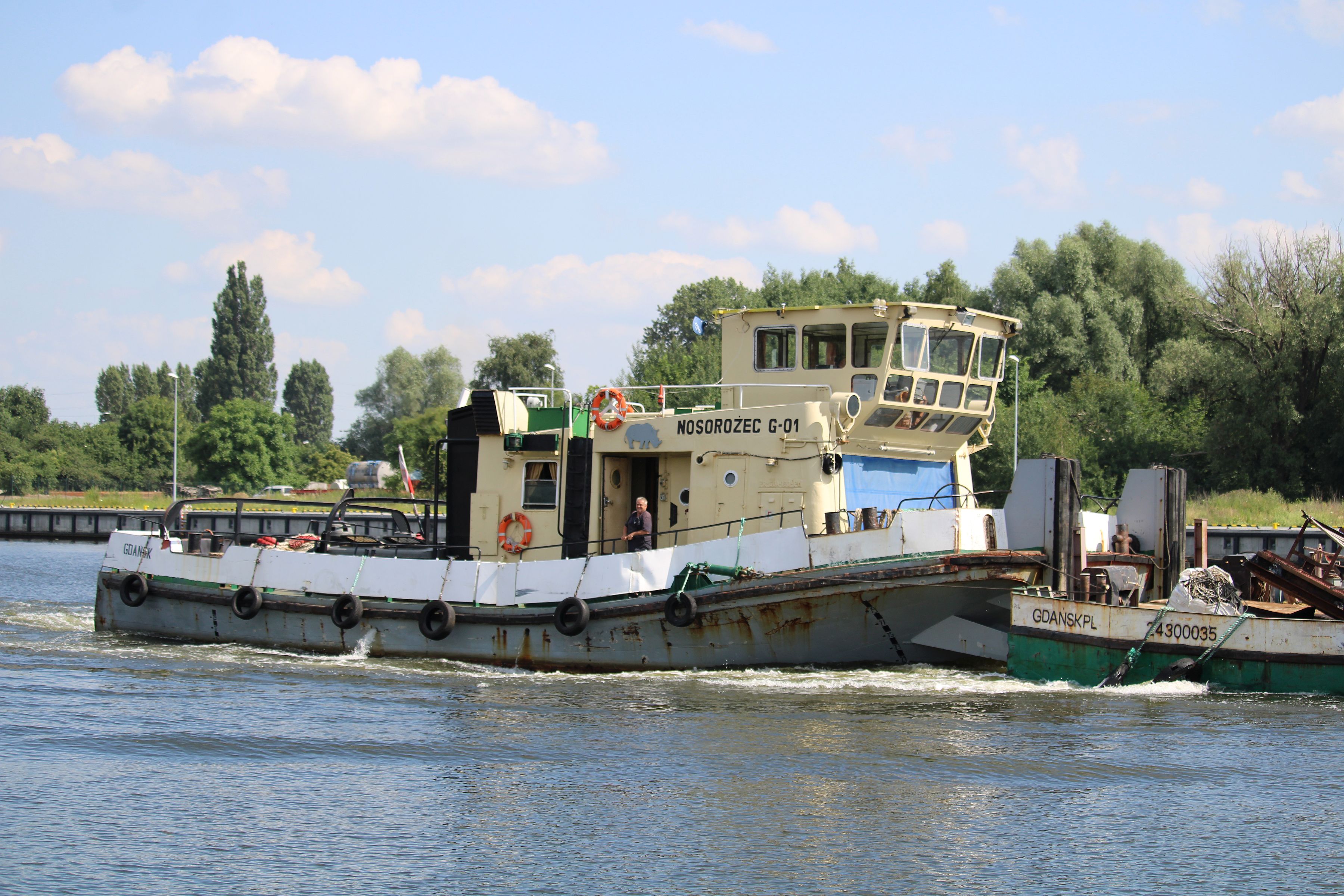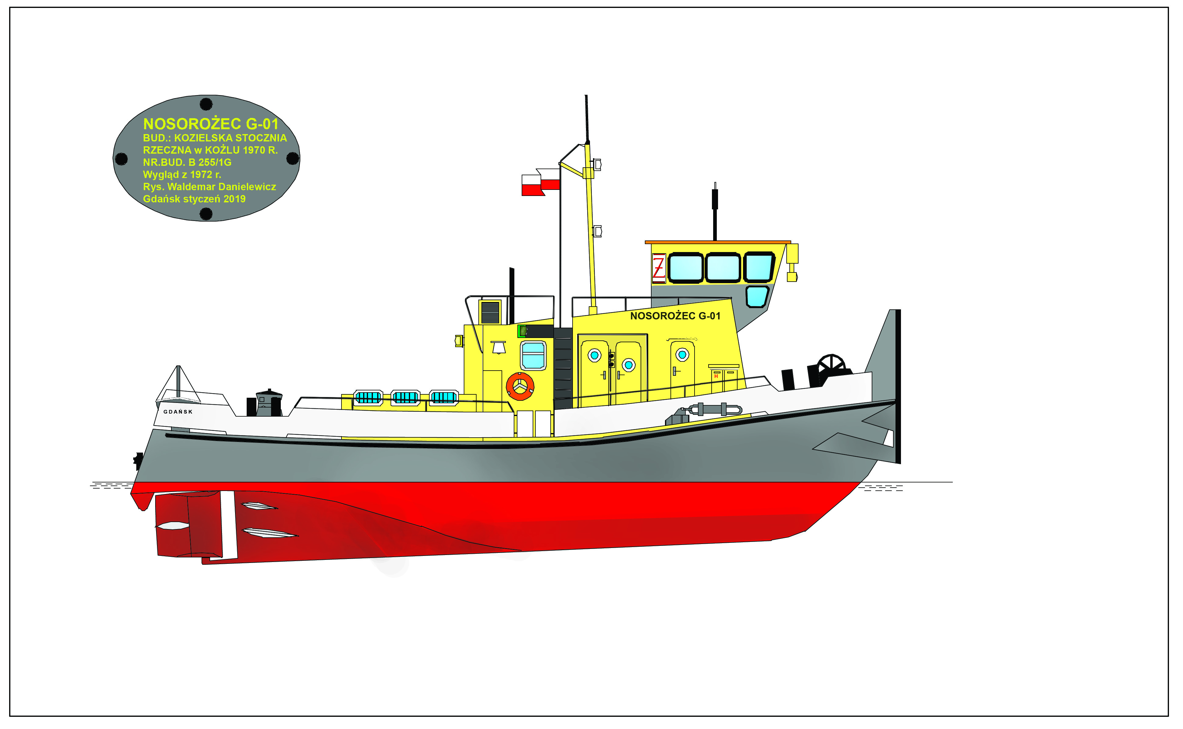 Ten typ pchacza powstał głównie na wody zalewów, portów i odcinków ujściowych naszych rzek. Ponieważ warunki meteorologiczne i hydrologiczne zalewów morskich różnią się znacznie od istniejących na rzekach ten typ pchacza musiał spełniać szereg warunków jak: praca przy dużej fali, we mgle i zalodzeniu. Jednak inspiracją opracowanej w 1968 roku w Biurze Projektów i Studiów Taboru Rzecznego we Wrocławiu dokumentacji były nowo powstałe Zakłady Chemiczne w Policach i Zakłady Nawozów Fosforowych w Gdańsku. Zostały one umiejscowione celowo nad wodą z dwóch powodów. Pierwszy to możliwość bezpośredniego załadunku na linii statek – zakład oraz rozładunek komponentów potrzebnych do produkcji i drugi – wywóz z terenu zakładu na wysypiska odpadów powstających przy produkcji nawozów. W wypadku Polic transport miał się odbywać na linii Police – Świnoujście przez Zalew Szczeciński, a w przypadku Gdańska do Wiślinki po Martwej Wiśle. Ponieważ na obydwu akwenach panują różne warunki nawigacyjne opracowano dwa projekty tych pchaczy oznaczonych Nosorożec „G” dla Gdańska i Nosorożec „S” dla Szczecina. W założeniach pchacze miały być eksploatowane z barkami typu BPF-1000 o ładowności 1000 t w układzie pchacz + barka w Gdańsku i pchacz + 2 barki w Szczecinie. Na tego typu pchaczach zastosowano inne kształty kadłuba pchacza i barek, nowe układy napędowo-sterowe i inne urządzenia sczepiające pchacz z barką, ponadto kadłub otrzymał wzmocnienia lodowe. Autorami projektu byli: W. Zbilut, J. Stanisławski, Z. Majcher, S. Witkowski i S. Kaczyński dla typu „G” i W. Zbilut, B. Tomaszewski, W. Piątek J. Stanisławski, Z. Majcher, S. Witkowski, J. Wadowski i S. Kaczyński dla typu „S”. Budowę pierwszego pchacza oznaczonego symbolem budowy B255/1G zlecono Kozielskiej Stoczni Rzecznej w Koźlu. Kadłub natomiast wykonał Oddział stoczni w Dobrzeniu, został on zakończony w 1969 r. Jego armatorem zostało P.P. Żegluga Gdańska w Gdańsku, której powierzono obsługę kombinatu chemicznego w Gdańsku. Początkowo zestawy miały eksploatować Gdańskie Zakłady Nawozów Fosforowych, jednak po ustaleniach na szczeblu ministerialnym zapadła decyzja, że powierzy się to armatorom wyspecjalizowanym w przewozu ładunków. W 1971 r. P.P. Żegluga Gdańska w Gdańsku wprowadziła pchacz „NOSOROŻEC G-01” do eksploatacji na trasie Gdańsk Zakłady Nawozów Fosforowych – Gdańsk Wiślinka wysypisko odpadów. Wykorzystywany był także w usługach holowniczych, głównie dla stoczni np. przy wprowadzaniu statków na dok pływający. Z dniem 1 sierpnia 1996 roku pchacz „NOSOROŻEC G-01” po likwidacji P.P. Żegluga Gdańska przejęło Przedsiębiorstwo Usług Morskich „Żegluga Ltd” Sp. z o.o. w Gdańsku. Eksploatacja pozostała bez zmian. W październiku 1996 r. firma zmieniła nazwę na P.U.M. Żegluga Gdańska Ltd. Sp. z o.o., a cztery lata później na skutek podziału firmy wszedł w skład nowo utworzonej Żegluga HTŚ Sp. z o.o. w Gdańsku. Po przejściu na produkcję bezodpadową przez GZNF pchacz wykorzystywany jest przy różnego rodzaju usługach holowniczo/pchanych np. przez stocznie czy inne firmy. W 2018 r. dokonano wymiany silników oraz przeprowadzono remont kapitalny. Nadal w eksploatacji. © Opracował Waldemar Danielewicz – 27.02.2024/30.03.2026 |