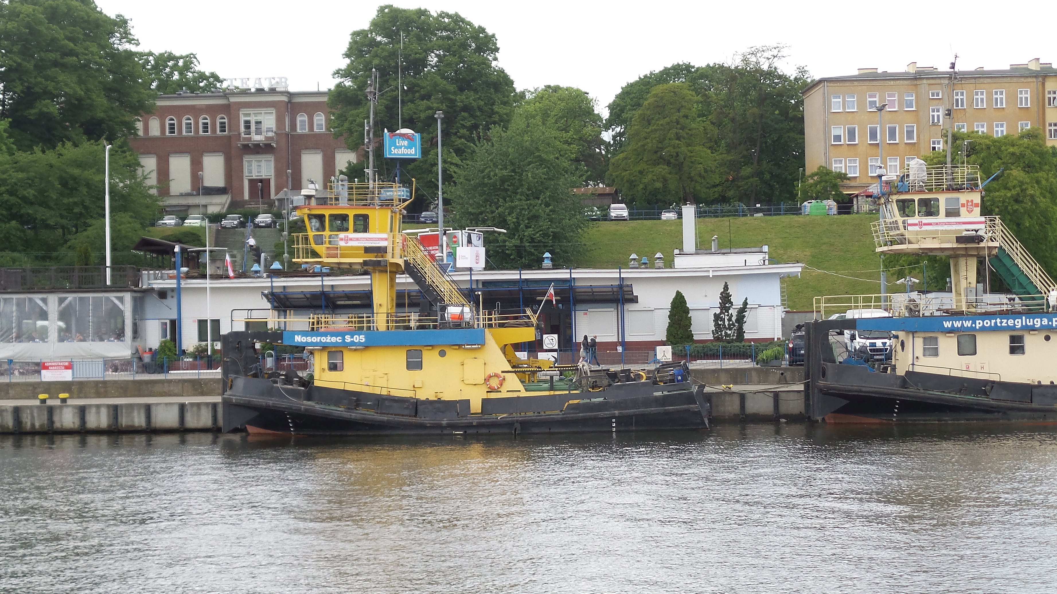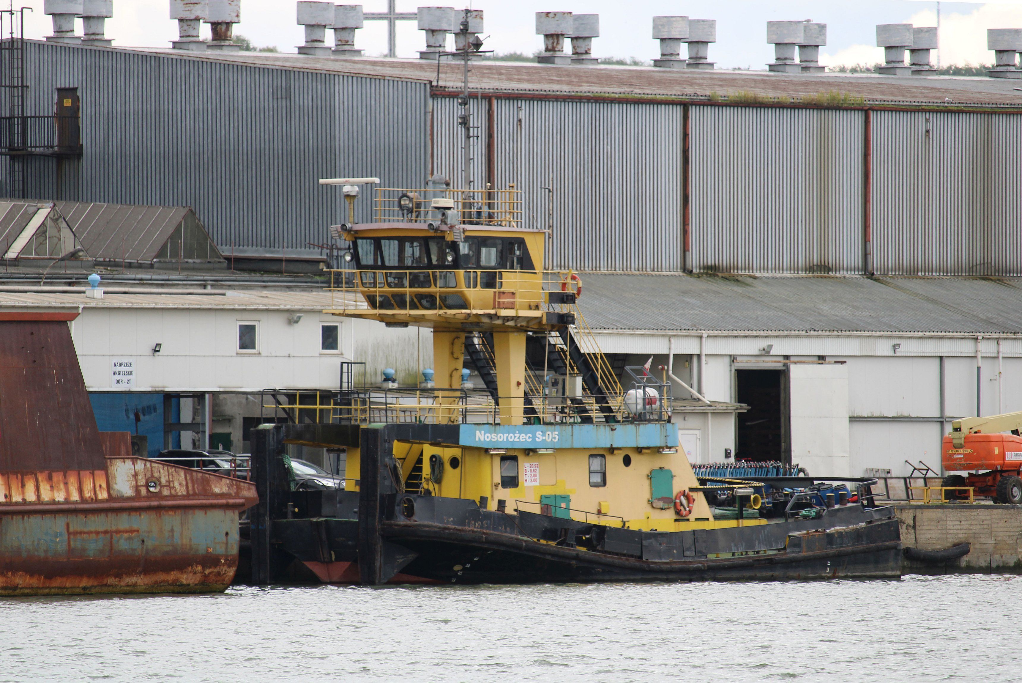 W 1968 r. Biuro Projektów i Studiów Taboru Rzecznego we Wrocławiu zaprojektowało zestaw pchany przeznaczony do obsługi nowo zbudowanych Zakładów Chemicznych w Policach. Przewóz surowców odbywał się na trasie Świnoujście – Police. Projekt nazwany Nosorożec S [PCH 2 x 400]. Ten typ pchacza posiadał wysoko umieszczoną sterówkę zamontowaną na stałe na podporach, co miało ułatwić nawigację na Zalewie Szczecińskim. Pchacz „NOSOROŻEC-S-05” został zbudowany w 1978 r. dla P.P. Żegluga Szczecińska w Szczecinie. Od roku 2008 w Port-Żegluga Szczecińska Sp. z o.o. w Szczecinie. Kilkakrotna wymiana silników. Pozostaje nadal w eksploatacji, obecnie w porcie gdańskim. © Opracował Waldemar Danielewicz – 08.06.2024, poprawiono: 12.09.2025/30.03.2026 |
