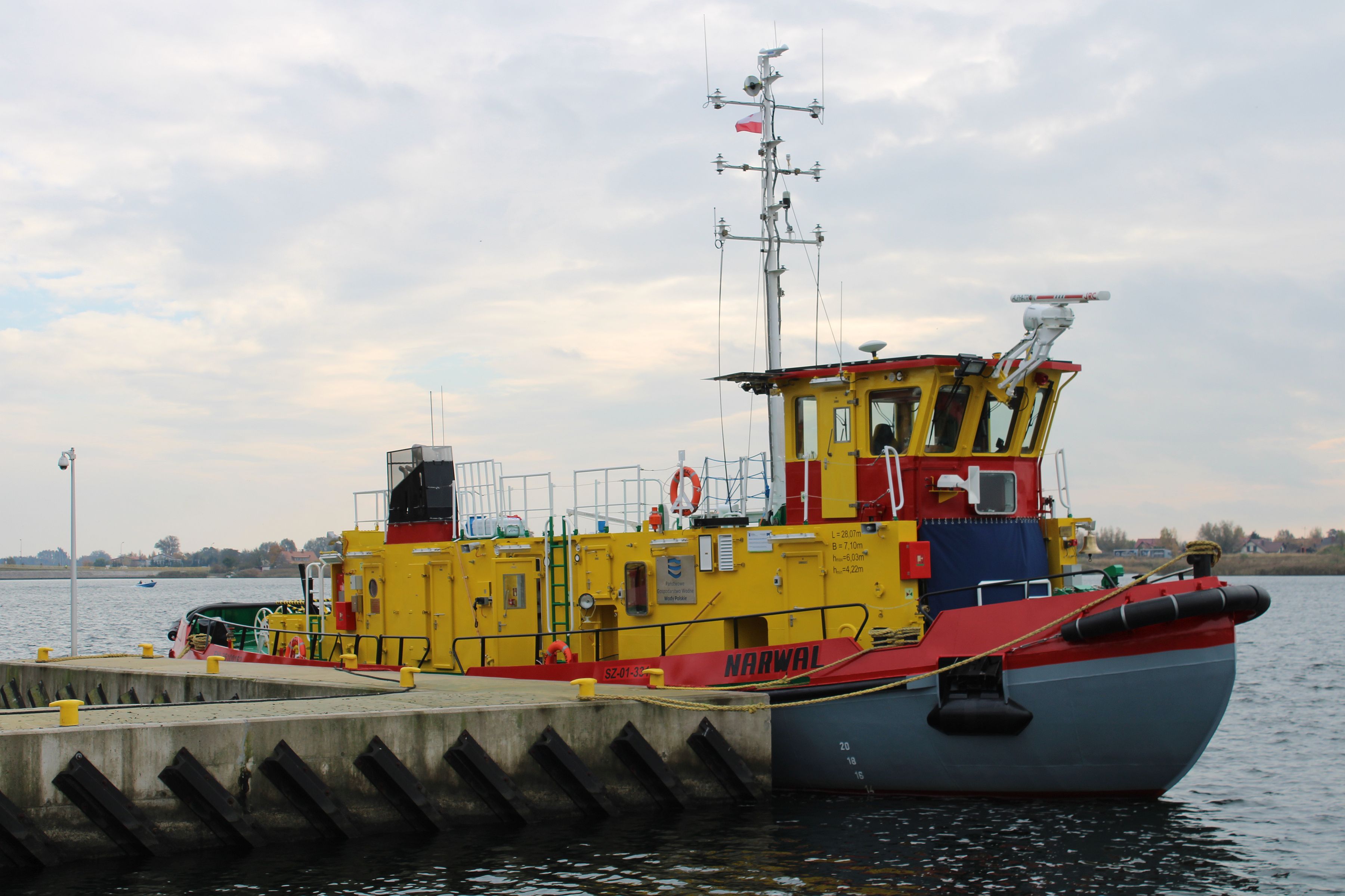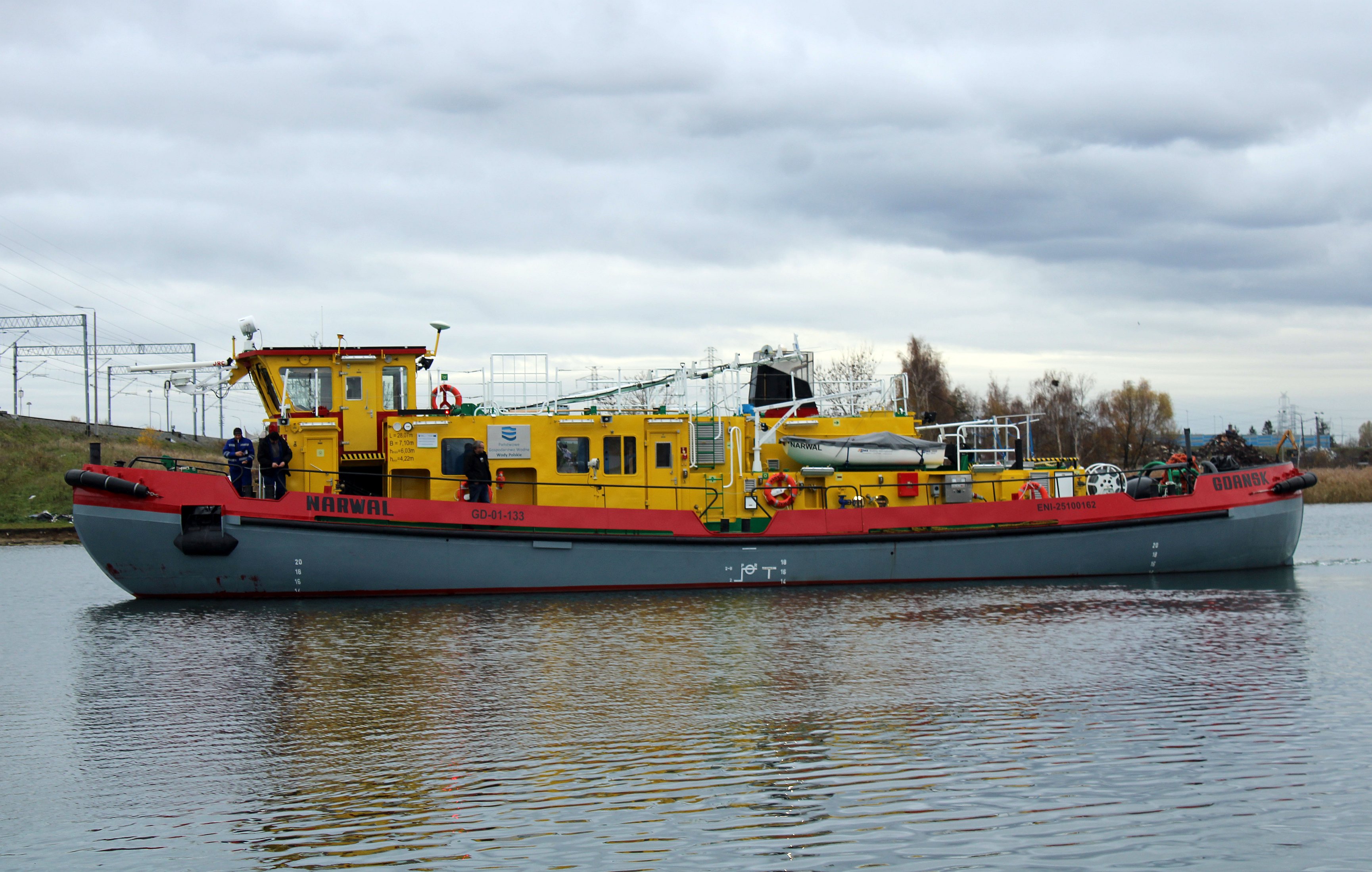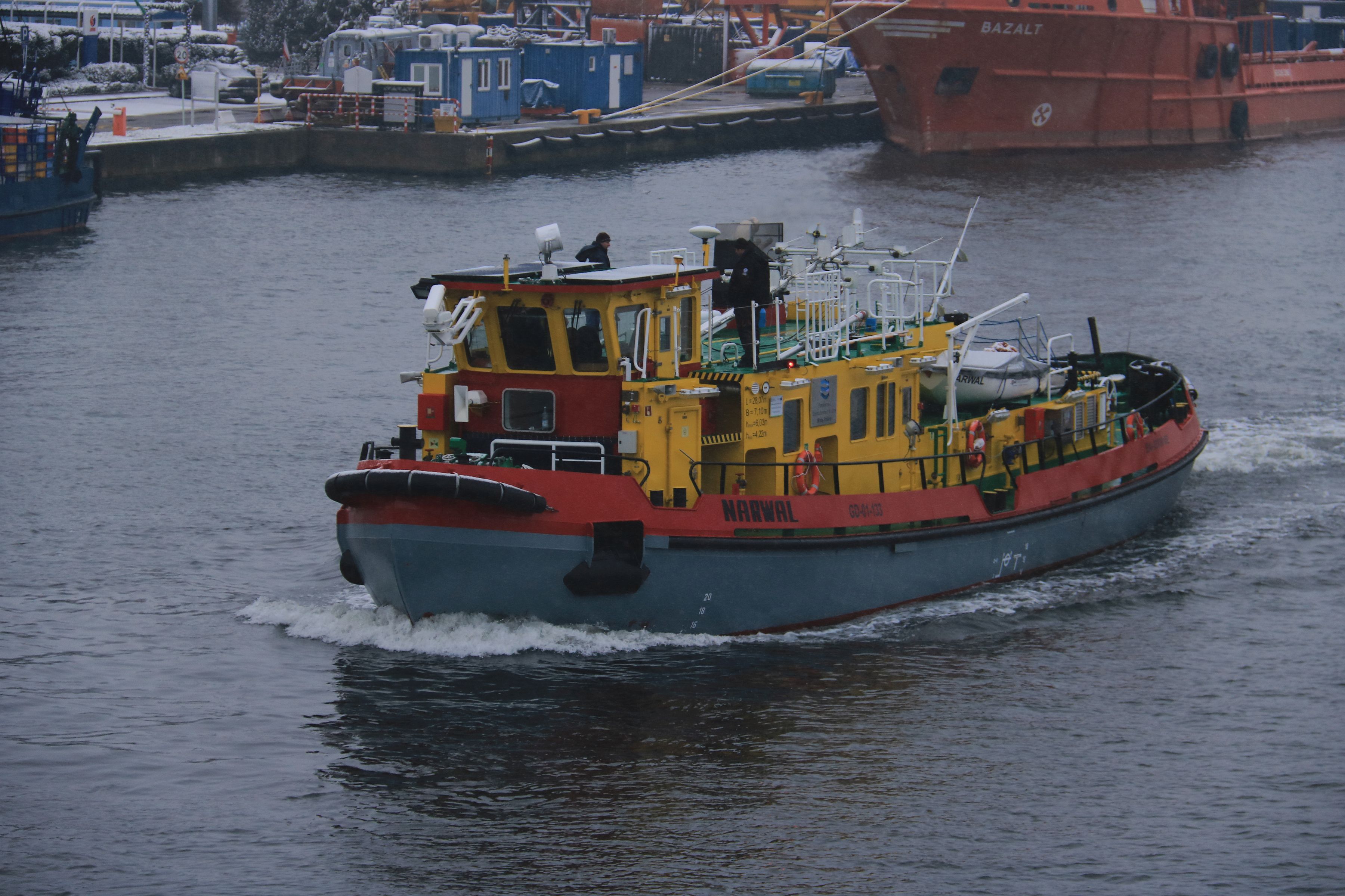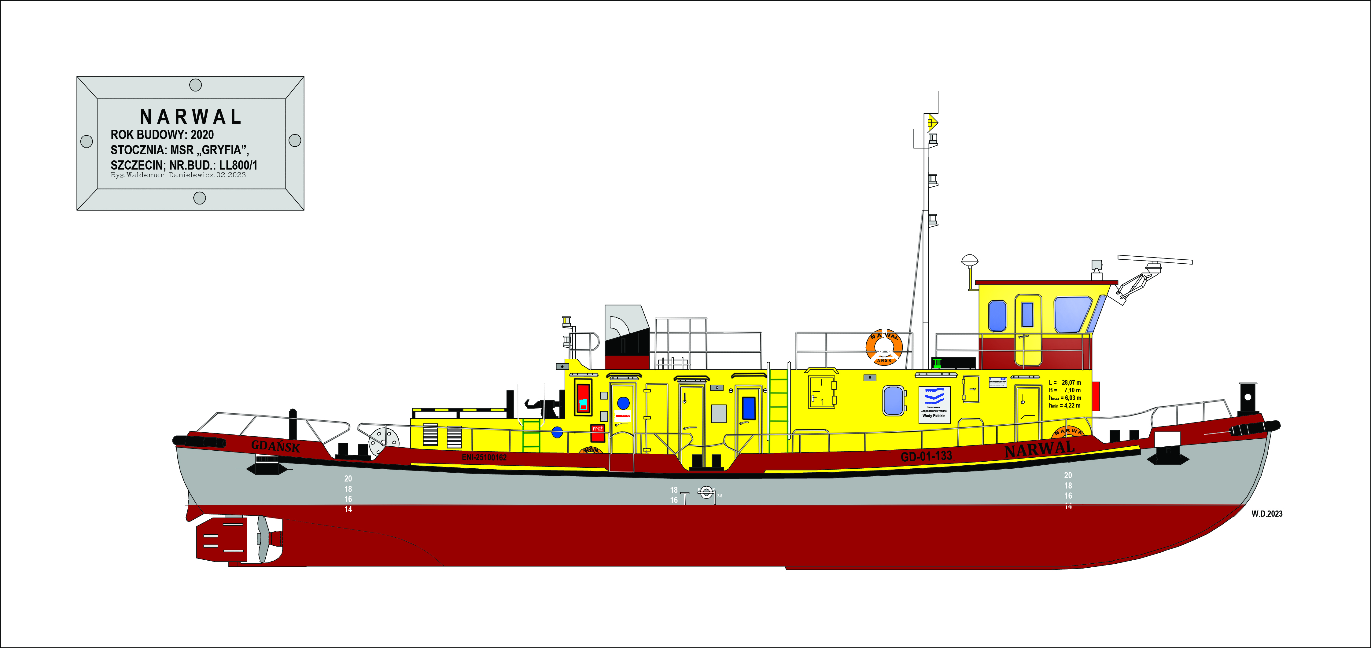 Lodołamacz liniowy typu LL-800 mogący pełnić funkcję również holownika. Zaprojektowany przez Biuro Konstrukcyjne Morskiej Stoczni Remontowej „Gryfia” S.A. w Szczecinie. Prototyp budowany w Szczecinie dla RZGW w Gdańsku. Zwodowany 12 maja 2020 r., ukończony 5 października 2020 r., nazwany „NARWAL”. Do Gdańska przybył 18 czerwca 2021 r., po przejściu prób zdawczo-odbiorczych przekazany armatorowi. Stacjonuje w Gdańsku-Przegalinie. W eksploatacji. Jednostki bliżniacze to „MANAT” i „NERPA”. © Opracował Waldemar Danielewicz – 09.11.2025/30.03.2026 |