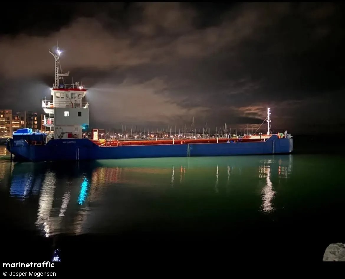 NASTĘPNE NAZWY: MARTHA HOJ. TYP STATKU: szalanda motorowa dennoklapowa zawiasowa. ROK I MIEJSCE BUDOWY: 04.1976, Płocka Stocznia Rzeczna w Płocku. STOCZNIOWY NUMER BUDOWY: SM-660/632. WYMIARY: długość całkowita 58,96 m, długość rejestrowa 57,75 m, szerokość całkowita 9,50 m, wysokość boczna 3,52 m, zanurzenie 2,92 m, pojemność brutto 538 GT, pojemność netto 171 NT, nośność 1068 t. SILNIKI GŁÓWNE: 2 silniki wysokoprężne typu Deutz BF12L714, 12-cylindrowe w układzie V, moc łączna 520 KM/383 kW, średnica cylindra 120 mm, skok tłoka 140 mm, liczba obrotów silnika 1800/min., numery fabryczne 5342022 i 5341945, producent: Klöckner-Humboldt-Deutz A.G., Köln [Niemcy]; ↓ 2 silniki wysokoprężne typu Scania DI1259M, 6-cylindrowe, moc łączna 601 KM/442 kW, średnica cylindra 127 mm, skok tłoka 154 mm, liczba obrotów silnika 1800/min., producent: Saab-Scania AB, Södertälje [Szwecja]. INNE DANE: kadłub stalowy spawany o wzdłużnym układzie wiązań, pokład stalowy, pędniki: 2 sterośruby Schottel, prędkość 7,8 węzła, załoga 2-3 osoby. ARMATOR: Przedsiębiorstwo Robót Czerpalnych i Podwodnych Sp. z o.o. w Gdańsku. PORT MACIERZYSTY: Gdańsk. NUMER REJESTRU OKRĘTOWEGO: ROG/S/489. NUMER IMO: 8937596. SYGNAŁ WYWOŁAWCZY: SPG2920, MMSI 261002050 [SM-PRC-112], OVRC2, MMSI 219034422 [Martha Hoj]. NUMER PRS: 520205.