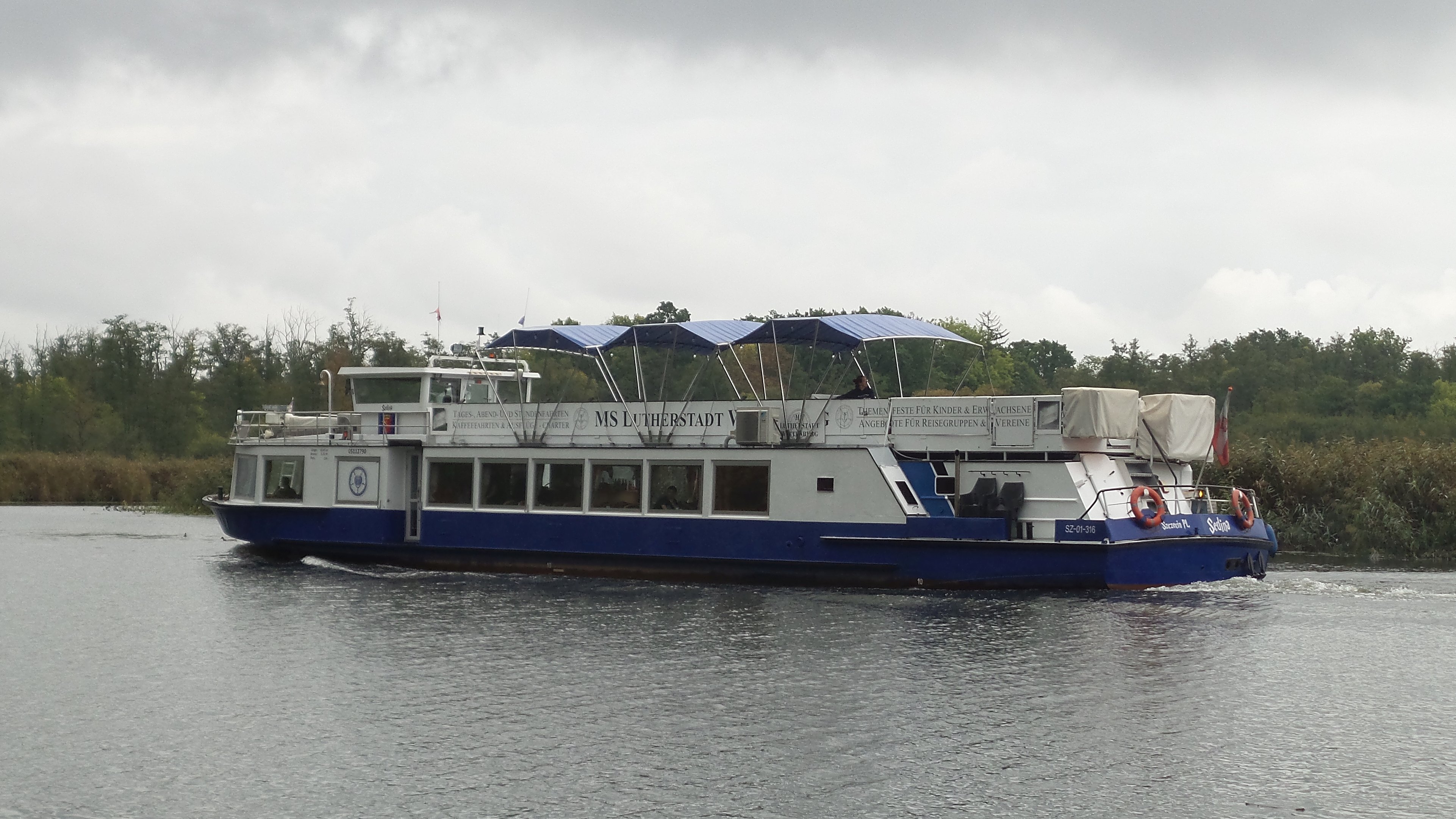 POPRZEDNIE NAZWY: ex LUTHERSTADT WITTENBERG, ex ROSTOCKER GREIF, ex MECKLENBURG, ex ARNO, ex WARNOW. TYP STATKU: pasażerski motorowy typu BiFa III. ROK I MIEJSCE BUDOWY: 1980, VEB Yachtwerft, Berlin-Köpenick [NRD]. STOCZNIOWY NUMER BUDOWY: 1111-20. WYMIARY: długość kadłuba 28,50 m, szerokość całkowita 5,11 m, zanurzenie 0,59 m. SILNIK GŁÓWNY: 1 silnik wysokoprężny typu 6VD14,5/12-1, 6-cylindrowy, moc 122 KM/90 kW, średnica cylindra 145 mm, skok tłoka 120 mm, liczba obrotów silnika 1800/min., producent: VEB Dieselmotorenwerke Schönebeck, Schönebeck [NRD]; ↓ 1 silnik wysokoprężny nieznanego typu, 6-cylindrowy, moc 230 KM/169 kW, producent: MAN A.G., Augsburg, [Niemcy]. INNE DANE: kadłub stalowy spawany, pokład stalowy, pędnik: 1 śruba, załoga 3 osoby, 156 pasażerów. ARMATOR: Secco Janusz Stanisław Just, Szczecin. PORT MACIERZYSTY: Szczecin. NUMERY REJESTRACYJNE: SZ-01-316 [UŻŚr Szczecin]. NUMER ENI: 05112790. SYGNAŁ WYWOŁAWCZY: SR4720, MMSI 261184720. NUMER PRS: nieznany.