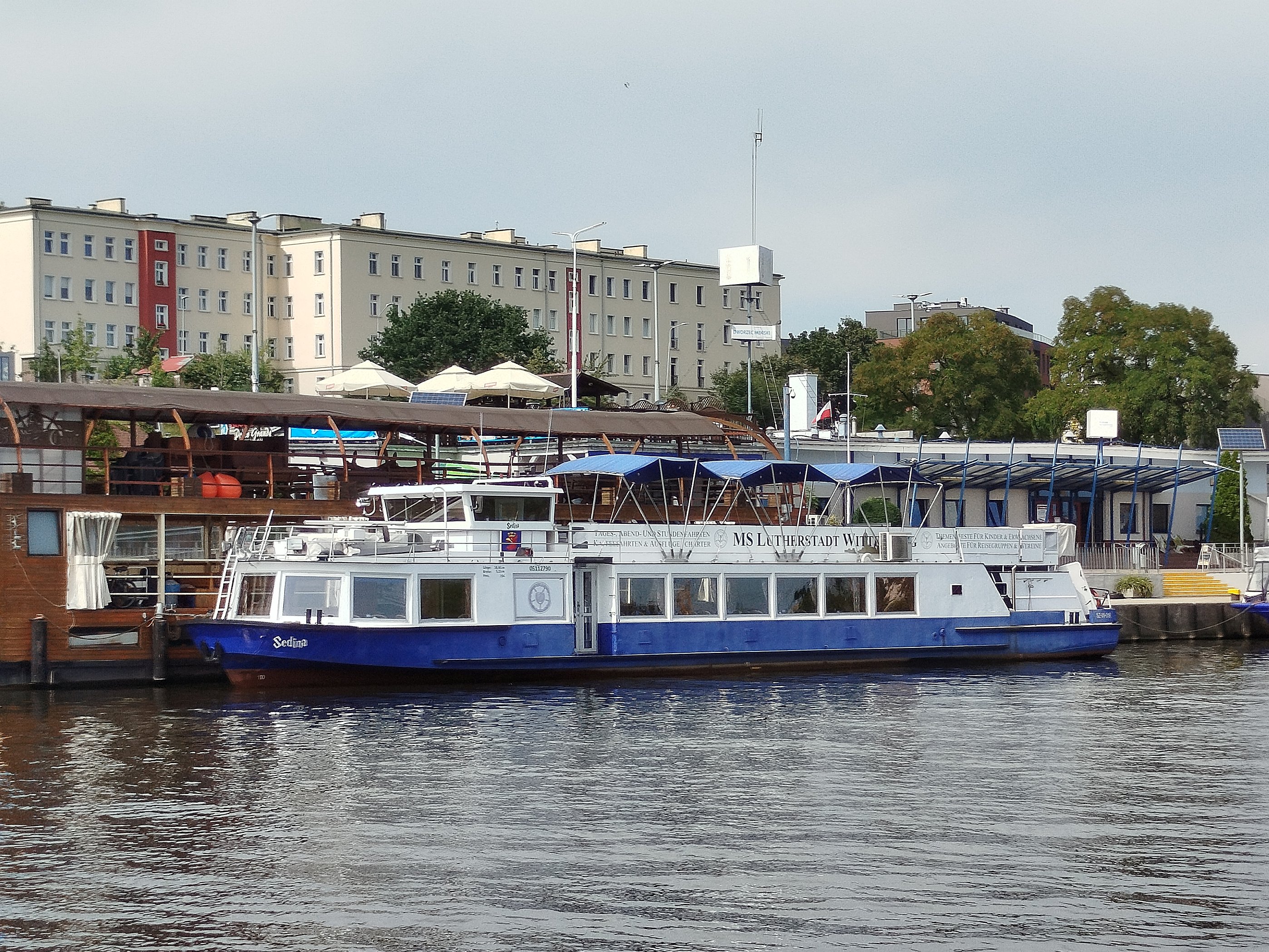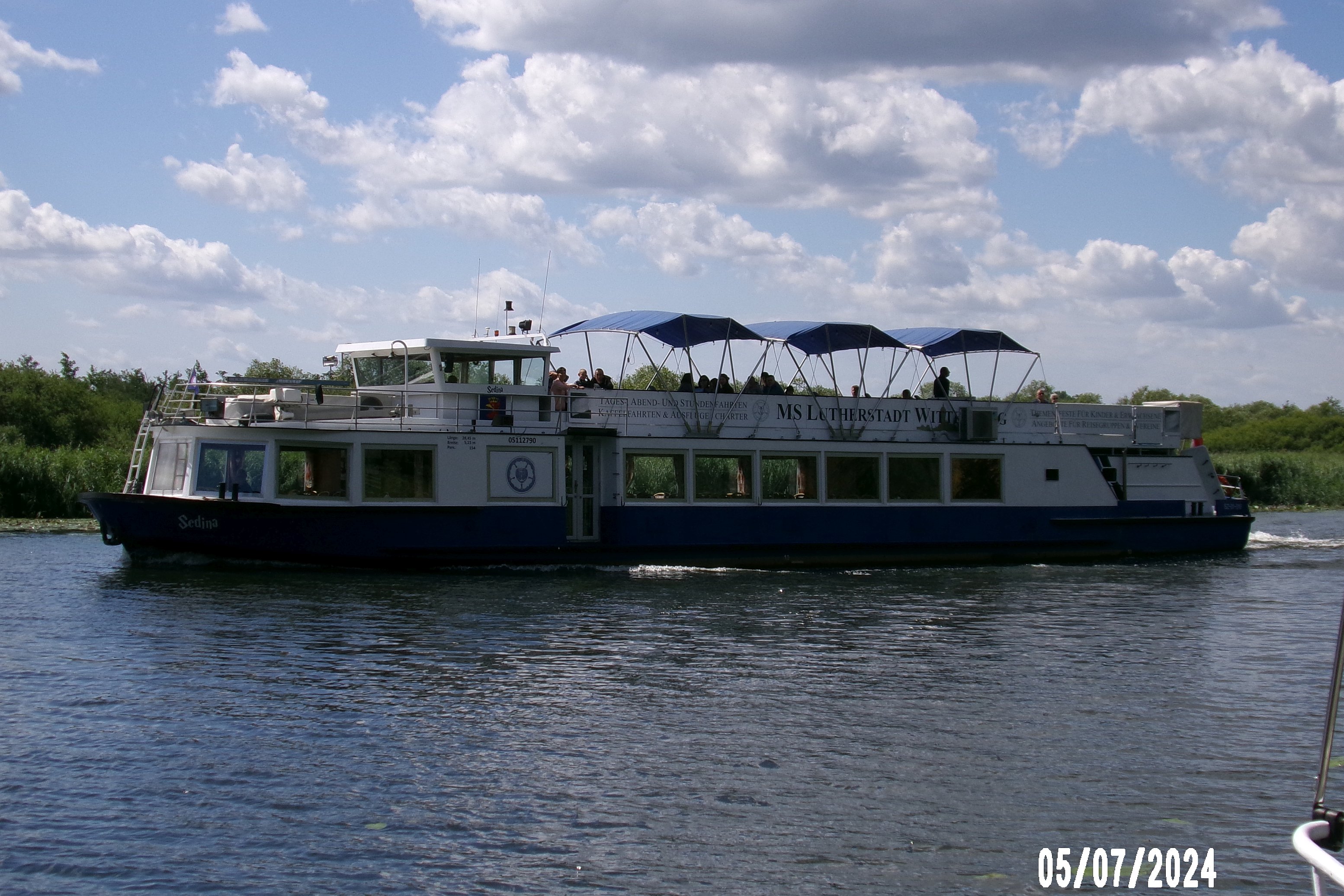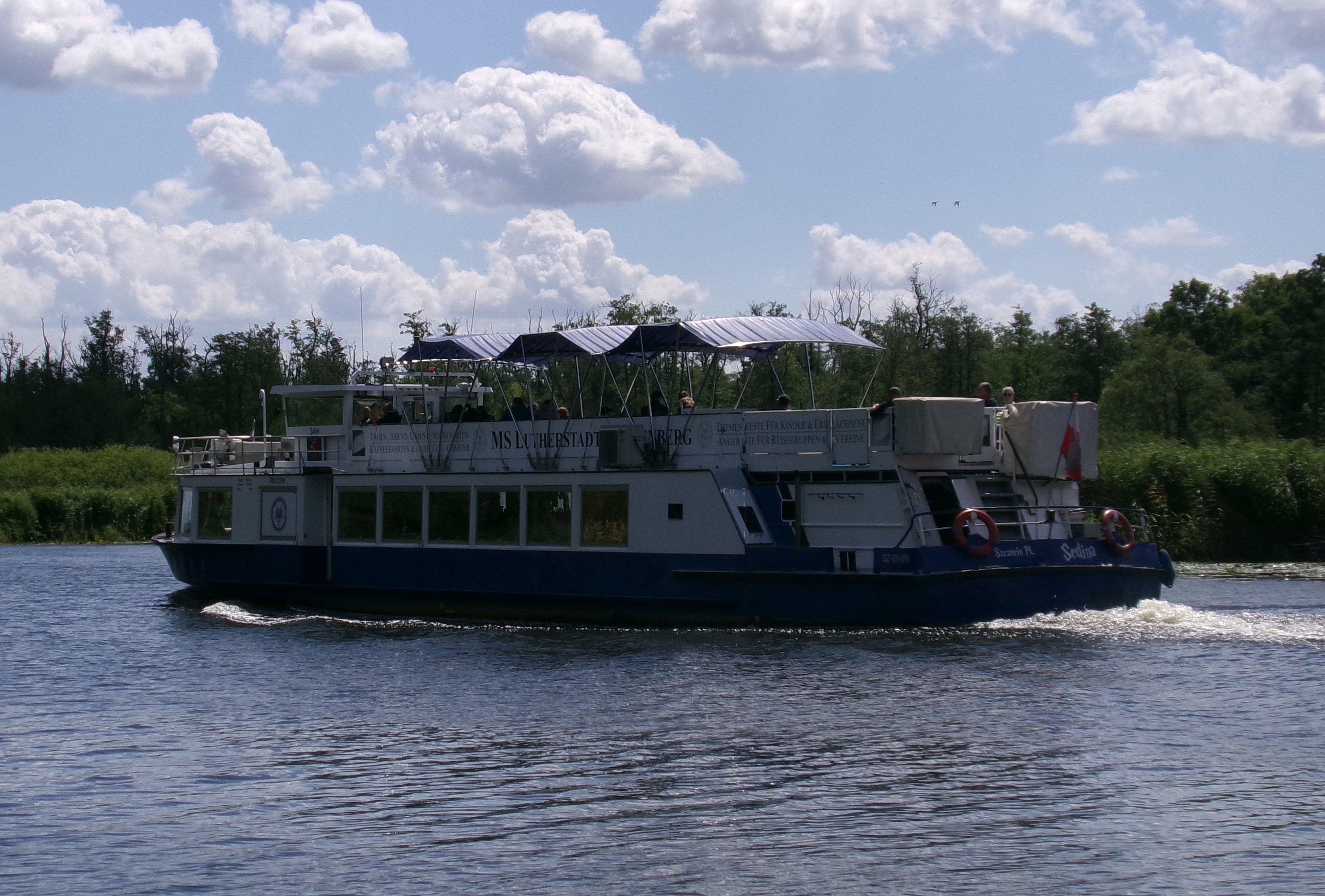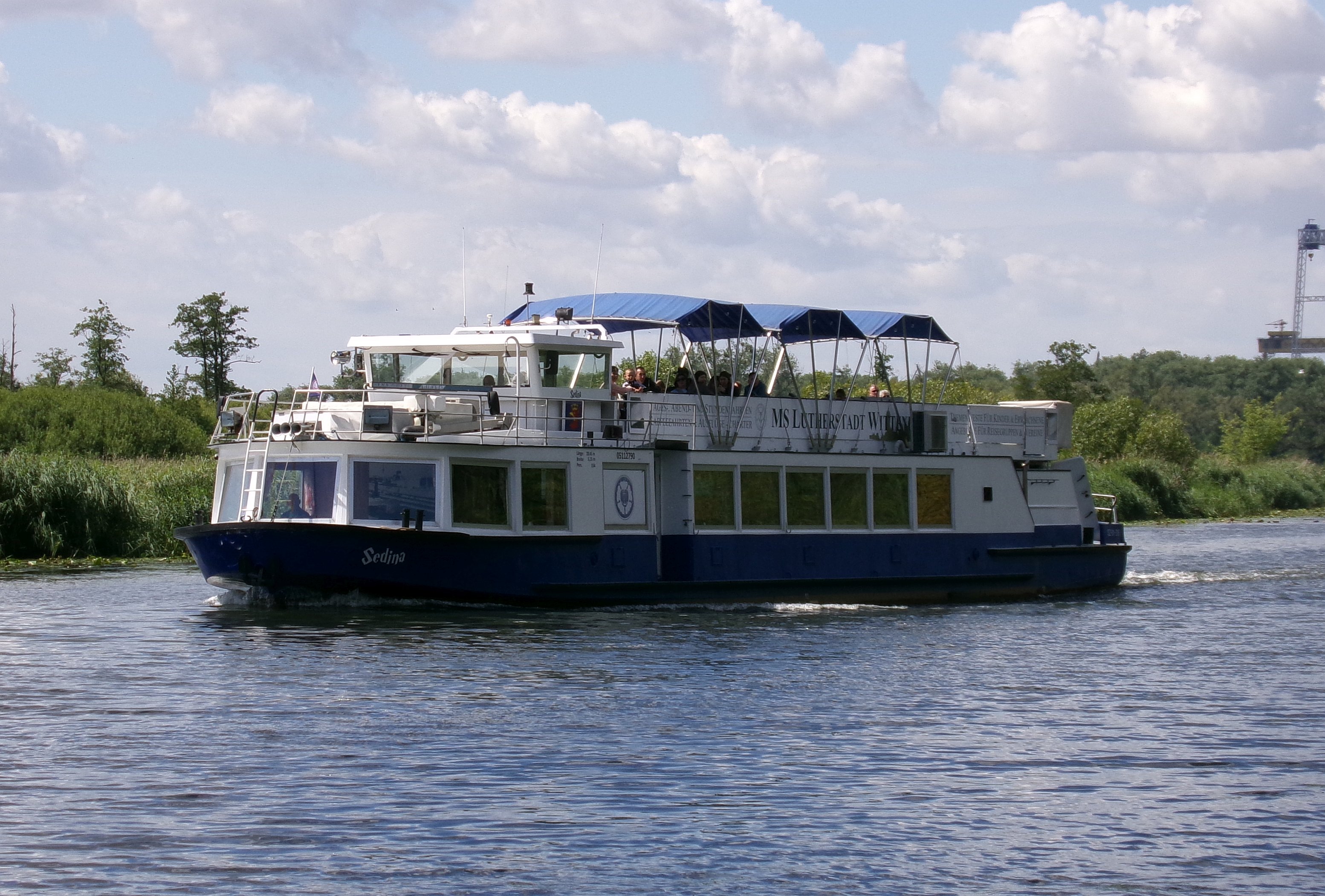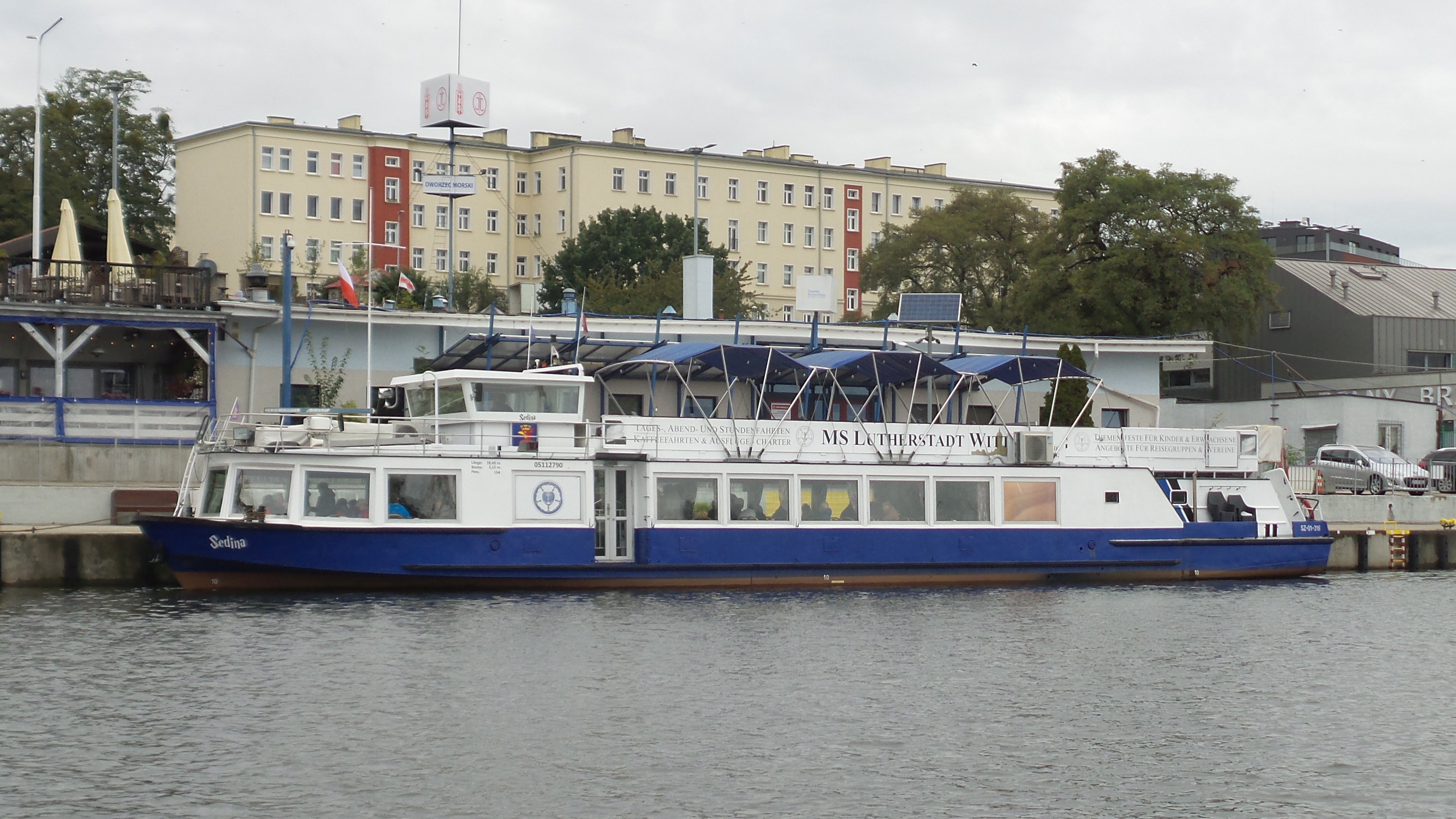 Statek pasażerski typu Binnenfahrgastschiff III budowany w dużych ilościach w ówczesnej Niemieckiej Republice Demokratycznej. Omawiany statek zbudowano w 1980 r. w berlińskiej stoczni VEB Yachtwerft. Nazwany „WARNOW” pływał w VEB Fahrgasschiffahrt Weisse Flote w Stralsundzie. Na pokład zabierał 140 pasażerów, silnik o mocy 90 kW. W 1991 r. zakupiony przez Rainera Moellera z Warnemünde i nazwany „ARNO”. Rok później trafia do Müritz Schiffahrt Roebel, gdzie pływa pod nazwą „MECKLENBURG”. Od 1997 r. jako „ROSTOCKER GREIF” u Wolfganga Heckmanna z Rostock. W 2004 r. nazwany „LUTHERSTADT WITTENBERG” – właściciel Jan Hanisch z Wittenbergi. W dniu 21 lutego 2019 r. statek trafił do Szczecina. W lipcu 2019 r. nazwany „SEDINA”, armator firma Secco Janusz Stanisław Just, Szczecin. Nadal w eksploatacji. © Opracował Waldemar Danielewicz – 02.08.2025 |