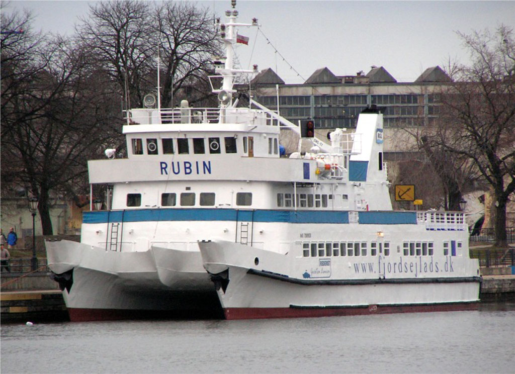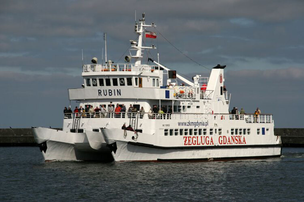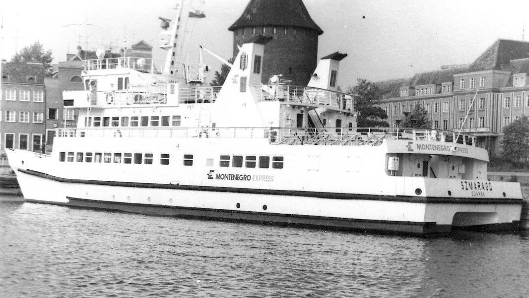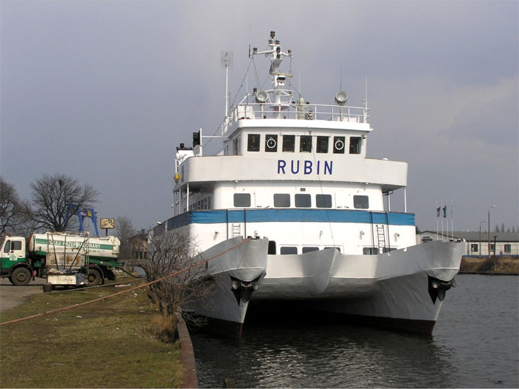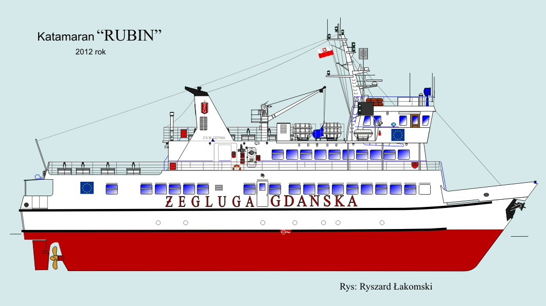 Katamaran pasażerski typu KP-2. Zaprojektowany do obsługi pasażerskiej portów polskich w tym portów środkowego Wybrzeża. Pierwsze 5 jednostek zamówiła P.P. Żegluga Gdańska w IV kwartale 1978 r. Główny projektant W. Dziekoński. Zbudowany przez Stocznię „Wisła” w Gdańsku. Położenie stępki 17.09.1979, wodowanie 30.01.1980, ukończony 12.08.1980. Podniesienie bandery nastąpiło 14 sierpnia 1980 r. Nazwany „SZMARAGD”. W lecie 1983 i 1984 r. był dzierżawiony przez francuskiego armatora Navigascogne na trasie Bayonne – San Sebastian. W 1984 r. powrócił do Gdańska. Dwa lata później wydzierżawiony armatorowi Montenegrotourist z Budvy w Jugosławii. Pływał pod nazwą „MONTENEGRO EXPRESS” i banderą jugosławiańską na linii Budva – Dubrovnik. Do Polski i nazwy „SZMARAGD” powrócił w październiku 1987 r. W latach 1988-1991 w dzierżawie firmy København Linie AB na linii Kopenhaga – Malmö. W 1991 r. zmiana nazwy na „RUBIN”. W 1994 r. operatorem statku została firma Przedsiębiorstwo Usług Morskich Ltd. sp. z o.o. z Gdańska. Statek poza sezonem pełnił również rolę pływającej restauracji będąc zacumowany w Gdańsku na Motławie. Z dniem 1 października 1996 r. właścicielem statku zostało Przedsiębiorstwo Usług Morskich Ltd. sp. z o.o. z Gdańska, które w czerwcu 2006 r. zmieniło nazwę na Żegluga Gdańska Sp. z o.o. w Gdańsku. Od 9 kwietnia 2006 r. w czarterze Reederiet Graasten-Linien. 18 kwietnia 2006 r. awaria jednego z silników w Graasten. Statek w dniu 21 kwietnia 2006 r. powrócił do Gdańska. Od czerwca 2006 r. jako tzw. tramwaj wodny na linii Gdynia – Jastarnia – Gdynia. W dniu 6 czerwca 2006 r. wchodząc do Jastarni uderzył w jacht motorowy „ICHTIANDER”. Od 2018 roku jest klasyfikowany jako statek śródlądowy i zarejestrowany w Urzędzie Żeglugi Śródlądowej w Gdańsku. Nie jest też klasyfikowany przez Polski Rejestr Statków. Nadal w eksploatacji. Kapitanowie: Stanisław Baniewicz, Jerzy Latała, Wiesław Błaszczyk, Edmund Kuczkowski i inni. © Opracował Waldemar Danielewicz – 07.04.2026 |