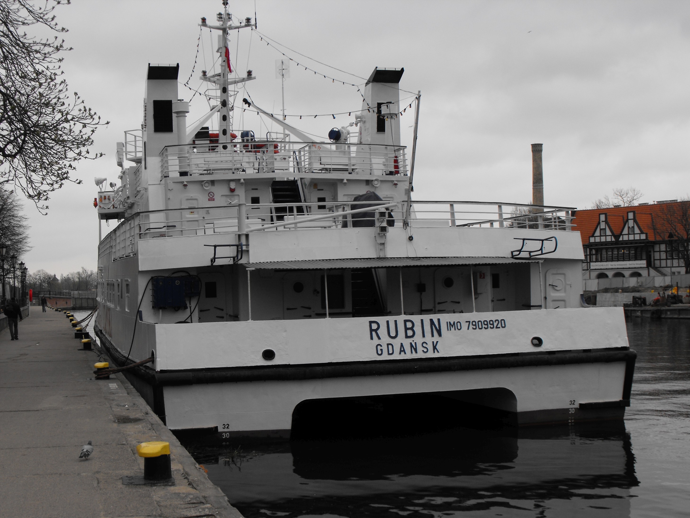 POPRZEDNIE NAZWY: ex SZMARAGD, ex MONTENEGRO EXPRESS, ex SZMARAGD. TYP STATKU: katamaran pasażerski typu KP-2. ROK I MIEJSCE BUDOWY: 08.1980, Stocznia „Wisła” w Gdańsku. STOCZNIOWY NUMER BUDOWY: KP-2/1. WYMIARY: długość całkowita 37,59 m, długość rejestrowa 35,78 m, długość między pionami 33,0 m, szerokość całkowita 11,88 m, wysokość boczna 4,42 m, zanurzenie 2,97 m, pojemność brutto 654 BRT, pojemność netto 373 NRT, nośność 89 ton. SILNIKI GŁÓWNE: 2 silniki wysokoprężne typu Sulzer 6AL20/24, 6-cylindrowe, moc łączna 1140 KM/838 kW, średnica cylindra 200 mm, skok tłoka 240 mm, liczba obrotów silnika 750/min., rok produkcji 1980, producent: Zakłady Przemysłu Mechanicznego „H. Cegielski”, Poznań. INNE DANE: kadłub stalowy spawany o poprzecznym układzie wiązań, pokład stalowy, pędniki: 2 śruby, prędkość 13 węzłów, załoga 6-9 osób, 500 pasażerów, 24,8 t paliwa. ARMATOR: Żegluga Gdańska Sp. z o.o. w Gdańsku. PORT MACIERZYSTY: Gdańsk. NUMER REJESTRU OKRĘTOWEGO: ROG/S/35. NUMERY REJESTRACYJNE: GD-01-123 [UŻŚr Gdańsk]. NUMER IMO: 7909920. SYGNAŁ WYWOŁAWCZY: SQMV [Szmaragd], SPG2258, MMSI 261000320 [Rubin]. NUMER PRS: 120028.